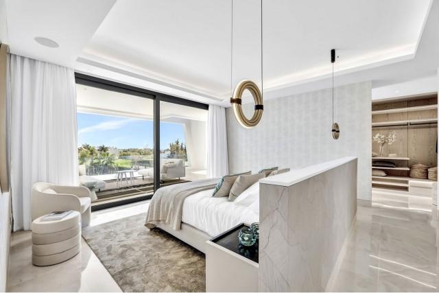 Luxurious Contemporary New Villa in Gated Community for sale in Marbella Golden Mile. Discover this exquisite 5-bedroom contemporary villa, available for sale in Marbella’s prestigious Golden Mile. Designed by a renowned local architect, this villa showcases unparalleled luxury and modern design, offering breathtaking panoramic views of the sea and mountains. With a total built area of 1,016 m² and 630 m² dedicated to living spaces, this property is an oasis of privacy, comfort, and elegance.