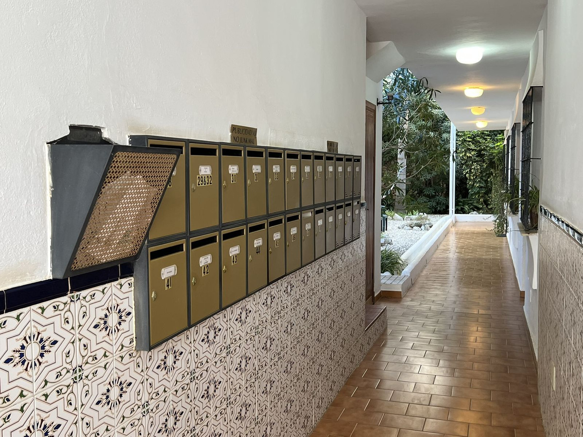 LOVELY TWO-BEDROOM APARTMENT in the heart of Mijas Pueblo boasting AMAZING SEA VIEWS! Located in a quiet residential gated community on the west side of town. Only a short stroll from Bar el Niño and parking area. Situated on a second floor (top floor) this apartment of approx 60 m2 has a living/dining room, fitted kitchen, 2 bedrooms and 1 bathroom. Enclosed terrace is now a sitting room. A/C. Beautiful views to Mediterranean sea, communal swimming pool and mature gardens. Nice holiday flat. In need of renovations and TLC. VIEWINGS ARE RECOMMENDED!