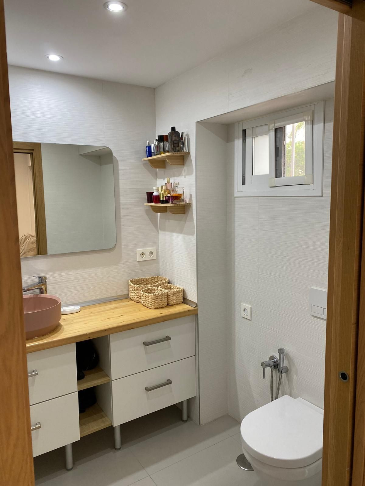 We present a welcoming, fully renovated apartment offering two bedrooms with built-in wardrobes and en-suite bathrooms, an open-plan kitchen/living room, and a terrace enclosed with folding security gates. The property is very comfortable, ready to move into, and is being sold partially furnished.