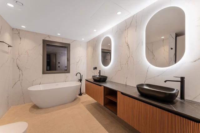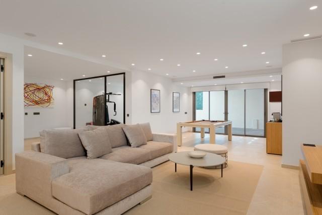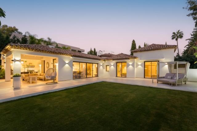 Elegant contemporary five bedroom villa for sale in the highly desirable neighbourhood of Nueva Andalucía. Renovated in 2025, this luxury villa offers modern living, functional design and elegant interior detailing.