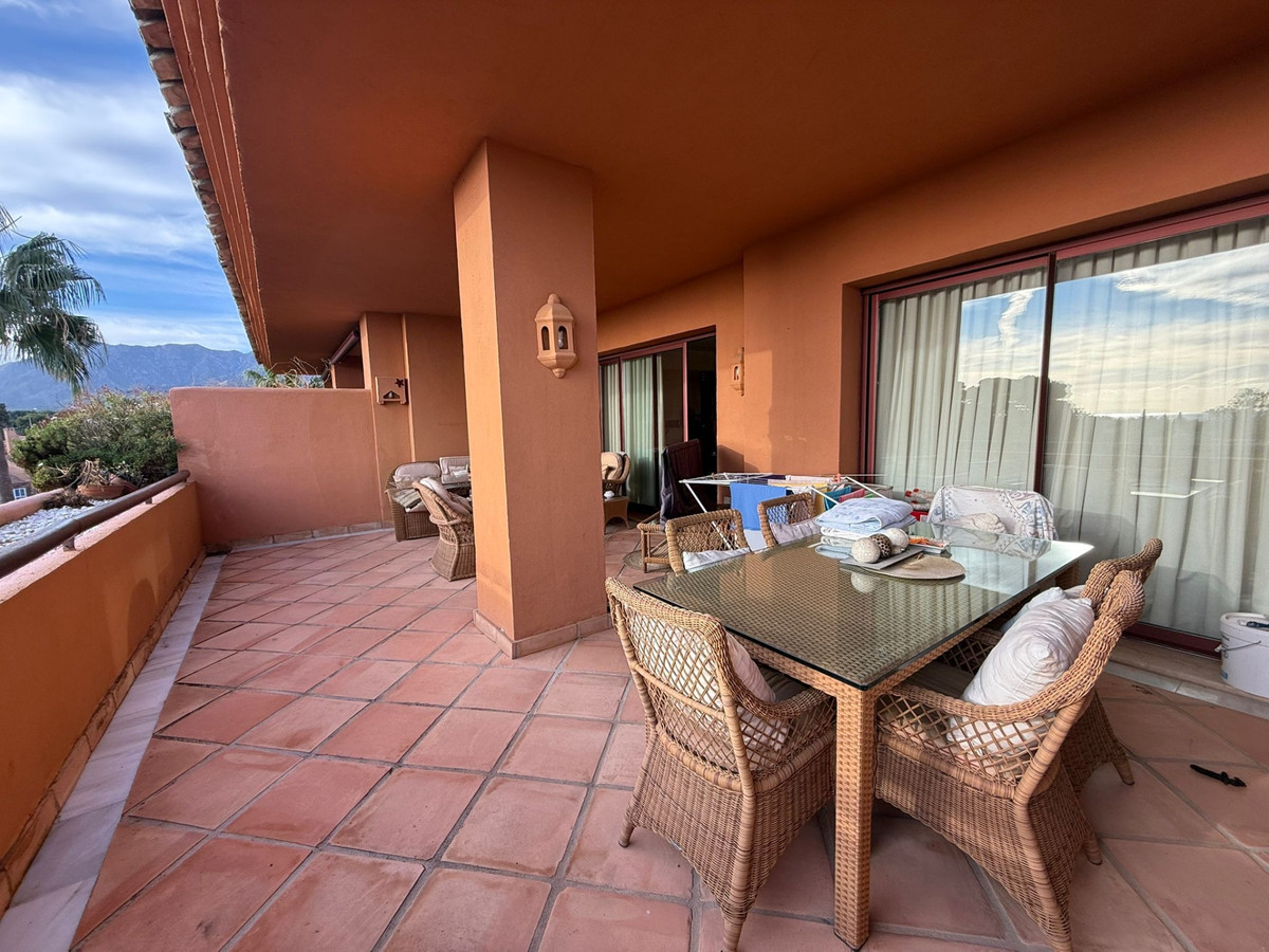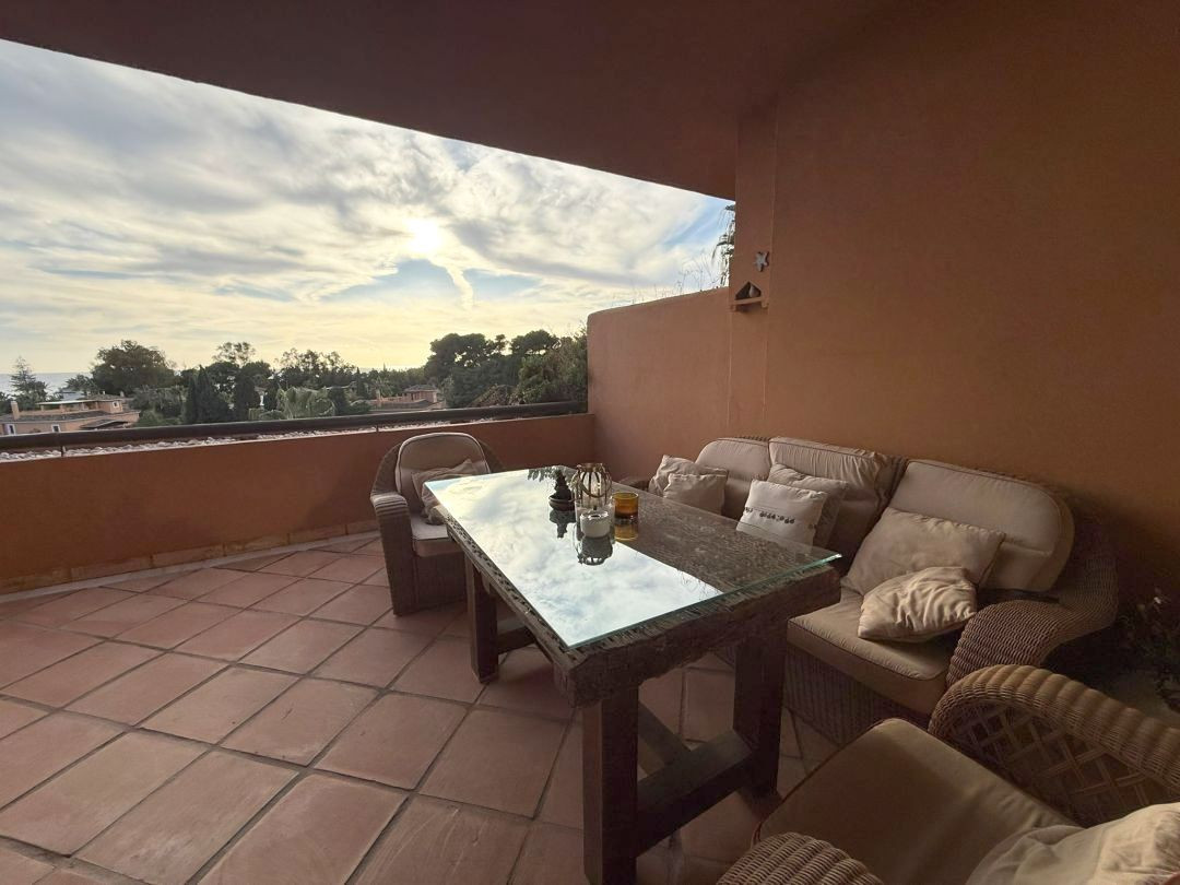 Spectacular duplex penthouse in Gran Bahía Located in the exclusive and sought-after Gran Bahía development, just steps from the beach, this magnificent penthouse offers a privileged setting with 24-hour security, extensive and well-kept tropical gardens, and five swimming pools, one of which is heated. The home is a duplex penthouse that combines spaciousness, comfort, and spectacular sea views. • First floor: spacious living-dining room with access to a large terrace with sea views, fully equipped separate kitchen, a bedroom with en-suite bathroom, and a guest toilet. • Second floor: two additional bedrooms, both with en-suite bathrooms and large built-in wardrobes, with access to another wonderful terrace offering panoramic views of the sea and mountains. The property includes a parking space and storage room in the price. A perfect home for those seeking luxury, comfort, and proximity to the sea in one of the most exclusive developments on the Costa del Sol.