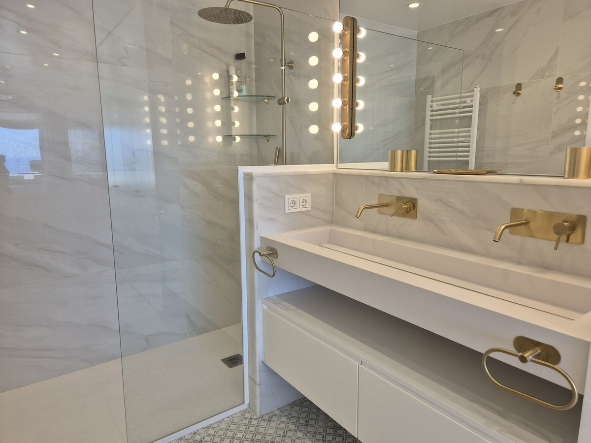 This spacious three-bedroom, three-bathroom apartment with perfect south orientation is located on the second floor and has completely open views of the sea and the entire bay of Marbella. On its terrace, there is enough space for a relaxation area and another where you can enjoy unforgettable evenings by the sea with family and friends, al fresco dinners, or simply lay comfortably listening to the waves of the sea with a good book. A smart new layout accommodates 3 en-suile bedrooms and an spectacular open plan designer kitchen where you can enjoy a beautiful view of the Mediterranean sea while you cook your favourite dishes or sip a glass of wine with your friends.