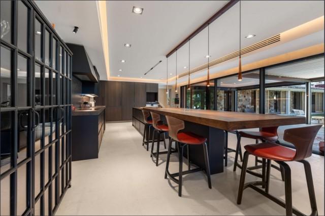 The villa features expansive open-plan interiors filled with natural light, a designer kitchen with Gaggenau appliances, and seamless indoor-outdoor flow through floor-to-ceiling glass doors. Multiple terraces overlook landscaped gardens, a large swimming pool, and private chill-out areas. With guest apartments, a gym, office, and smart home technology, the property offers every convenience for luxury living.