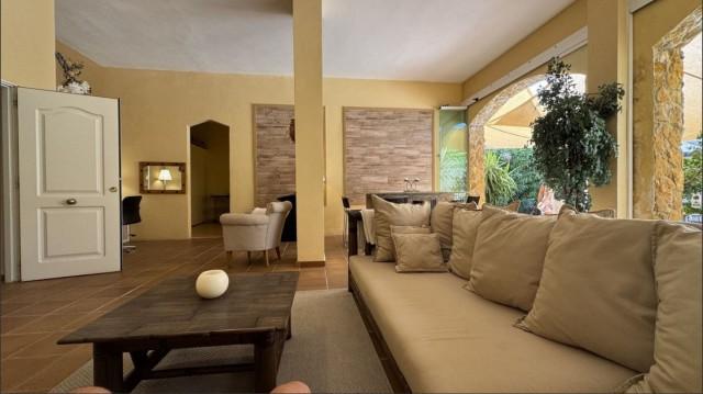 This wonderful family home is coming on the market for the first time since it was built in 2007. Set in a quiet corner of Calahonda, the house comprises: On the entrance level, a covered carport and entrance terrace, a hallway leading to a large living-dining room, a covered terrace with glass curtains (which makes an extra room), a fully fitted kitchen with separate utility, and a guest cloakroom. Up one level is a large open terrace with another glassed-in terrace, which could be put to a variety of uses. From this level there are lovely sea and countryside views. One floor down from the living areas are 3 double bedrooms, one of which is ensuite. But it's down at the ground floor level where this property really shines. There is a huge terraced area with a private pool, and an enormous second living area with super high ceilings, not to mention a built-in teppanyaki grill! Off this room is another kitchen/utility room, but it's the outside space which really needs to be seen to be appreciated. A really super home, or equally a super buy to holiday let investment - this house is not in a community, so can be holiday rented forever if you wish...