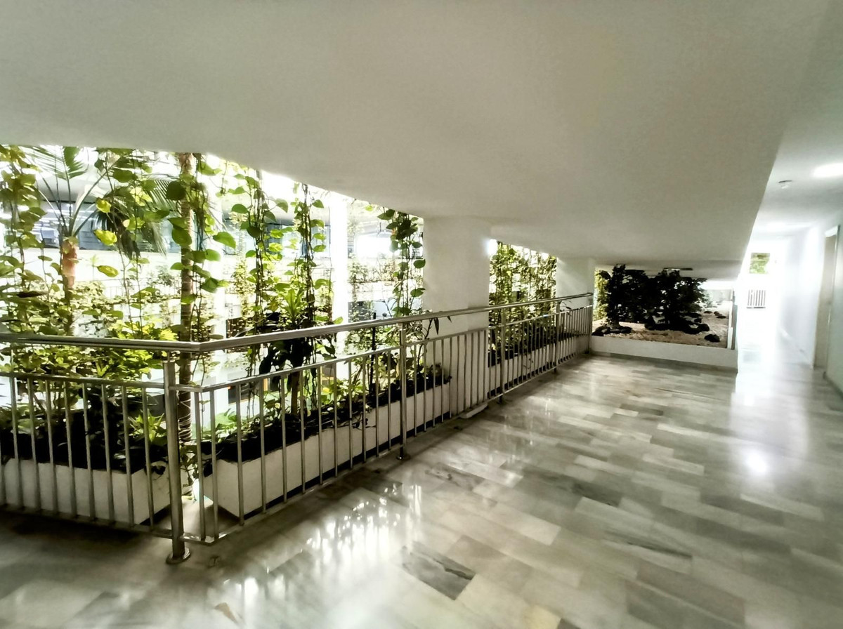 The building offers excellent amenities, including a gym, supermarket, 24-hour reception, self-service laundry, dry cleaning service, restaurant, and a games room with pool tables. Communal open parking is available for residents and guests. There is also a generously sized car park right outside of the gates to the complex.