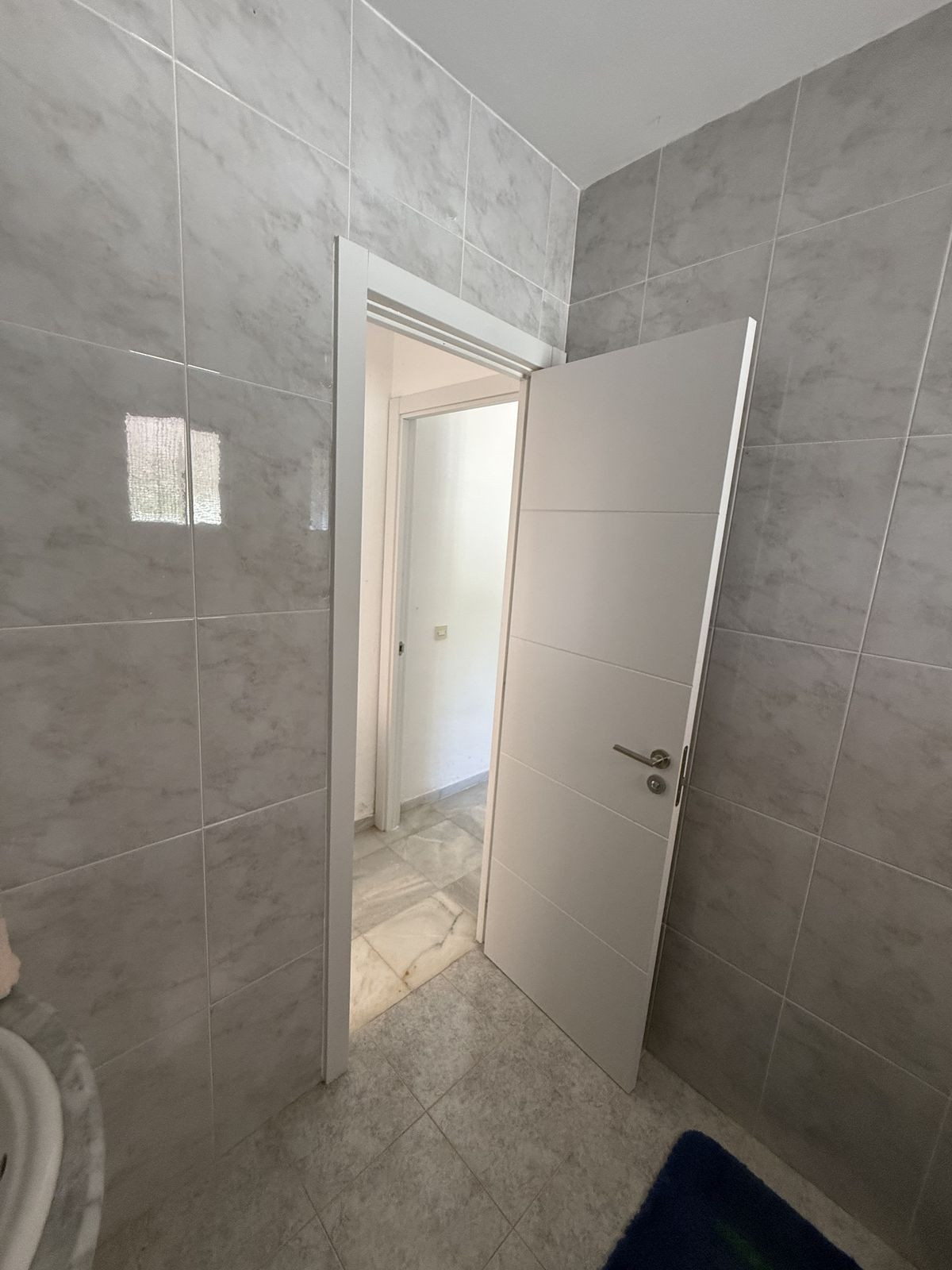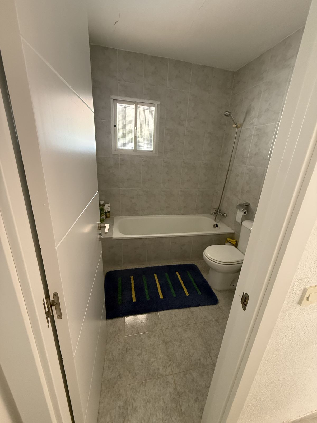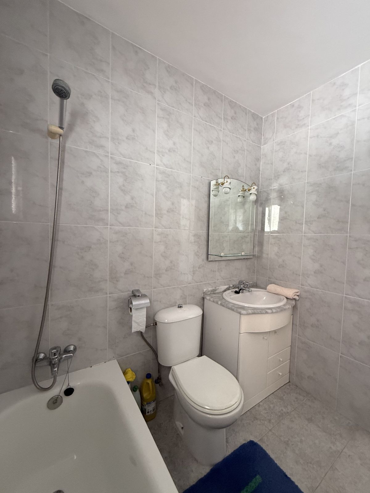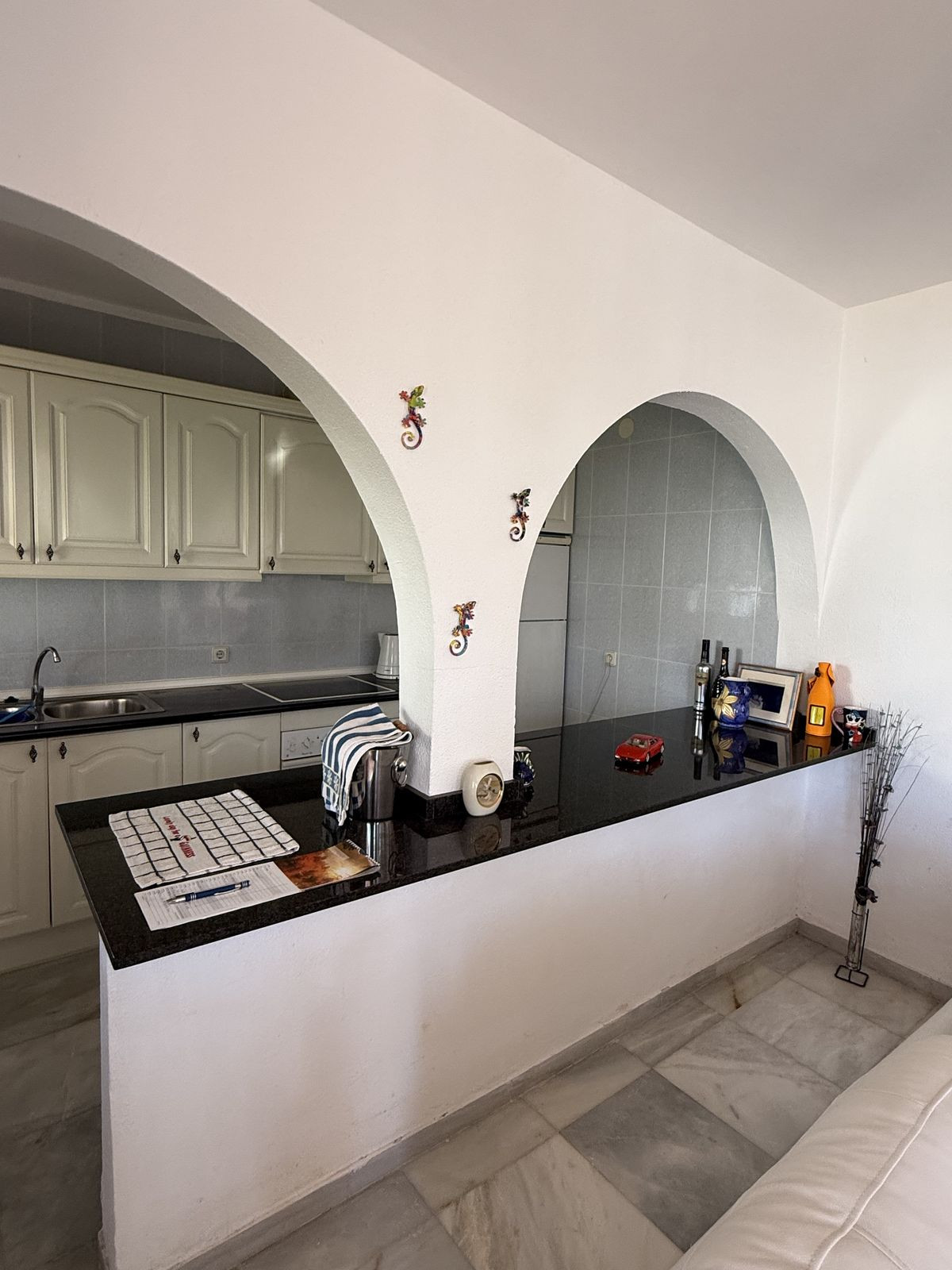 On the ground floor you have an open plan kitchen , living & dining space which leads out onto a very private covered terrace area, ideally for those summer nights. From the dining area you have access down the hallway to the guest bedroom and bathroom complete with bath. The guest bedroom is a very good size double ( currently set up with two single beds ) the bedroom also has built in wardrobes and AC.
