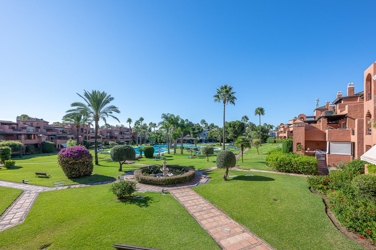 This fabulous apartment is located in one of the best and most exclusive developments in Guadalmina Baja. It faces south with views of the lush tropical communal gardens and the oversized pool area that resembles a beach.