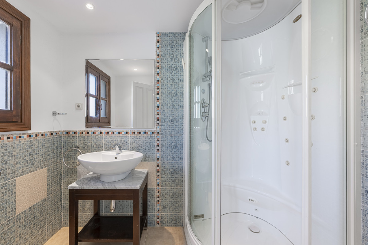 On the first floor is the master bedroom suite with fitted wardrobes and a large private south-facing terrace with sea views.