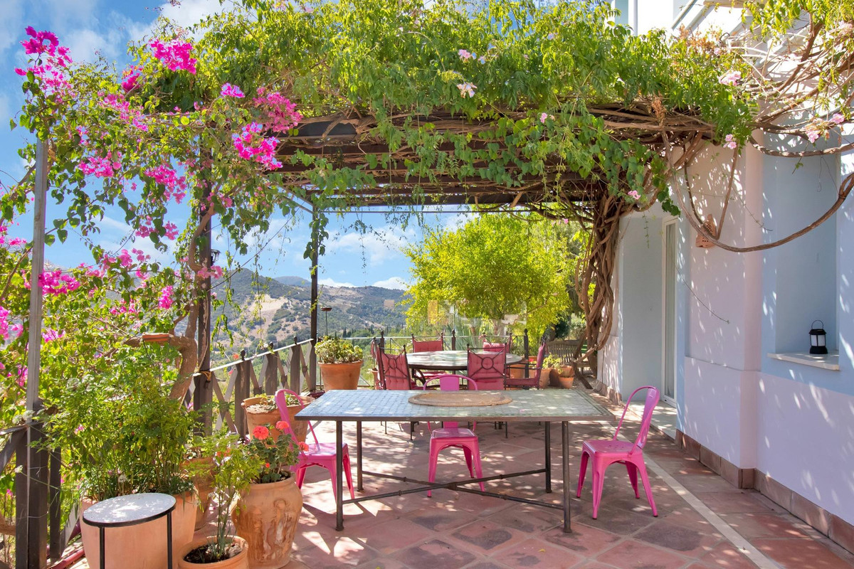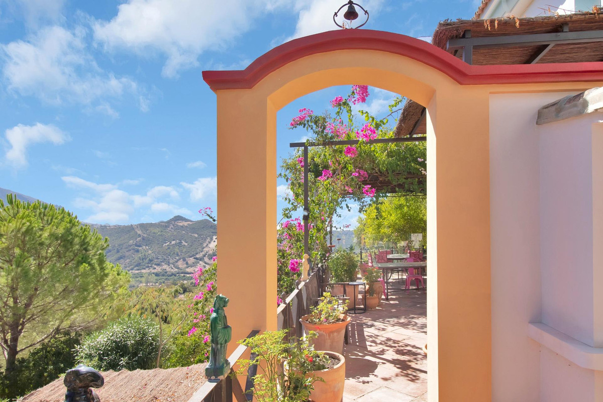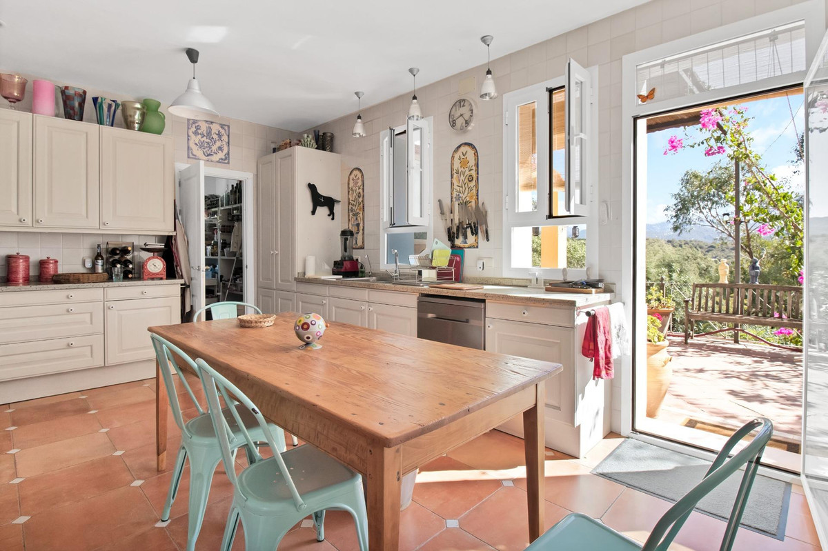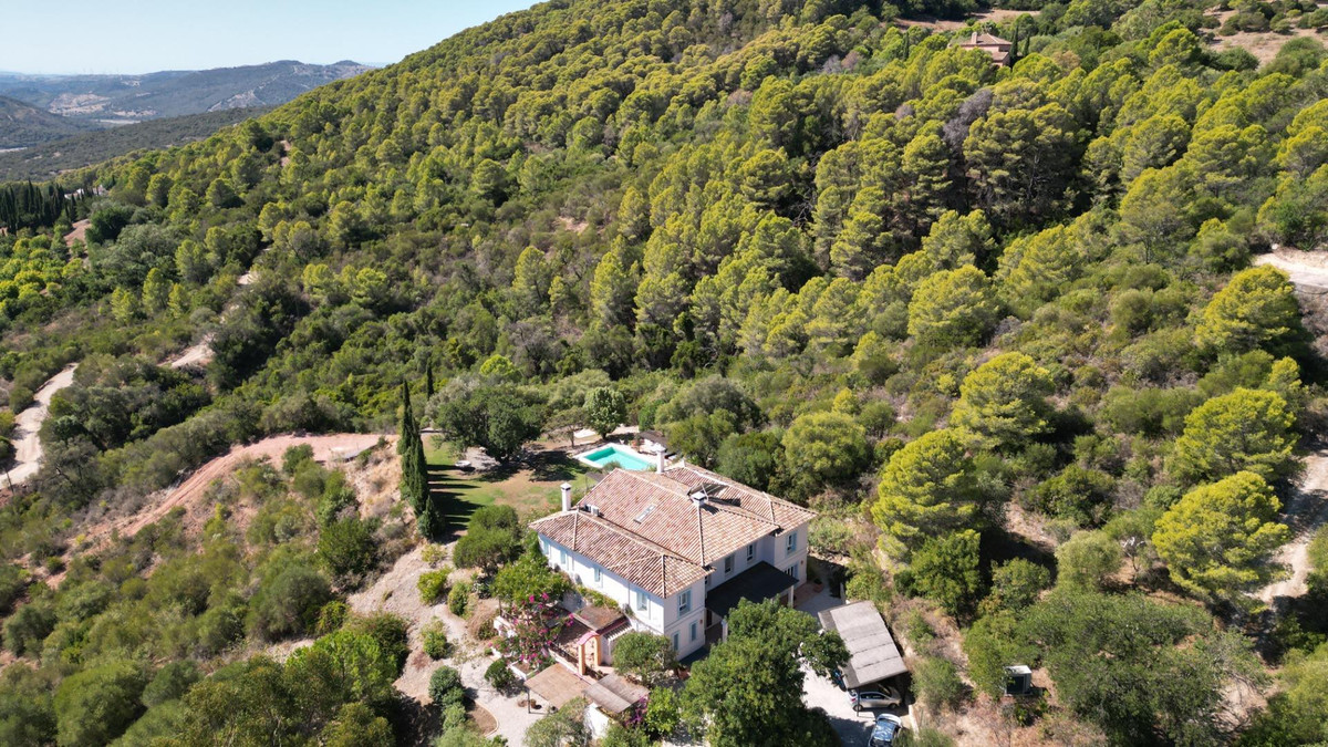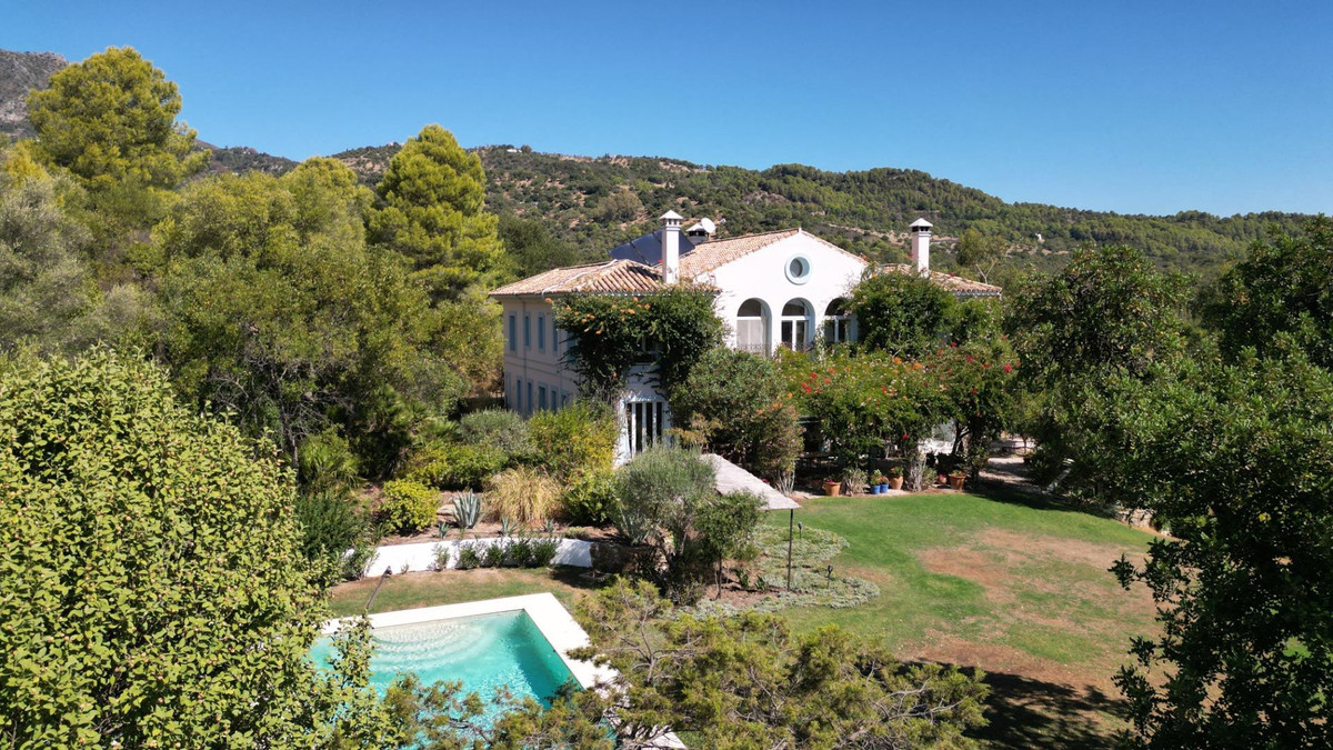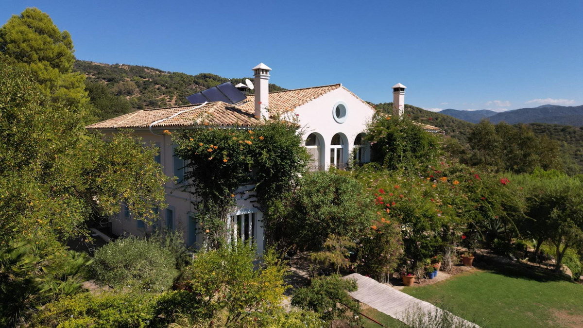 A unique country house, located in a lush natural environment, green perennial surroundings and wide open horizons as far as the eye can see...Unique for its aesthetic, which reminds of a Tuscany villa and it is designed to enjoy family life, with ample spaces full of air where inddor and outdoor living blend together, where the protagonists are the light and landscape...And unique because of its modernity and energetic self-sufficiency, an specially comfortable house where one can live anytime of the year, under-floor heating all throughout, air conditioning,… all these commodities are sustained by a large solar panels installation of over 56 sqm (strategically located so they are not seen from anywhere), an extensive 24KW solar installation, two 10kw convertors, and 20KW battery, plus car charging connection. Additionally, the property has its own water supply from a well, it is an area with a lot of water, the river passes very close by, where one could go and bathe in the summertime...The house was built in 2000, and it is South oriented. There are 7 bedrooms with their own bathroom, and several multipurpose spaces (study, workshop, library,…) Surrounded by ample and lush gardens, a large lawn, and a lovely pool area with ample sunbathing terraces and an ice bath for the brave under us. In addition, at the back of the house, is a large vegetable garden and a chicken pen..A private drive, bordered by cypresses, leads up to the house with ample parking. The main door opens to a light entrance hall, giving way to the living room with large glass doors. Connected is the generous covered terrace, which becomes the living in summertime. A separate dining room is connected to the fully fitted German SieMatic kitchen, and pantry with three fridges, and a freezer. Kitchen and dining open up towards an East facing terrace with outdoor kitchen facilities. The views toward the Sierra Crestellina are breathtaking from here. On the other ground, floor wing is a library or TV room. Fully fitted with shelving for the books. Also, an ample guest bedroom with fireplace, built-in wardrobes, and en-suite bathroom. This bedroom opens up to the garden..On the first floor is a spacious landing that could be used as an additional sitting room or painting studio. The large master suite with slanted ceiling. It has a walk-in dressing room with a skylight and an en-suite bathroom. The windows look out over the gardens and the abundance of flowers overgrowing the covered terrace on the ground floor. The master suite connects to another bedroom with a bathroom. This can be used as an annex to the main, yet is also accessible from the landing to use as an independent bedroom. Furthermore on this floor a large office (or extra bedroom) with built-in shelving and on the other side of the landing, 2 more en-suite bedrooms..The lower garden level, with over 300m2 build size, comprises the laundry room, a large workshop/studio, a bodega, a storage room, and a machine room. On the East side is a staff apartment with a living kitchen, bedroom, bathroom, and private terrace and garden. Plus another large guest suite with a bathroom and kitchenette also opens up to the garden..Features of this luxury country house for sale in Andalusia include the outdoor swimming pool, three fireplaces, automatic irrigation in the gardens, parquet and travertine flooring, double-glazed windows, and a BBQ area. Portuguese decorative tiles. Extensive areas are set up for a kitchen-ready vegetable garden. Water through a private well..This exclusive property is located just 15 minutes from Gaucin, 30 minutes from the beach, 45 minutes from Marbella and Sotogrande, and 1.5 hours to Málaga International Airport.