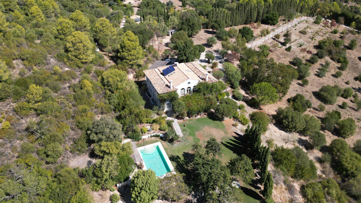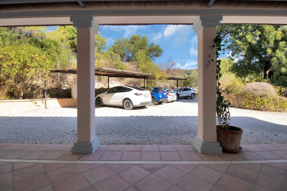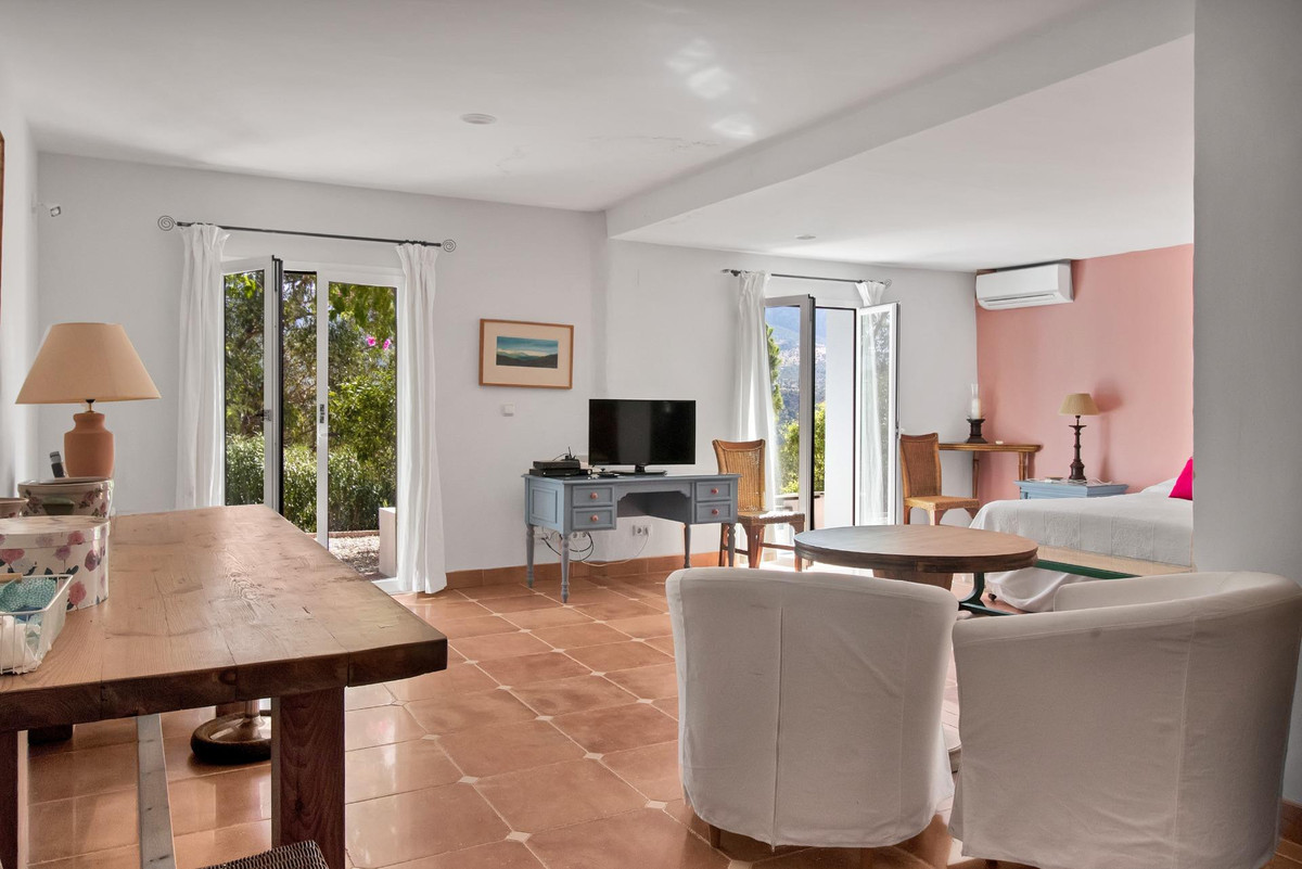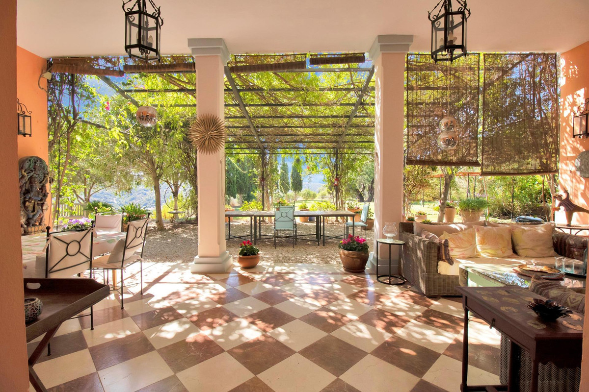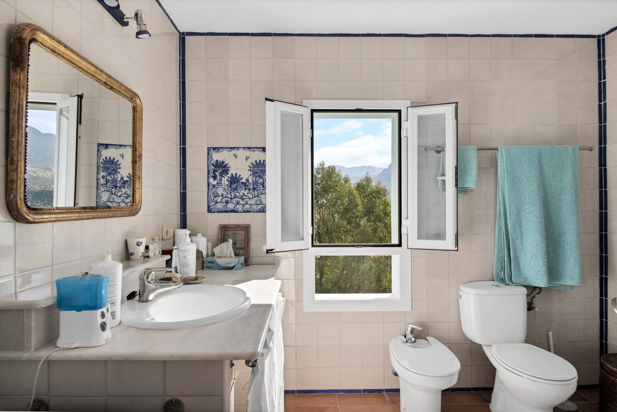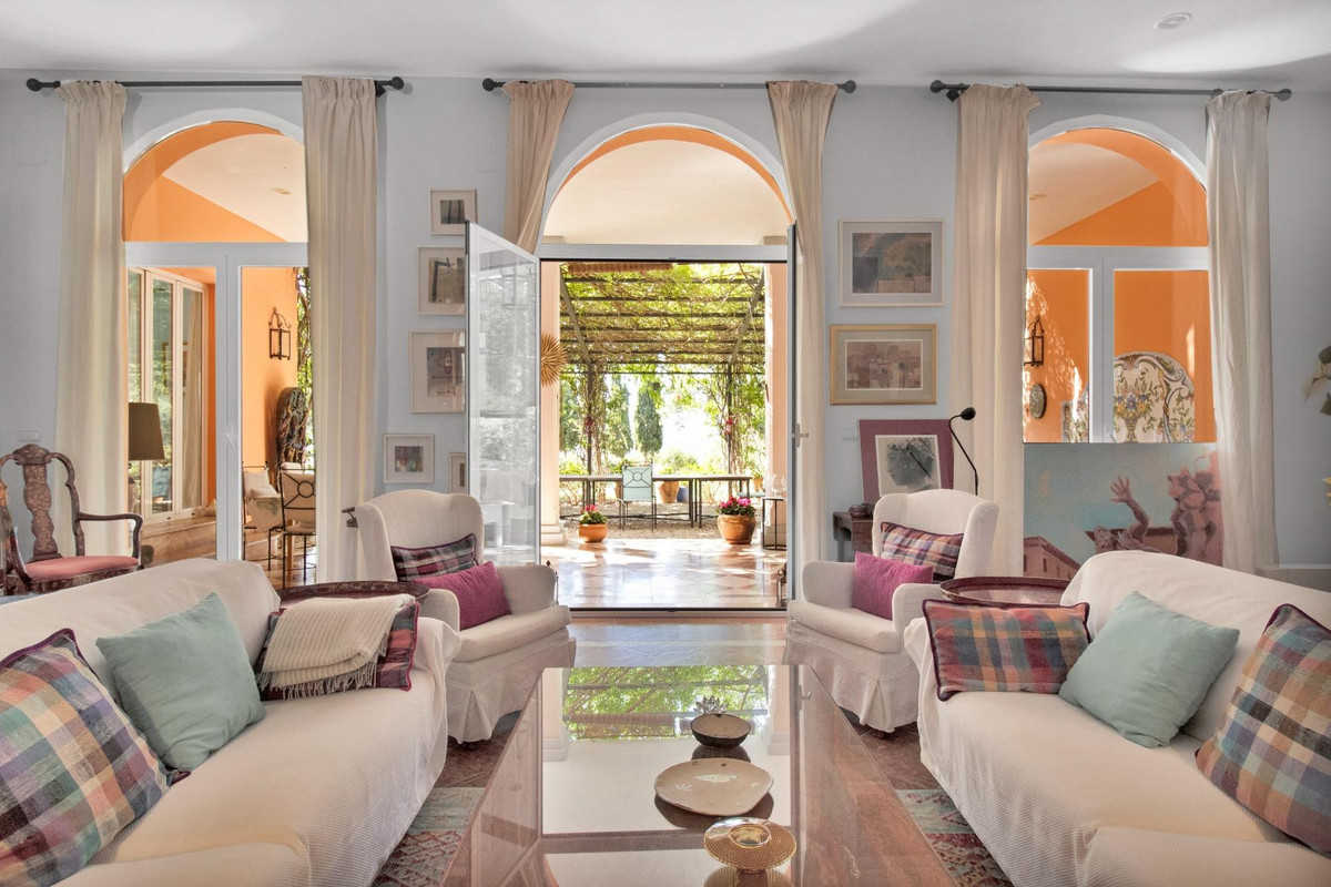 A unique country house, located in a lush natural environment, green perennial surroundings and wide open horizons as far as the eye can see...Unique for its aesthetic, which reminds of a Tuscany villa and it is designed to enjoy family life, with ample spaces full of air where inddor and outdoor living blend together, where the protagonists are the light and landscape...And unique because of its modernity and energetic self-sufficiency, an specially comfortable house where one can live anytime of the year, under-floor heating all throughout, air conditioning,… all these commodities are sustained by a large solar panels installation of over 56 sqm (strategically located so they are not seen from anywhere), an extensive 24KW solar installation, two 10kw convertors, and 20KW battery, plus car charging connection. Additionally, the property has its own water supply from a well, it is an area with a lot of water, the river passes very close by, where one could go and bathe in the summertime...The house was built in 2000, and it is South oriented. There are 7 bedrooms with their own bathroom, and several multipurpose spaces (study, workshop, library,…) Surrounded by ample and lush gardens, a large lawn, and a lovely pool area with ample sunbathing terraces and an ice bath for the brave under us. In addition, at the back of the house, is a large vegetable garden and a chicken pen..A private drive, bordered by cypresses, leads up to the house with ample parking. The main door opens to a light entrance hall, giving way to the living room with large glass doors. Connected is the generous covered terrace, which becomes the living in summertime. A separate dining room is connected to the fully fitted German SieMatic kitchen, and pantry with three fridges, and a freezer. Kitchen and dining open up towards an East facing terrace with outdoor kitchen facilities. The views toward the Sierra Crestellina are breathtaking from here. On the other ground, floor wing is a library or TV room. Fully fitted with shelving for the books. Also, an ample guest bedroom with fireplace, built-in wardrobes, and en-suite bathroom. This bedroom opens up to the garden..On the first floor is a spacious landing that could be used as an additional sitting room or painting studio. The large master suite with slanted ceiling. It has a walk-in dressing room with a skylight and an en-suite bathroom. The windows look out over the gardens and the abundance of flowers overgrowing the covered terrace on the ground floor. The master suite connects to another bedroom with a bathroom. This can be used as an annex to the main, yet is also accessible from the landing to use as an independent bedroom. Furthermore on this floor a large office (or extra bedroom) with built-in shelving and on the other side of the landing, 2 more en-suite bedrooms..The lower garden level, with over 300m2 build size, comprises the laundry room, a large workshop/studio, a bodega, a storage room, and a machine room. On the East side is a staff apartment with a living kitchen, bedroom, bathroom, and private terrace and garden. Plus another large guest suite with a bathroom and kitchenette also opens up to the garden..Features of this luxury country house for sale in Andalusia include the outdoor swimming pool, three fireplaces, automatic irrigation in the gardens, parquet and travertine flooring, double-glazed windows, and a BBQ area. Portuguese decorative tiles. Extensive areas are set up for a kitchen-ready vegetable garden. Water through a private well..This exclusive property is located just 15 minutes from Gaucin, 30 minutes from the beach, 45 minutes from Marbella and Sotogrande, and 1.5 hours to Málaga International Airport.