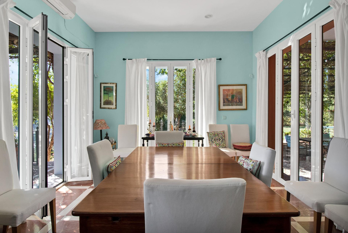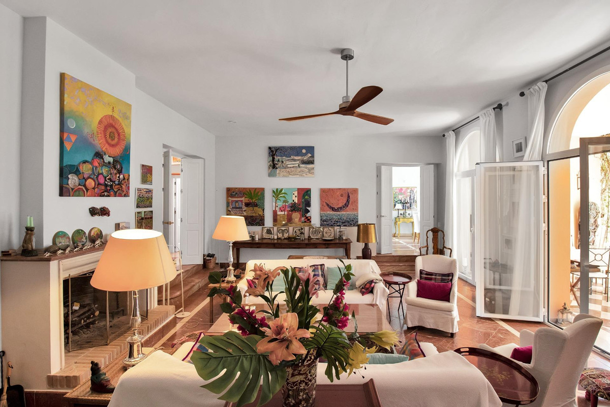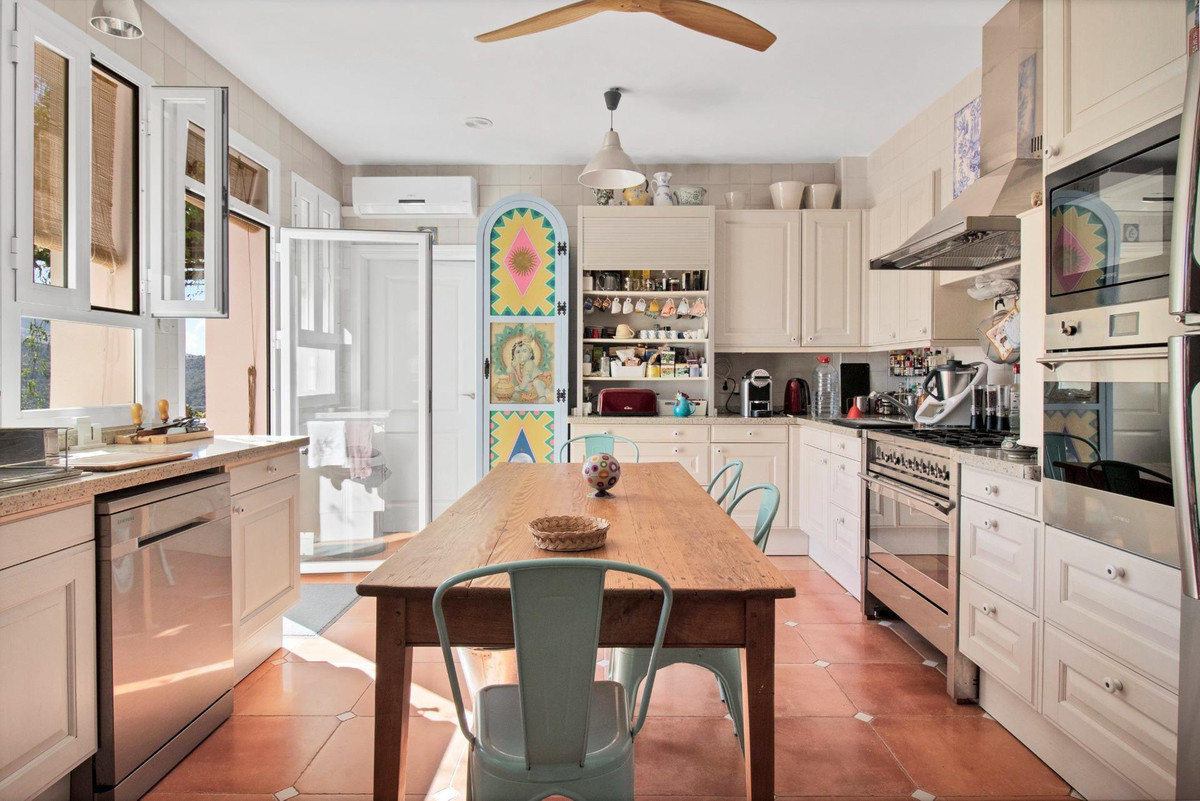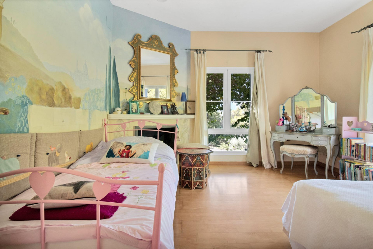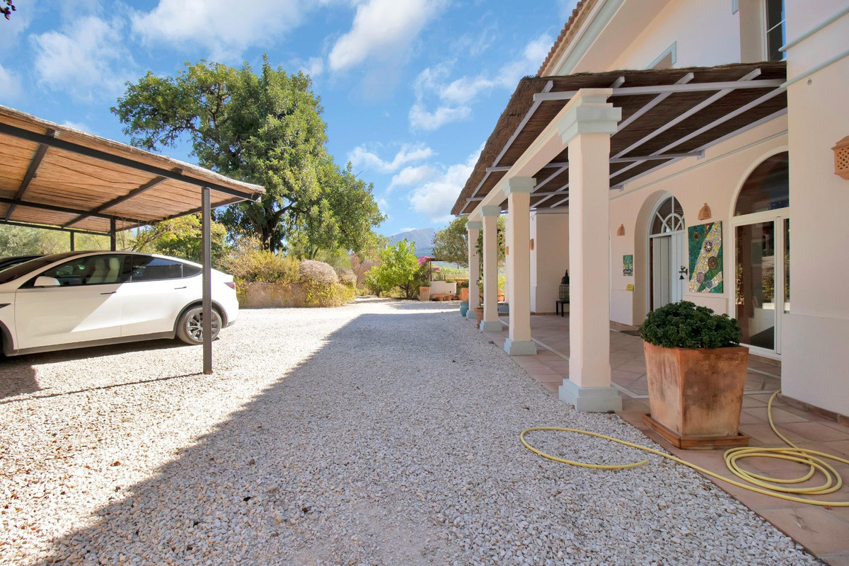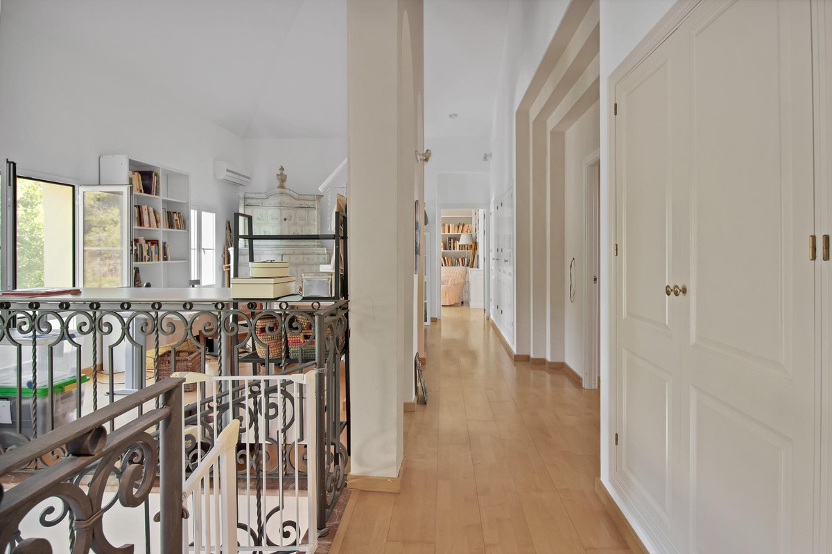 A unique country house, located in a lush natural environment, green perennial surroundings and wide open horizons as far as the eye can see...Unique for its aesthetic, which reminds of a Tuscany villa and it is designed to enjoy family life, with ample spaces full of air where inddor and outdoor living blend together, where the protagonists are the light and landscape...And unique because of its modernity and energetic self-sufficiency, an specially comfortable house where one can live anytime of the year, under-floor heating all throughout, air conditioning,… all these commodities are sustained by a large solar panels installation of over 56 sqm (strategically located so they are not seen from anywhere), an extensive 24KW solar installation, two 10kw convertors, and 20KW battery, plus car charging connection. Additionally, the property has its own water supply from a well, it is an area with a lot of water, the river passes very close by, where one could go and bathe in the summertime...The house was built in 2000, and it is South oriented. There are 7 bedrooms with their own bathroom, and several multipurpose spaces (study, workshop, library,…) Surrounded by ample and lush gardens, a large lawn, and a lovely pool area with ample sunbathing terraces and an ice bath for the brave under us. In addition, at the back of the house, is a large vegetable garden and a chicken pen..A private drive, bordered by cypresses, leads up to the house with ample parking. The main door opens to a light entrance hall, giving way to the living room with large glass doors. Connected is the generous covered terrace, which becomes the living in summertime. A separate dining room is connected to the fully fitted German SieMatic kitchen, and pantry with three fridges, and a freezer. Kitchen and dining open up towards an East facing terrace with outdoor kitchen facilities. The views toward the Sierra Crestellina are breathtaking from here. On the other ground, floor wing is a library or TV room. Fully fitted with shelving for the books. Also, an ample guest bedroom with fireplace, built-in wardrobes, and en-suite bathroom. This bedroom opens up to the garden..On the first floor is a spacious landing that could be used as an additional sitting room or painting studio. The large master suite with slanted ceiling. It has a walk-in dressing room with a skylight and an en-suite bathroom. The windows look out over the gardens and the abundance of flowers overgrowing the covered terrace on the ground floor. The master suite connects to another bedroom with a bathroom. This can be used as an annex to the main, yet is also accessible from the landing to use as an independent bedroom. Furthermore on this floor a large office (or extra bedroom) with built-in shelving and on the other side of the landing, 2 more en-suite bedrooms..The lower garden level, with over 300m2 build size, comprises the laundry room, a large workshop/studio, a bodega, a storage room, and a machine room. On the East side is a staff apartment with a living kitchen, bedroom, bathroom, and private terrace and garden. Plus another large guest suite with a bathroom and kitchenette also opens up to the garden..Features of this luxury country house for sale in Andalusia include the outdoor swimming pool, three fireplaces, automatic irrigation in the gardens, parquet and travertine flooring, double-glazed windows, and a BBQ area. Portuguese decorative tiles. Extensive areas are set up for a kitchen-ready vegetable garden. Water through a private well..This exclusive property is located just 15 minutes from Gaucin, 30 minutes from the beach, 45 minutes from Marbella and Sotogrande, and 1.5 hours to Málaga International Airport.
