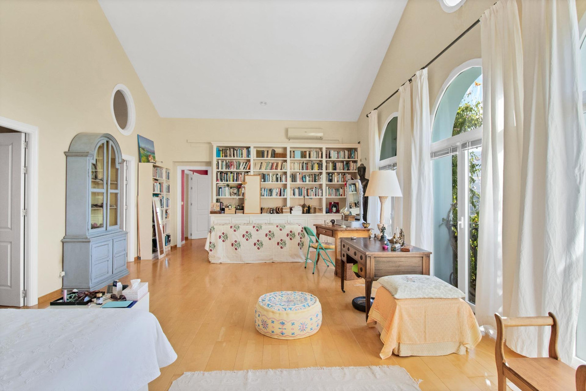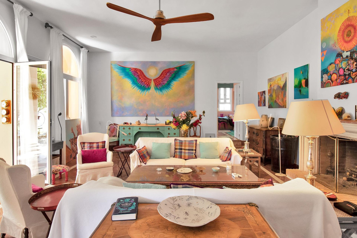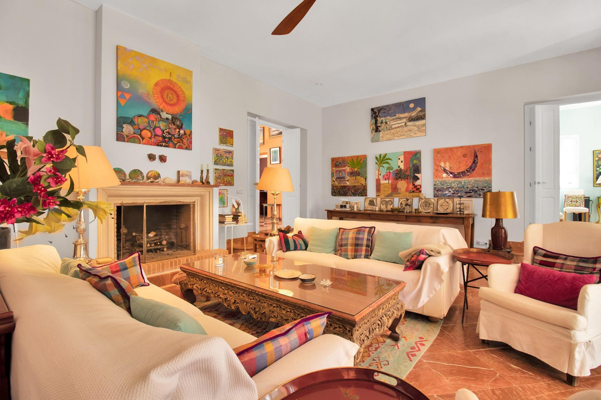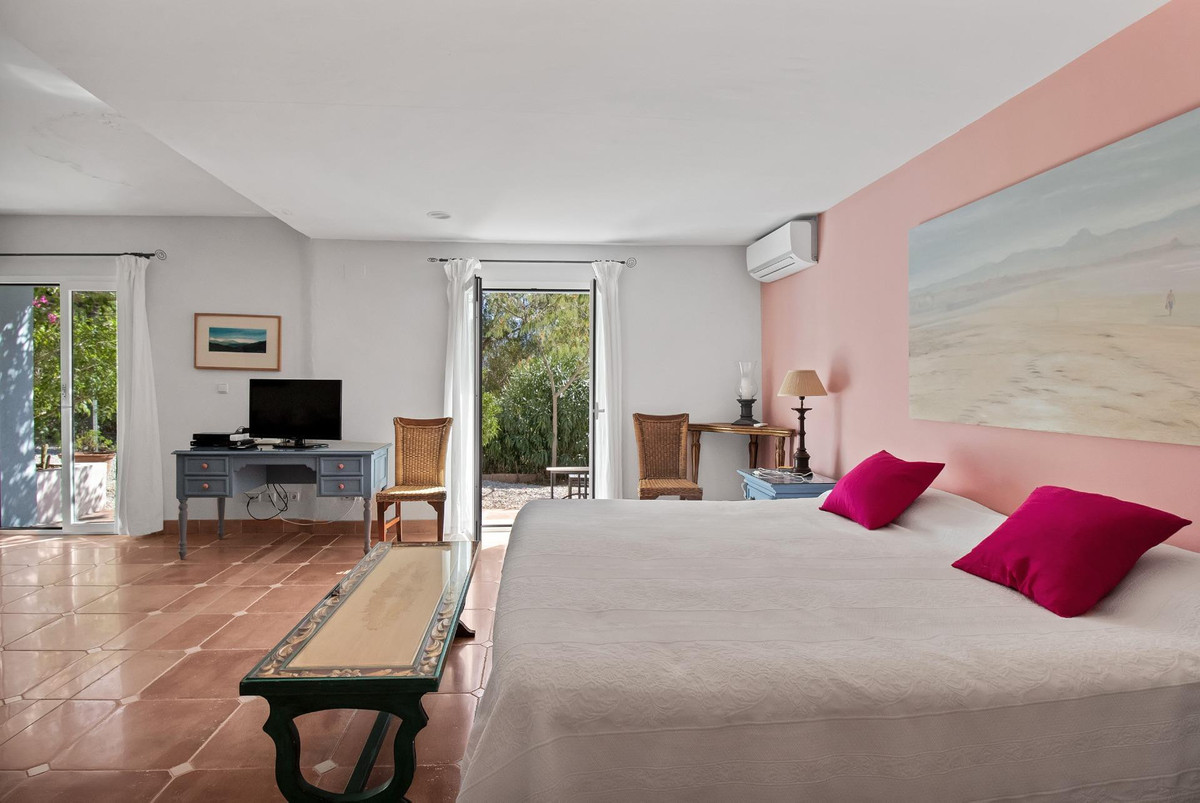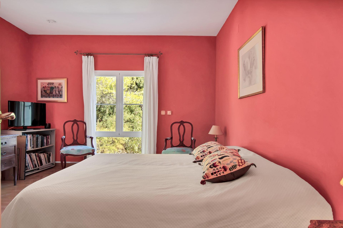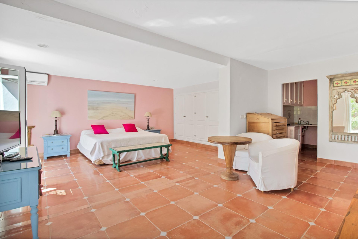 A unique country house, located in a lush natural environment, green perennial surroundings and wide open horizons as far as the eye can see...Unique for its aesthetic, which reminds of a Tuscany villa and it is designed to enjoy family life, with ample spaces full of air where inddor and outdoor living blend together, where the protagonists are the light and landscape...And unique because of its modernity and energetic self-sufficiency, an specially comfortable house where one can live anytime of the year, under-floor heating all throughout, air conditioning,… all these commodities are sustained by a large solar panels installation of over 56 sqm (strategically located so they are not seen from anywhere), an extensive 24KW solar installation, two 10kw convertors, and 20KW battery, plus car charging connection. Additionally, the property has its own water supply from a well, it is an area with a lot of water, the river passes very close by, where one could go and bathe in the summertime...The house was built in 2000, and it is South oriented. There are 7 bedrooms with their own bathroom, and several multipurpose spaces (study, workshop, library,…) Surrounded by ample and lush gardens, a large lawn, and a lovely pool area with ample sunbathing terraces and an ice bath for the brave under us. In addition, at the back of the house, is a large vegetable garden and a chicken pen..A private drive, bordered by cypresses, leads up to the house with ample parking. The main door opens to a light entrance hall, giving way to the living room with large glass doors. Connected is the generous covered terrace, which becomes the living in summertime. A separate dining room is connected to the fully fitted German SieMatic kitchen, and pantry with three fridges, and a freezer. Kitchen and dining open up towards an East facing terrace with outdoor kitchen facilities. The views toward the Sierra Crestellina are breathtaking from here. On the other ground, floor wing is a library or TV room. Fully fitted with shelving for the books. Also, an ample guest bedroom with fireplace, built-in wardrobes, and en-suite bathroom. This bedroom opens up to the garden..On the first floor is a spacious landing that could be used as an additional sitting room or painting studio. The large master suite with slanted ceiling. It has a walk-in dressing room with a skylight and an en-suite bathroom. The windows look out over the gardens and the abundance of flowers overgrowing the covered terrace on the ground floor. The master suite connects to another bedroom with a bathroom. This can be used as an annex to the main, yet is also accessible from the landing to use as an independent bedroom. Furthermore on this floor a large office (or extra bedroom) with built-in shelving and on the other side of the landing, 2 more en-suite bedrooms..The lower garden level, with over 300m2 build size, comprises the laundry room, a large workshop/studio, a bodega, a storage room, and a machine room. On the East side is a staff apartment with a living kitchen, bedroom, bathroom, and private terrace and garden. Plus another large guest suite with a bathroom and kitchenette also opens up to the garden..Features of this luxury country house for sale in Andalusia include the outdoor swimming pool, three fireplaces, automatic irrigation in the gardens, parquet and travertine flooring, double-glazed windows, and a BBQ area. Portuguese decorative tiles. Extensive areas are set up for a kitchen-ready vegetable garden. Water through a private well..This exclusive property is located just 15 minutes from Gaucin, 30 minutes from the beach, 45 minutes from Marbella and Sotogrande, and 1.5 hours to Málaga International Airport.