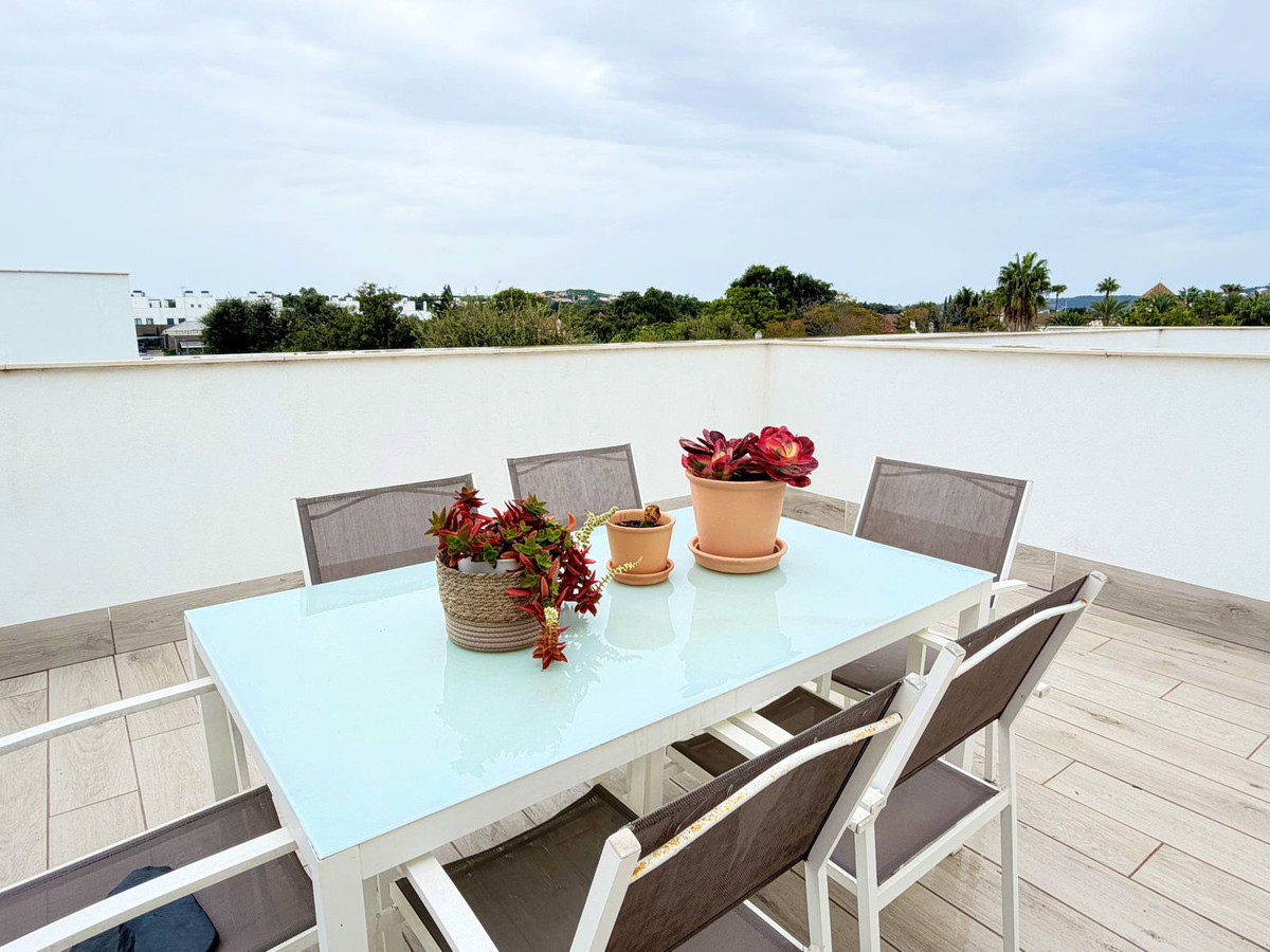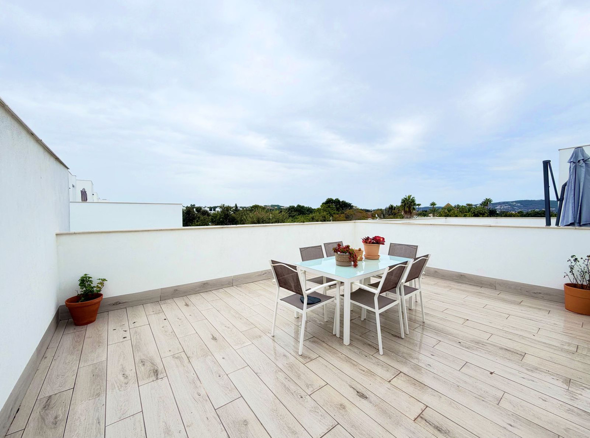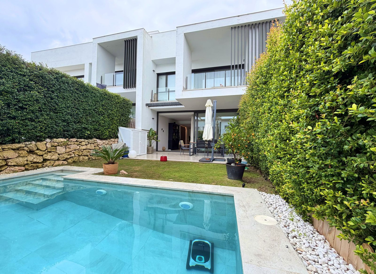 Contemporary-style townhouse located in the prestigious San Roque Club on the Costa del Sol. This property combines modern design, highest-standard finishes, and a privileged natural setting, making it an ideal choice as a primary residence or investment. The home stands out for its spaciousness, natural light, and functional layout. The open-plan living room, equipped with electric blinds and large windows, connects to a private terrace with unobstructed views of the golf course, the sea, and the community gardens. The modern, fully equipped kitchen adds elegance and practicality to the space. The house has 3 bedrooms with the possibility of a fourth, all with built-in wardrobes and high-quality finishes. The master bedroom features an en-suite bathroom and access to a private terrace. This floor also includes a large solarium with stunning views of the golf course, the sea, the mountains, and the surrounding natural landscape. The home is fitted with a state-of-the-art aerothermal system, ensuring energy efficiency and comfort year-round. The townhouse is part of a gated community with 24-hour security, beautifully maintained gardens, and a communal swimming pool. San Roque Club offers tranquility, privacy, and exclusivity, with proximity to Sotogrande, beaches, international schools, and a wide range of services. A visit is highly recommended for those seeking quality of life, design, and a sophisticated residential lifestyle in one of the most sought-after areas of southern Spain.