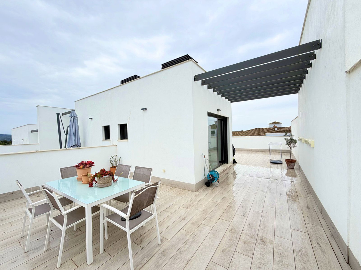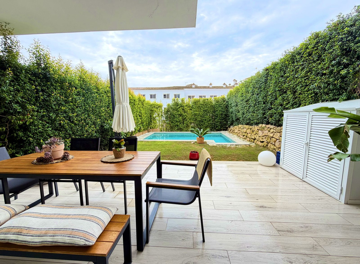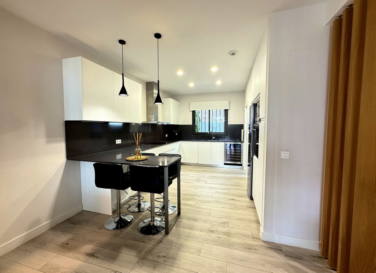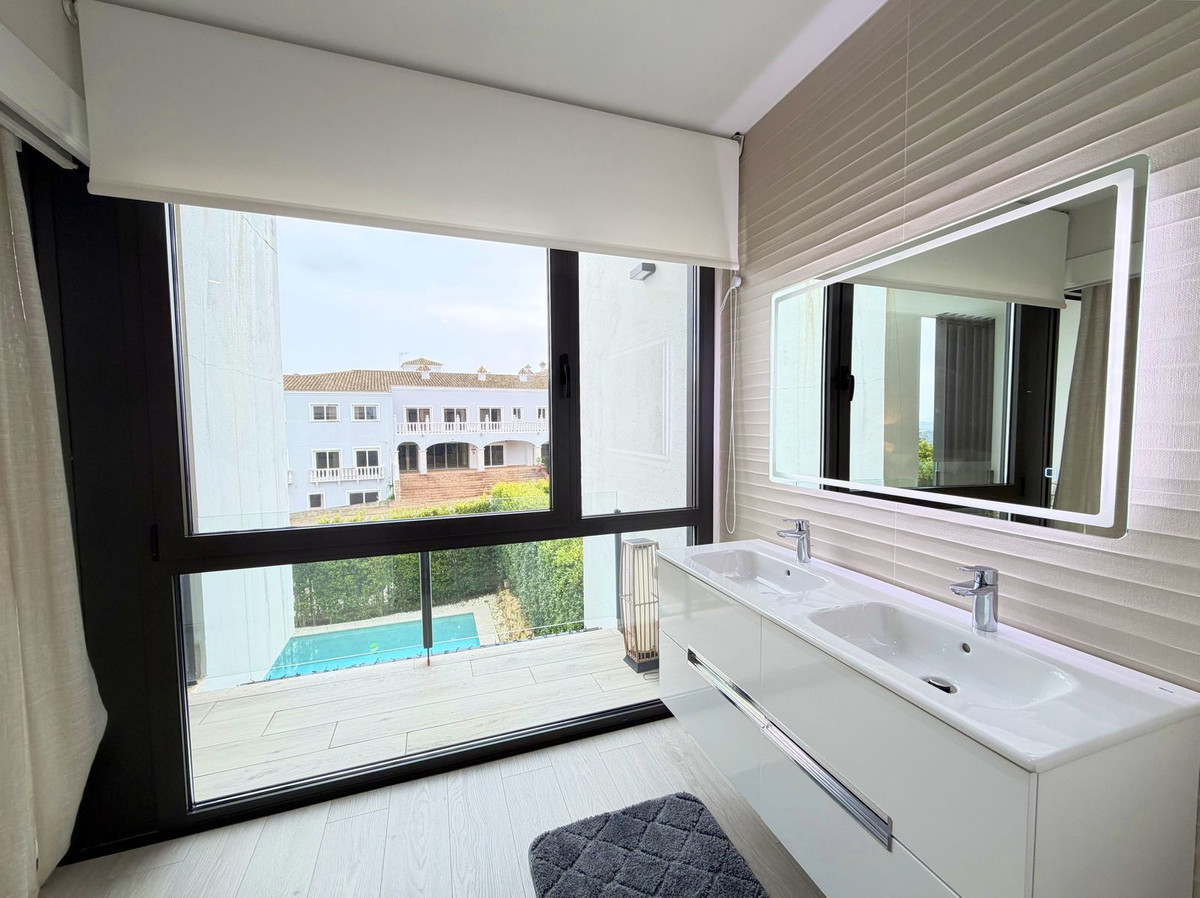 Contemporary-style townhouse located in the prestigious San Roque Club on the Costa del Sol. This property combines modern design, highest-standard finishes, and a privileged natural setting, making it an ideal choice as a primary residence or investment. The home stands out for its spaciousness, natural light, and functional layout. The open-plan living room, equipped with electric blinds and large windows, connects to a private terrace with unobstructed views of the golf course, the sea, and the community gardens. The modern, fully equipped kitchen adds elegance and practicality to the space. The house has 3 bedrooms with the possibility of a fourth, all with built-in wardrobes and high-quality finishes. The master bedroom features an en-suite bathroom and access to a private terrace. This floor also includes a large solarium with stunning views of the golf course, the sea, the mountains, and the surrounding natural landscape. The home is fitted with a state-of-the-art aerothermal system, ensuring energy efficiency and comfort year-round. The townhouse is part of a gated community with 24-hour security, beautifully maintained gardens, and a communal swimming pool. San Roque Club offers tranquility, privacy, and exclusivity, with proximity to Sotogrande, beaches, international schools, and a wide range of services. A visit is highly recommended for those seeking quality of life, design, and a sophisticated residential lifestyle in one of the most sought-after areas of southern Spain.