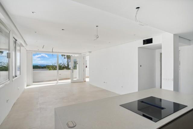 Discover modern Mediterranean living in this beautifully refurbished two-bedroom apartment, ideally situated within the sought-after gated community of Jardines de Andalucía in Nueva Andalucía. This stylish home features a spacious open-plan kitchen, living, and dining area, a comfortable guest bedroom with a separate bathroom, and an elegant master suite. Every room opens directly onto a private terrace boasting breathtaking views of La Concha Mountain and partial sea views.