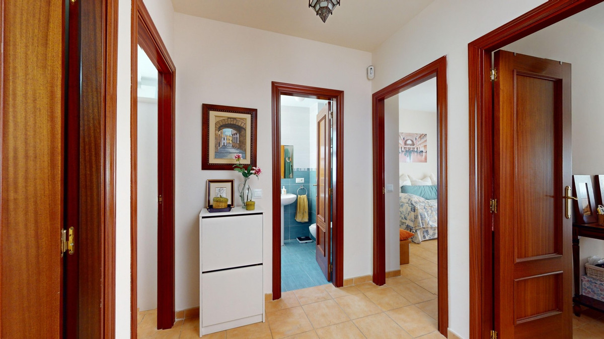 This charming corner townhouse in the popular urbanization of Valle Niza offers a cozy home with a touch of Mediterranean flair. Spread over two floors and featuring a spacious rooftop terrace with lovely sea views, this property provides everything needed for comfortable living under the Andalusian sun. The ground floor includes a practical, well-equipped kitchen and a bright living-dining room with direct access to the terrace, perfect for outdoor meals or relaxing moments. A guest WC completes the layout on this level. On the first floor, you'll find the master bedroom with an en-suite bathroom and access to a private terrace, ideal for enjoying the fresh morning air. There are three additional bedrooms, offering space for family or guests, one of which also has access to the terrace. A second bathroom is also available. The home features air conditioning and built-in wardrobes for comfort and ample storage. The rooftop terrace offers various possibilities for use, whether its sunbathing or enjoying a relaxing aperitif at sunset with a view of the sea. The house is surrounded by a spacious terrace on three sides, ensuring there's always a shaded spot to retreat to. A small garden below the terrace provides direct access to the communal pool, which is just a short walk away. The urbanization also offers five additional pools, sports courts for tennis and basketball, as well as playgrounds for children. This property is perfect for families or as a holiday home for those seeking a relaxed lifestyle in a friendly Mediterranean community. We are pleased to be able to present this dream property to you soon, either personally or via virtual viewing. Because this world is unique - just like our Axarquía. In Andalusia. On the Costa del Sol. Here, on the sunny side of life...