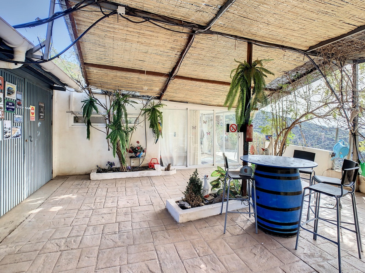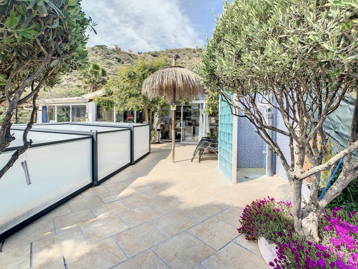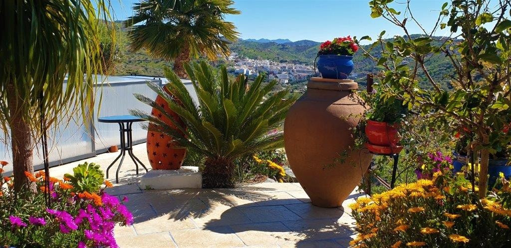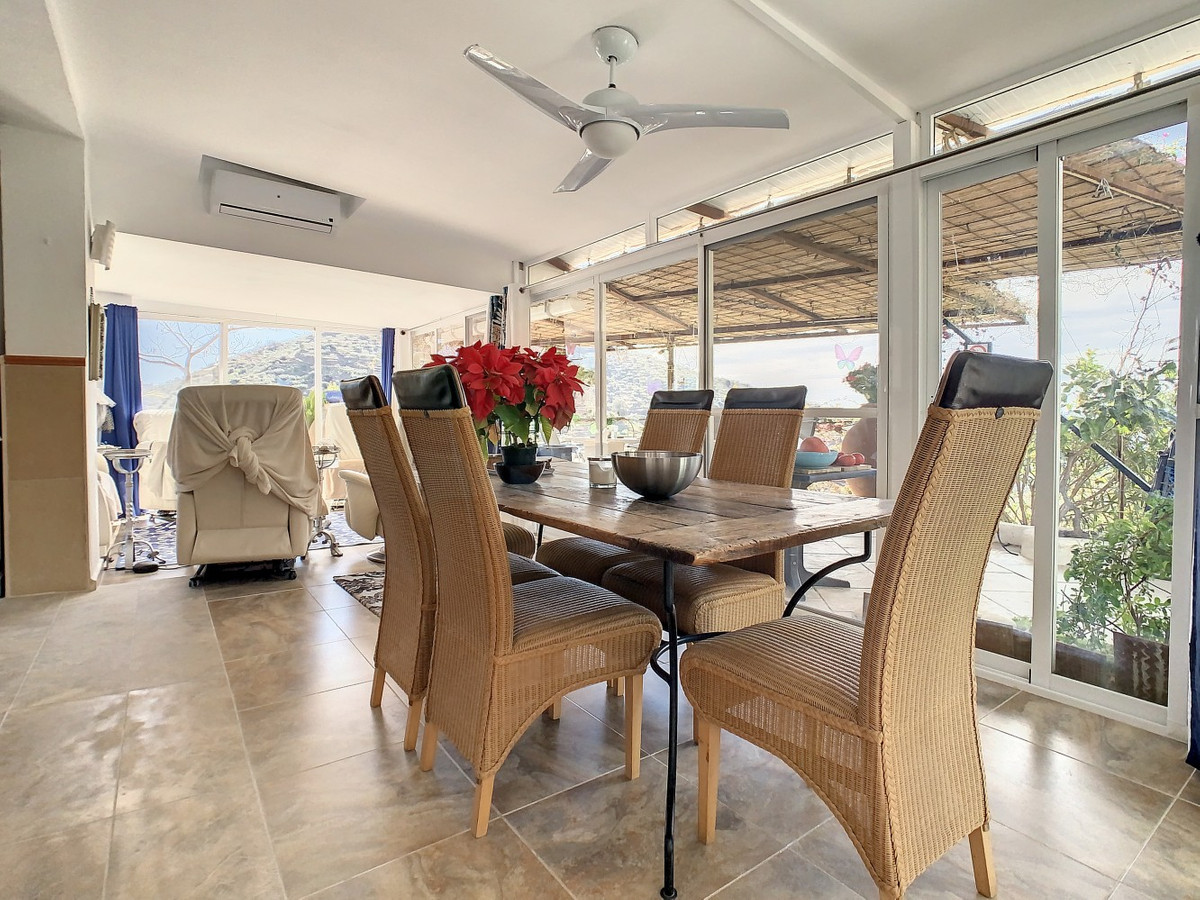 You are looking for a large villa with a heated swimming pool, neatly hidden nearly at the top of a mountain, surrounded by nature with breath-taking views of the valley up to the sea and the village of Arenas? This might just be what you are looking for. At the entry of the property, you find a covered parking space for at least 6 cars and a workshop. From there you step onto a wide porch that surrounds the whole property. In the centre of the house, that ́s all on one level, you find an office, 3 bedrooms, 2 bathrooms (one on-suite), 2 kitchens, an open bbq space, a large sitting/dining room and more sitting areas with views to the outside through French doors. Around the porch there is an array of different privative sitting/sunbathing spaces where it is just a dream to be. Here you also find the heated swimming pool, palm trees, an exterior bedroom and a passage leading to little romantic benches with fantastic views all around the foot of the property. There is also an outdoor kitchen. This property is well finished and comes with all the amenities. It is perfect for people that are fond of comfort and privacy. We are pleased to be able to present this dream property to you soon, either personally or via virtual viewing. Because this world, it is unique - just like our Axarquía. In Andalusia. On the Costa del Sol. Here, on the sunny side of life...