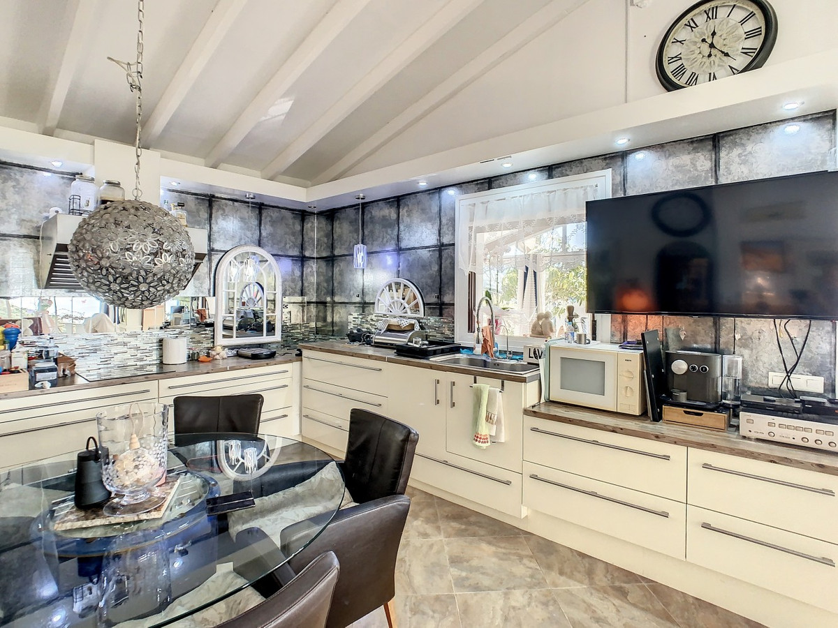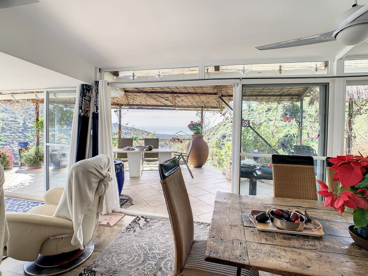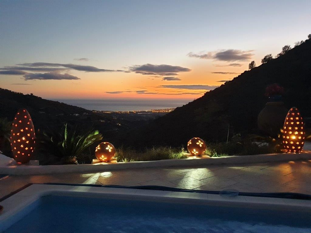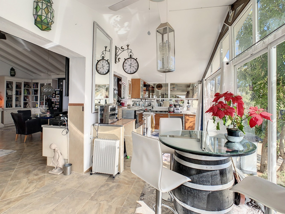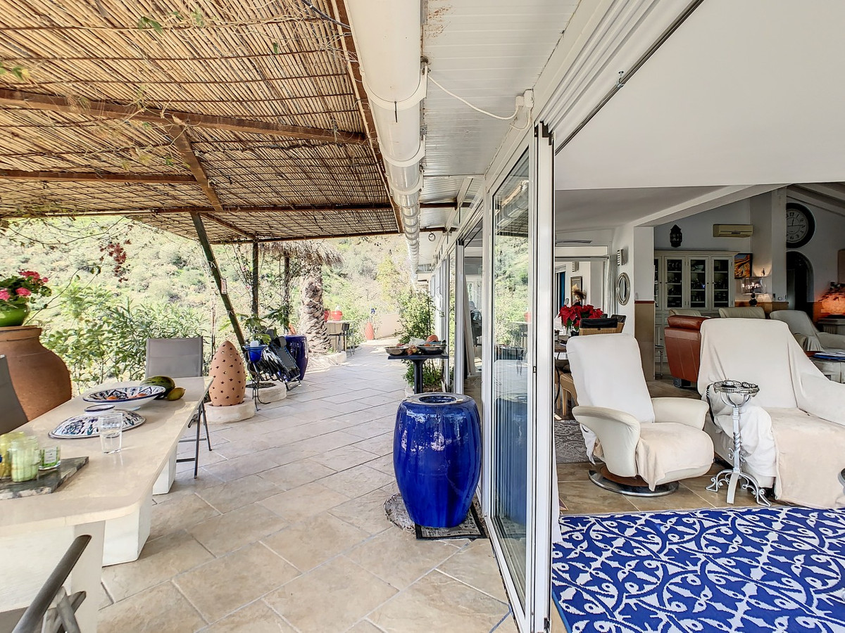 You are looking for a large villa with a heated swimming pool, neatly hidden nearly at the top of a mountain, surrounded by nature with breath-taking views of the valley up to the sea and the village of Arenas? This might just be what you are looking for. At the entry of the property, you find a covered parking space for at least 6 cars and a workshop. From there you step onto a wide porch that surrounds the whole property. In the centre of the house, that ́s all on one level, you find an office, 3 bedrooms, 2 bathrooms (one on-suite), 2 kitchens, an open bbq space, a large sitting/dining room and more sitting areas with views to the outside through French doors. Around the porch there is an array of different privative sitting/sunbathing spaces where it is just a dream to be. Here you also find the heated swimming pool, palm trees, an exterior bedroom and a passage leading to little romantic benches with fantastic views all around the foot of the property. There is also an outdoor kitchen. This property is well finished and comes with all the amenities. It is perfect for people that are fond of comfort and privacy. We are pleased to be able to present this dream property to you soon, either personally or via virtual viewing. Because this world, it is unique - just like our Axarquía. In Andalusia. On the Costa del Sol. Here, on the sunny side of life...