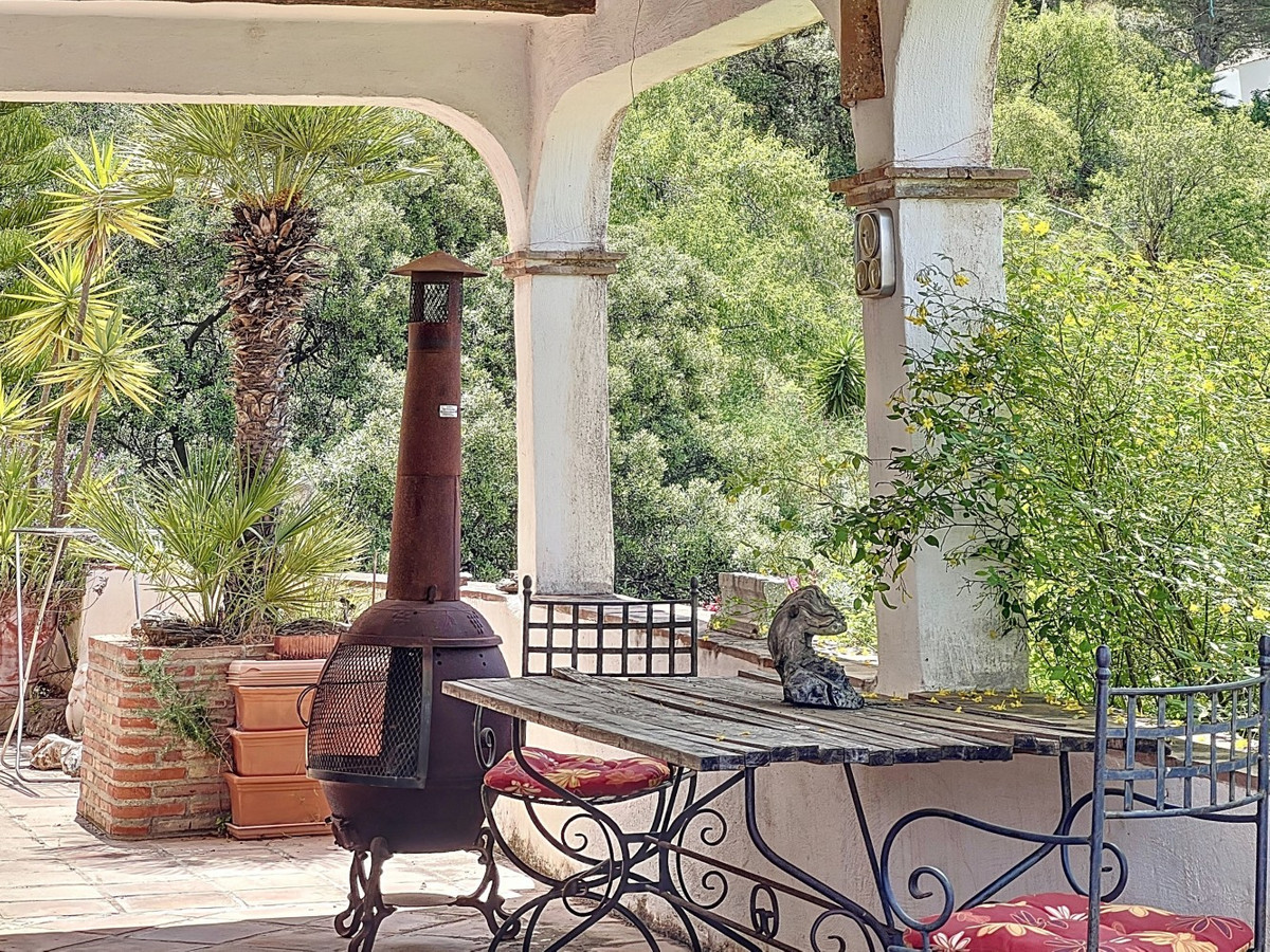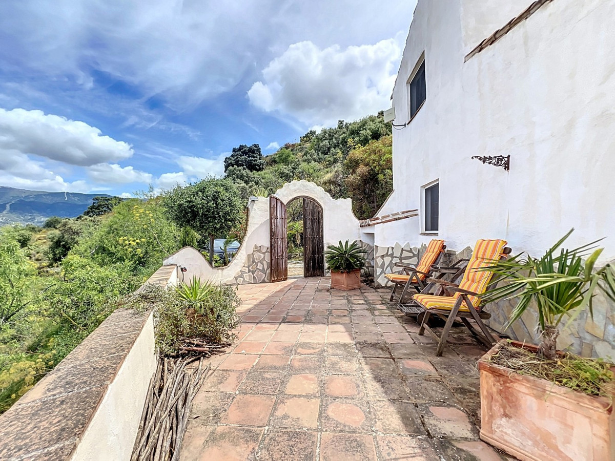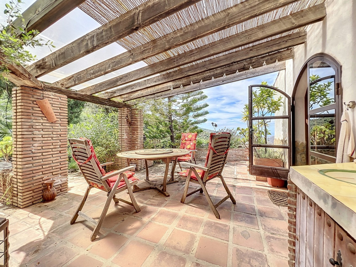 This charming Spanish country house in Sayalonga/Árchez, Málaga, blends traditional character with modern comfort all set against a backdrop of breathtaking views. The property offers a constructed area of 199 m2 and 148 m2 of living space spread over two floors, with three bedrooms and two bathrooms ideal for families or guests. Inside, rustic features dominate: exposed wooden beams under whitewashed ceilings add warmth and authenticity to every room. Terracotta tiles emphasize the Mediterranean style and create a harmonious overall aesthetic. A major highlight is the well-thought-out heating solution: a modern pellet stove in the hallway efficiently warms the entire house. Additionally, there's a cosy wood-burning stove in the living room and an infrared panel heater for extra comfort on cooler evenings. The bathrooms also feature electric infrared heaters to ensure a pleasant, warm atmosphere. Both the living room and bedrooms include built-in wardrobes that offer practical storage while blending seamlessly with the style. Plush furniture in warm red tones, decorative mirrors, colourful artworks, and personal collections give the space a relaxed, bohemian vibe. A striking archway connects the interior to one of the terraces and opens up to stunning views of the countryside. The kitchen is both charming and functional, with cream cabinets, granite countertops, modern appliances, and a patterned tile backsplash. A decorative extractor hood completes the picture. The two bathrooms are individually designed: one features a bathtub and artistic rustic tiles, while the other has a modern look with clean lines and contemporary fittings. Both complement the character of the house. The bedrooms reflect the Andalusian style, with wrought iron beds, wooden furniture, warm lighting, and the aforementioned built-in wardrobes that add comfort and order. Outside, several terraces offer spectacular views of the sea, rolling hills, and white villages. One of the terraces is covered and offers expansion potential ideal for one or two additional rooms. The outdoor area also includes a private pool, various seating areas, an outdoor kitchen, and a well-kept garden perfect for sociable evenings or quiet moments in nature. This villa combines timeless architecture with personal touches, thoughtful amenities, and spectacular views a true taste of Andalusian living. We are pleased to be able to present this dream property to you soon, either personally or via virtual viewing. Because this world is unique - just like our Axarquía. In Andalusia. On the Costa del Sol. Here, on the sunny side of life...