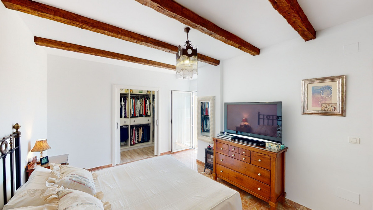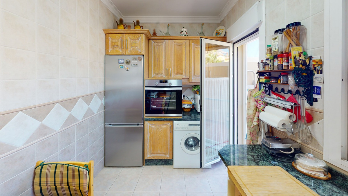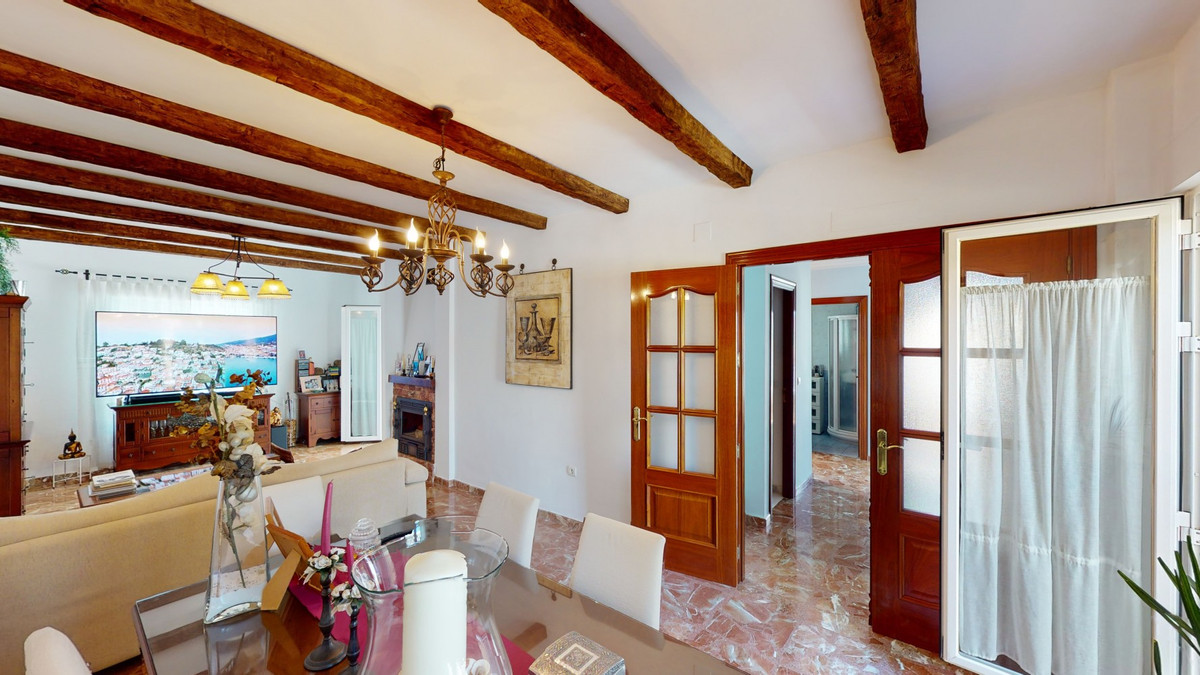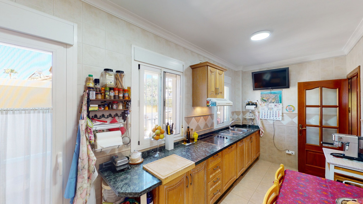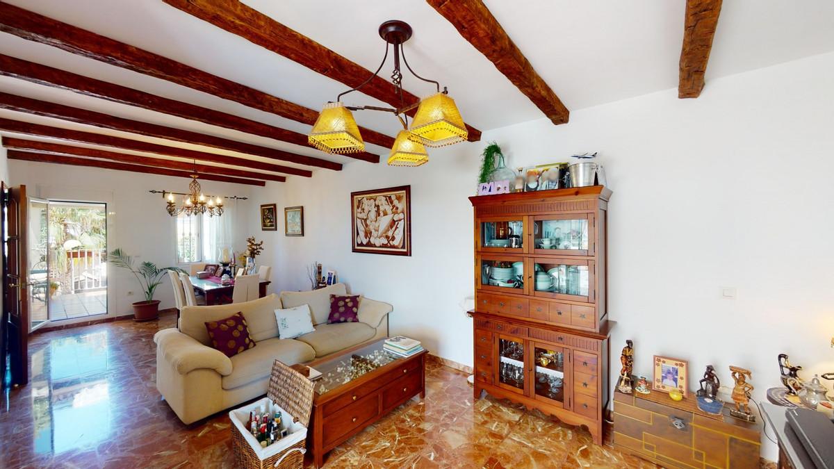 Beautiful, renovated semi-detached house in the quiet residential area of Viña Malaga. The three-storey house has two entrances. It is divided into 3 bedrooms, 3 bathrooms, a guest toilet, 2 kitchens, a living room and a home cinema. The outdoor area offers various chill-out areas, a pool, and an outdoor kitchen with barbecue. In the basement there is a double garage, which is now used as a cinema, as well as a gym, a kitchen and a guest toilet. This part can be used for entertaining friends, or as an independent apartment with 2 bedrooms. There is direct access from the garage to the ground floor. The ground floor has an entrance hall with a wardrobe, a bathroom with a shower, a kitchen with all modern appliances and an exit to the balcony, and a living and dining room with a fireplace. From the living room there is also an exit to the beautiful outdoor area. There you will find the large patio with many seating and lounging areas around the 4 x 8 m pool, an outdoor shower and stylish decorations. There is also a rustic bar and a barbecue area with water and electricity. In the evening, everything is romantically lit and you can enjoy wonderful meals with family and friends. On the first floor are the three bedrooms, one of which has a dressing room and on-suite bathroom. Each bedroom has its own balcony with sea views. The house was built in 2002 and was recently renovated. Don't miss the opportunity to visit this beautiful semi-detached house, which is only 5 minutes away from the beach, the motorway and the golf course. We are pleased to be able to present this dream property to you soon, either personally or via virtual viewing. Because this world is unique - just like our Axarquía. In Andalusia. On the Costa del Sol. Here, on the sunny side of life...