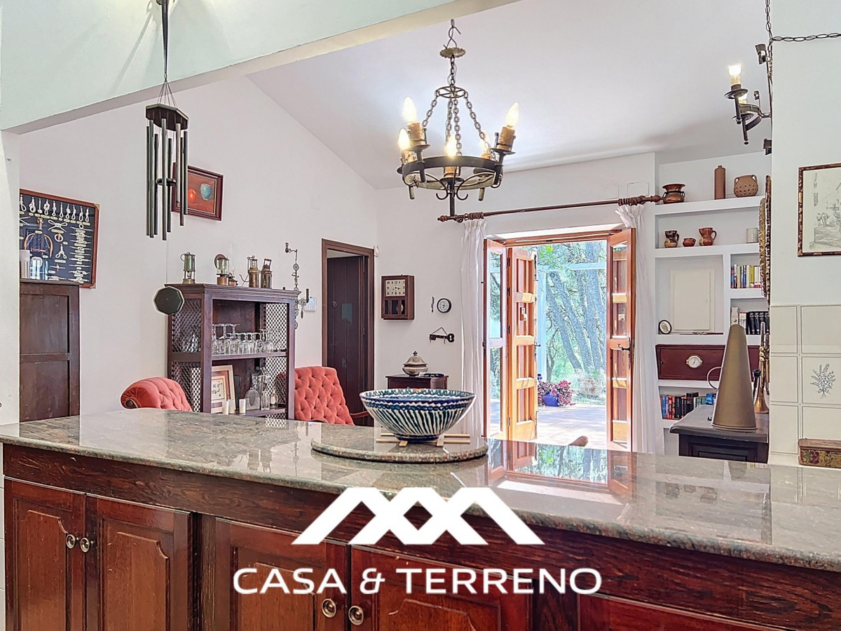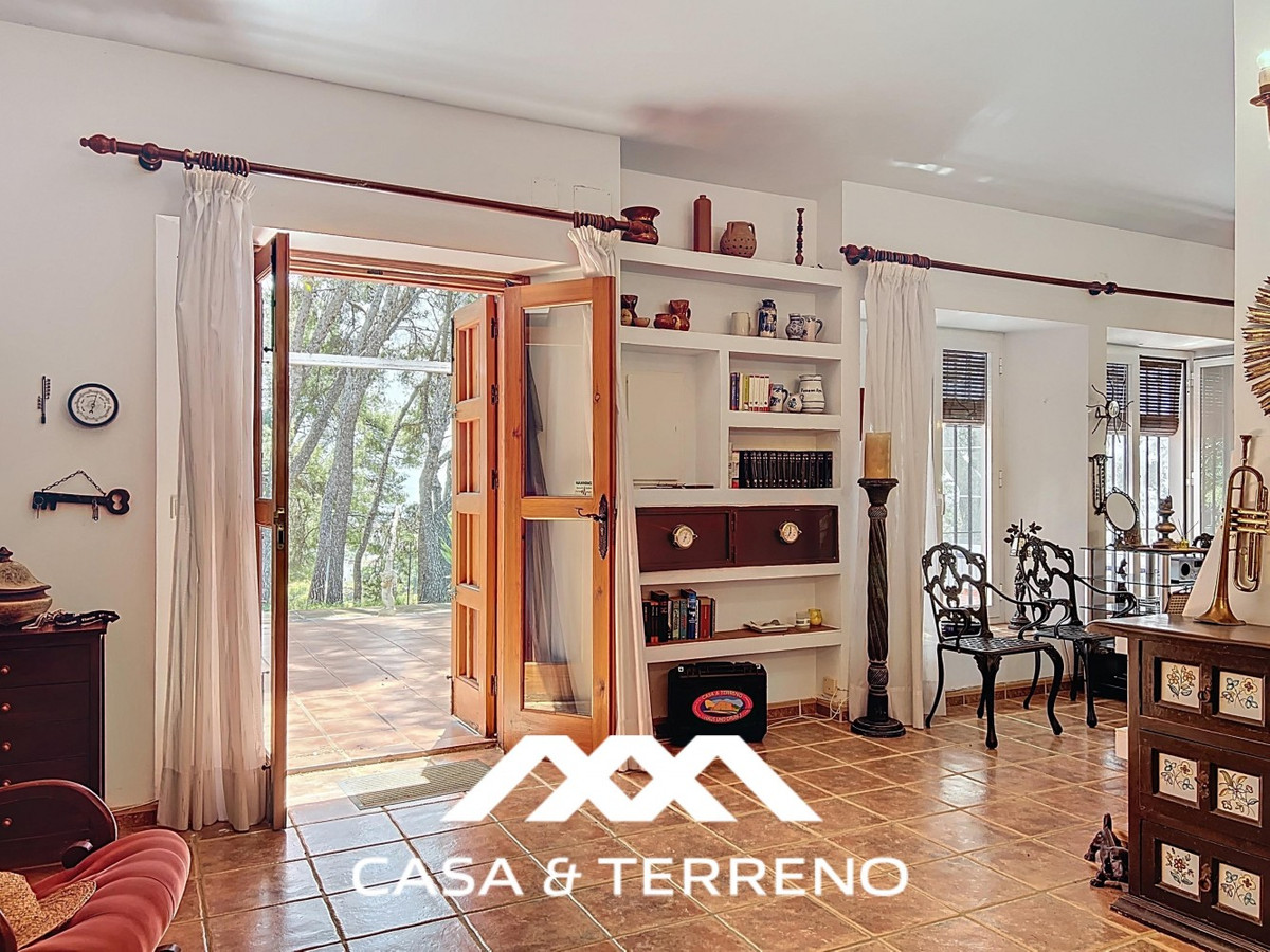 Located between Frigiliana and Nerja, this charming Andalusian-style property combines a comfortable main house with extraordinary exteriors, set on a spectacular plot of over 6,000 m2. Surrounded by mature pine trees and with complete privacy, this finca conveys the feeling of having your own private forest: quiet, green and full of character. The main house, distributed over one floor, offers three spacious bedrooms and three well-equipped bathrooms. The master bedroom is especially generous, providing a perfect space to relax. Terracotta floors and built-in shelving bring warmth and authenticity throughout the home. The living-dining room is bright and open, with high ceilings, large windows and a cosy fireplace, which connects seamlessly with the kitchen, equipped with rustic wooden cupboards, modern appliances, a pantry and charming details such as a row of copper pans. A covered terrace extends the life to the outside, perfect for dining in the shade or lounging all year round. There is also an integrated barbecue area and a separate building next to the main house, currently used as a storage room. But what really makes this property special is its impressive plot. Pine trees provide natural shade and a relaxing atmosphere, while small stone steps lead through the terraced grounds, generating the feeling of a retreat in the middle of nature. In addition, it has a full-size tennis court, a garage and a beautiful pool area with sea views among the trees. Next to the pool, the guest house offers an open-plan living space and bedroom, with a small kitchen and bathroom. Located just below the main house, it guarantees complete privacy and is ideal for visits or even for renting. A unique property for those who value space, tranquillity and nature, without giving up the proximity of the beaches of Nerja and the charm of the white village of Frigiliana. An uncommon combination of interior comfort and outdoor magic in one of the most desirable areas of the Axarquía. We are delighted to be able to present this property to you soon, either personally or via virtual viewing. Because this world is unique - like our Axarquía. In Andalusia. On the Costa del Sol. Here, on the sunny side of life...