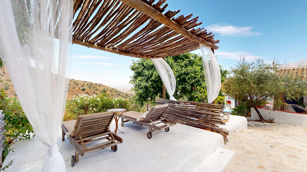 Nestled in the hills of Arenas, Málaga, this enchanting cortijo is more than just a home it's a Mediterranean haven full of character, peace, and possibility. Divided into three separate apartments, its perfectly suited for use as a charming B&B or a spacious family retreat, offering flexibility, comfort, and soul. The main apartment features two bedrooms and two stylish bathrooms, each with walk-in showers and carefully chosen details like marble vanities and patterned tiles. The open-plan living area exudes warmth, with terracotta floors, a soft grey sectional sofa, rattan accents, and a sparkling crystal chandelier. The kitchen is both beautiful and practical, with white cabinetry, colorful tiles, and modern appliances including a dishwasher and oven. The second apartment is a cozy, light-filled one-bedroom retreat. Though compact, it offers everything you need a small kitchenette, a chic bathroom with a tropical-leaf tiled shower, and elegant touches like chandeliers and decorative mirrors. Rattan, terracotta, and woven details bring warmth and texture to every corner. The third apartment offers a thoughtful layout with a bedroom, bathroom, office, kitchen, and living areas. Whitewashed walls, a fireplace, and large windows give it a bright, open feel, while red kitchen cabinets and rustic furnishings add a splash of personality. Every room is adorned with artistic elements, unique lighting, and handcrafted decor. But its the outdoor space that truly makes this property magical. The cortijo is surrounded by breathtaking mountain views, and the grounds are filled with charm natural stone flooring, shady terraces, tucked-away seating nooks, a daybed for lazy afternoons, and turquoise water shimmering in the pool. The covered outdoor kitchen is a highlight in itself, with handmade tiles and a handcrafted worktop that speaks to the care and love poured into every detail of this home. Every corner of this cortijo is full of character from artistic wall hangings and handmade lighting to the sense of calm that wraps around you the moment you arrive. Whether youre seeking a peaceful personal retreat or ready to welcome guests to a special B&B, this Andalusian gem is the perfect getaway. We are pleased to be able to present this dream property to you soon, either personally or via virtual viewing. Because this world is unique - just like our Axarquía. In Andalusia. On the Costa del Sol. Here, on the sunny side of life...