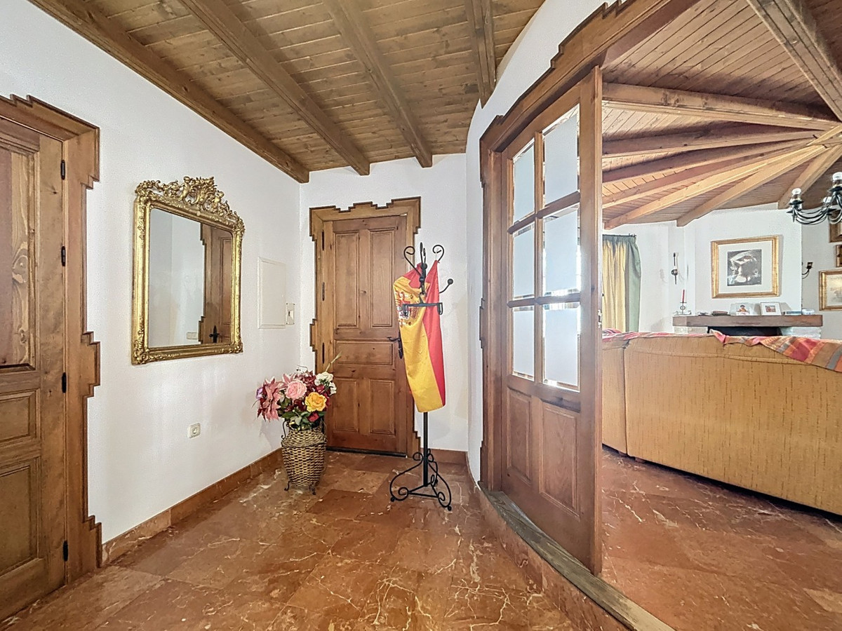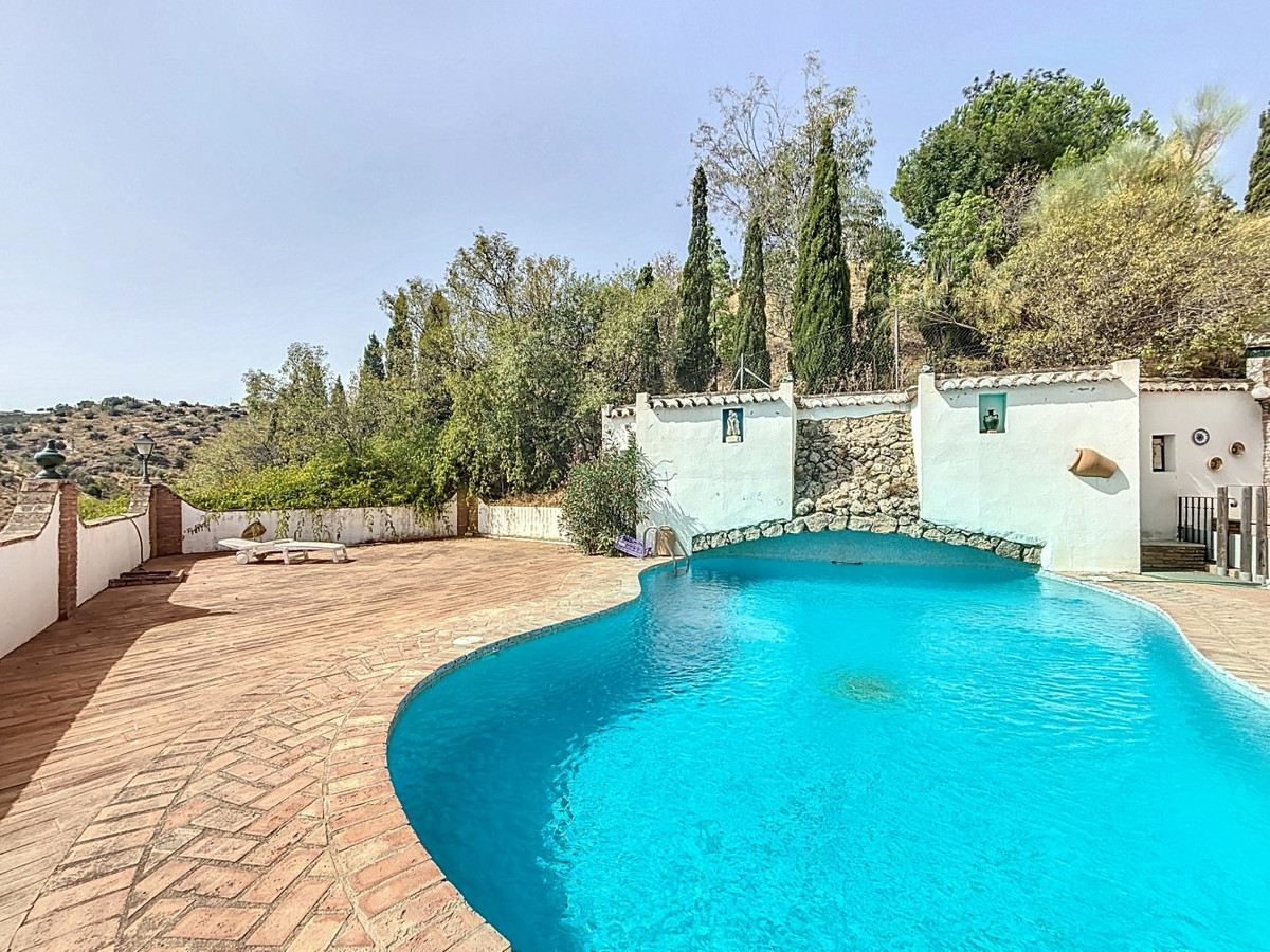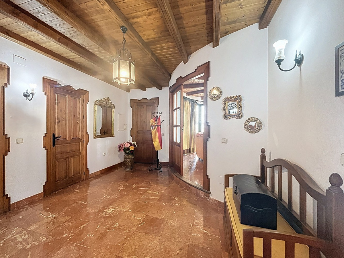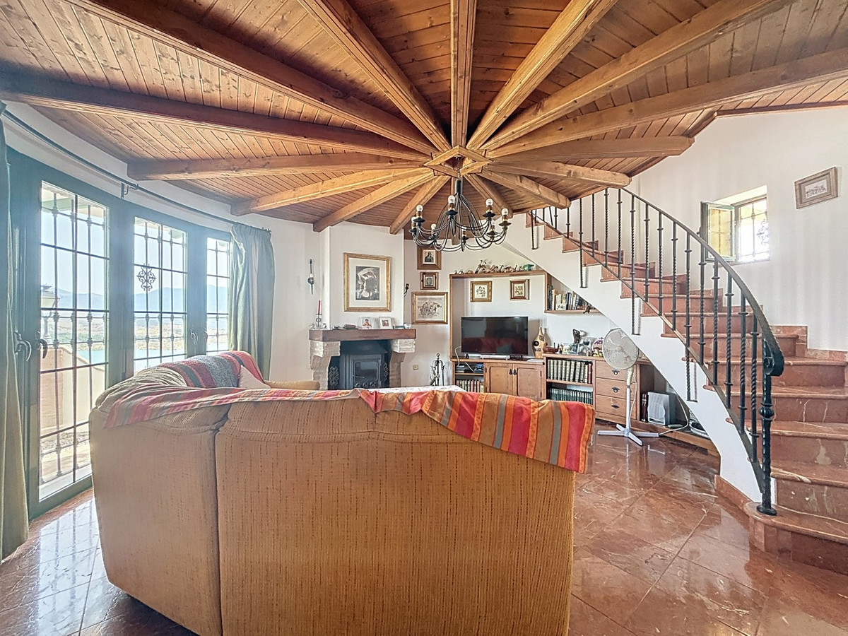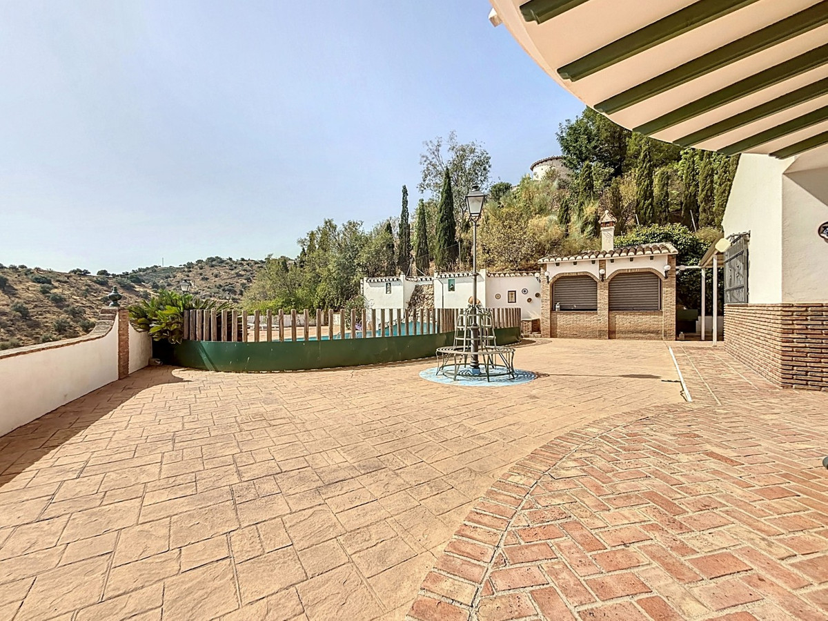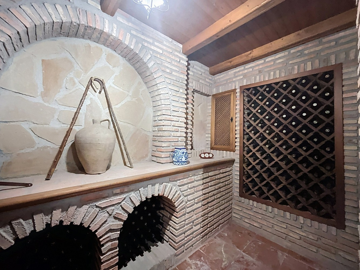 This charming villa in Los Romanes, Málaga, perfectly combines traditional Spanish architecture with modern comfort. The main house features 4 bedrooms, including a spacious master suite, 3 full bathrooms, a guest toilet, a laundry room, and a wine cellar in the basementideal for wine lovers. The living areas are characterized by wooden beam ceilings that add warmth and character. The main living room stands out with its striking sun-patterned wooden ceiling and a large wrought-iron chandelier. A fireplace and comfortable furnishings create a cozy atmosphere. Large windows and French doors flood the space with natural light and offer beautiful views of Lake Viñuela and the surrounding nature. The property also includes a separate guest apartment with 2 bedrooms, a bathroom, and a cozy open-plan living-dining area with a kitchenideal for visitors or additional accommodation. Outside, the villa boasts a large plot with a private pool, an outdoor kitchen with barbecue, a covered terrace, a pavilion, two garages, and two storage rooms with the potential to be converted into another apartment. Additionally, the property has its own well and a water cistern in one of the garages, ensuring a reliable water supply year-round. We are pleased to be able to present this dream property to you soon, either personally or via virtual viewing. Because this world is unique - just like our Axarquía. In Andalusia. On the Costa del Sol. Here, on the sunny side of life...