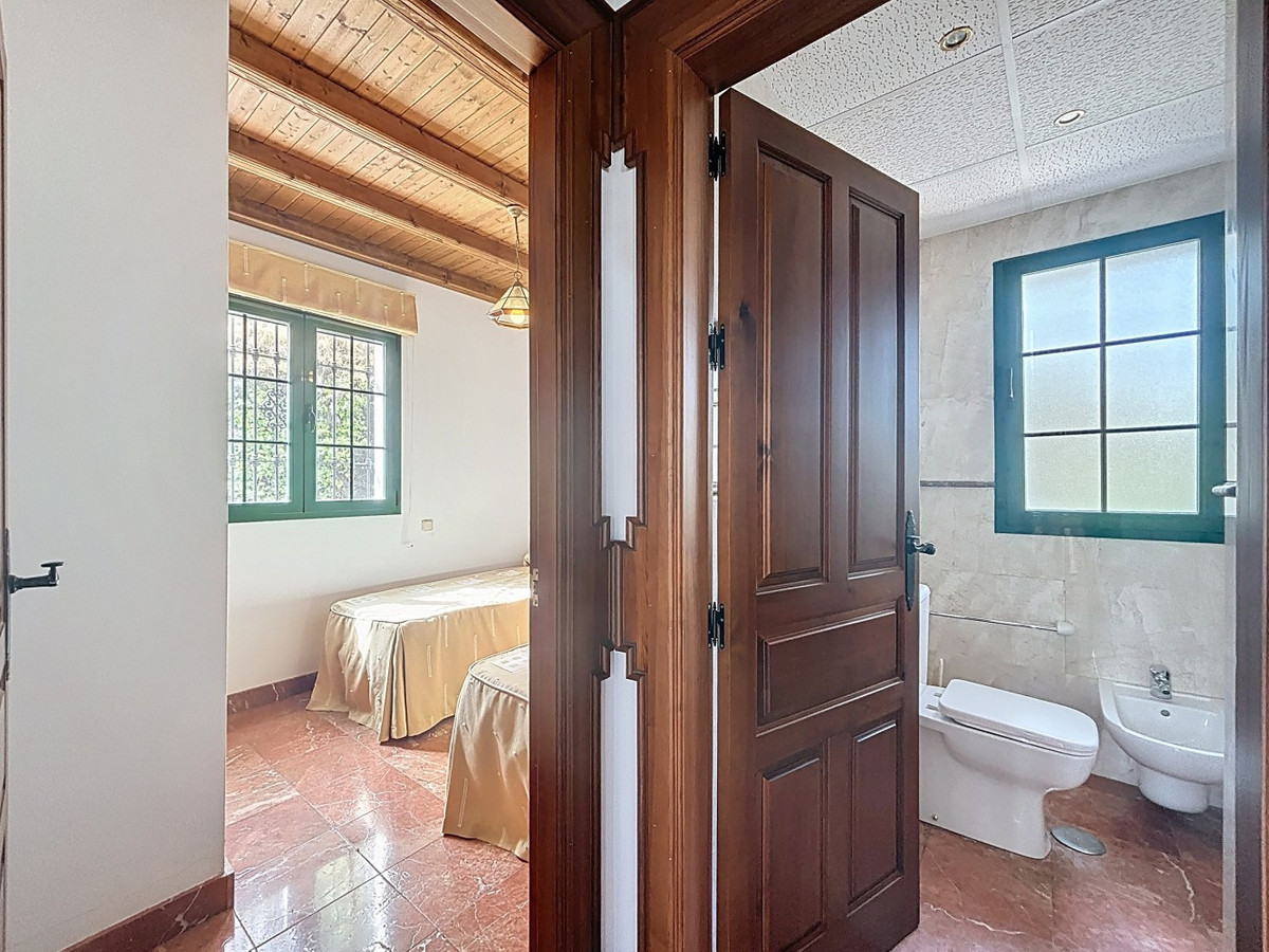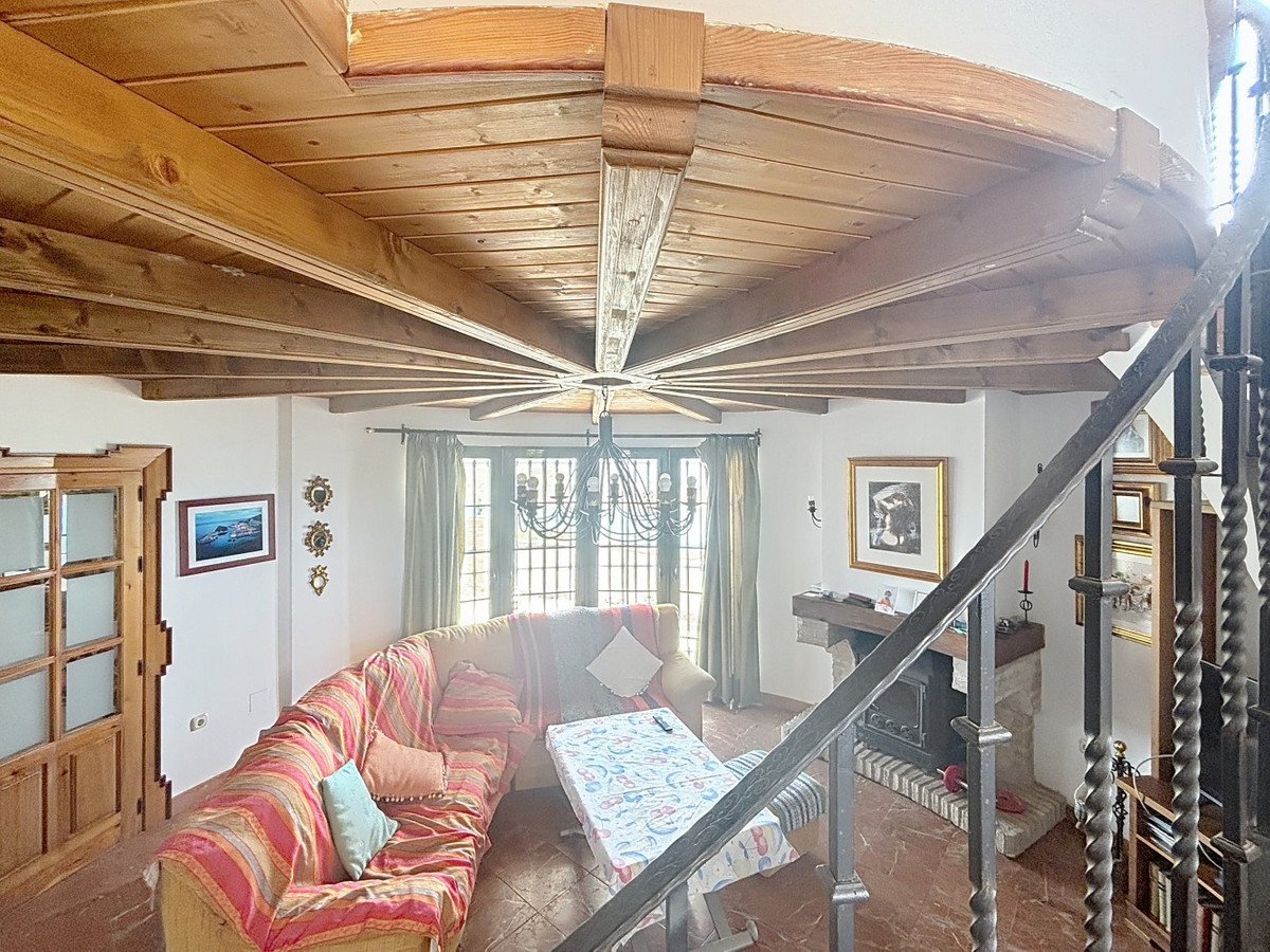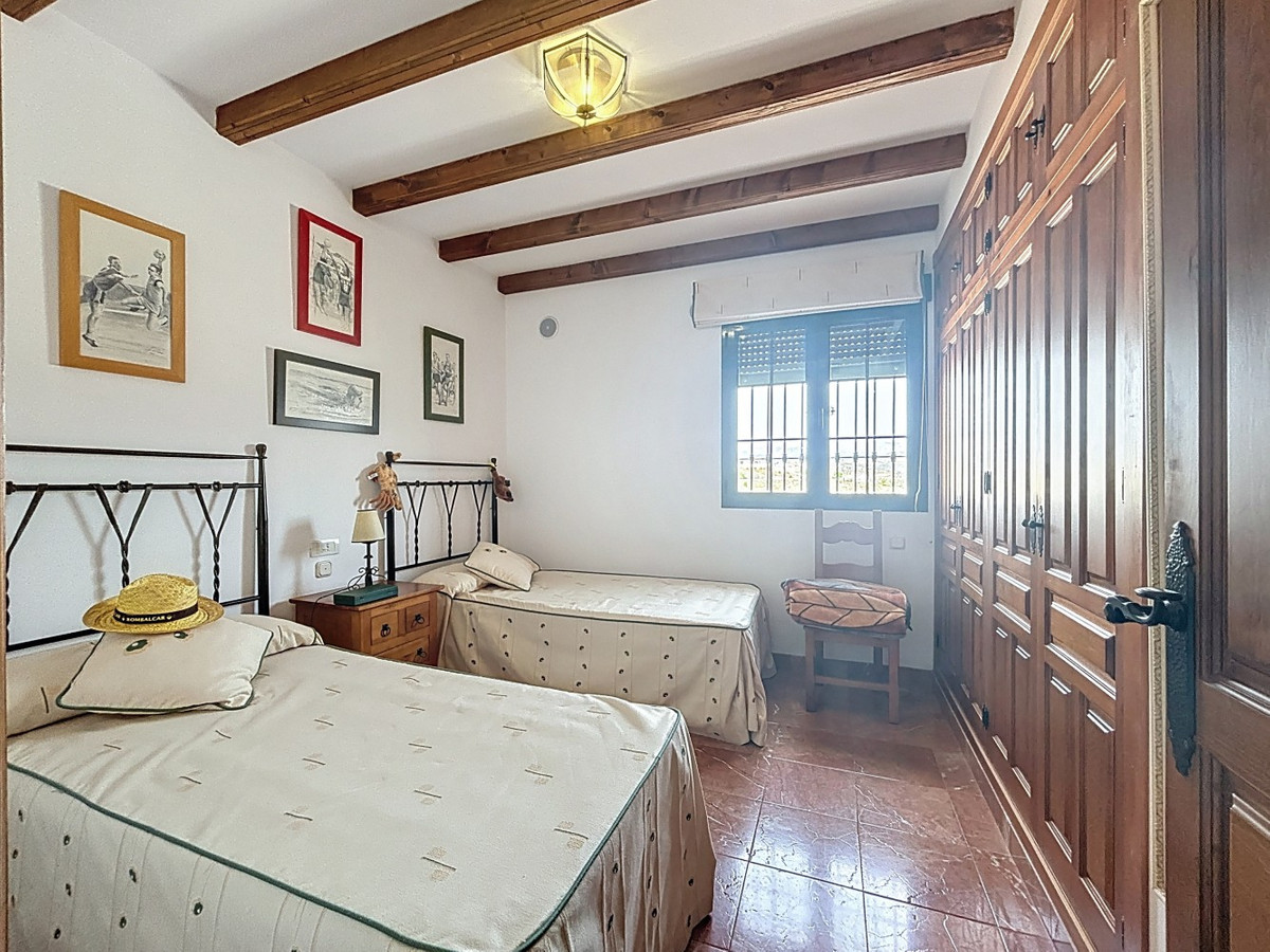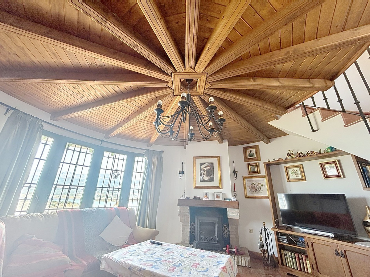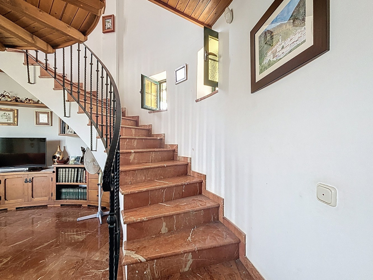 This charming villa in Los Romanes, Málaga, perfectly combines traditional Spanish architecture with modern comfort. The main house features 4 bedrooms, including a spacious master suite, 3 full bathrooms, a guest toilet, a laundry room, and a wine cellar in the basementideal for wine lovers. The living areas are characterized by wooden beam ceilings that add warmth and character. The main living room stands out with its striking sun-patterned wooden ceiling and a large wrought-iron chandelier. A fireplace and comfortable furnishings create a cozy atmosphere. Large windows and French doors flood the space with natural light and offer beautiful views of Lake Viñuela and the surrounding nature. The property also includes a separate guest apartment with 2 bedrooms, a bathroom, and a cozy open-plan living-dining area with a kitchenideal for visitors or additional accommodation. Outside, the villa boasts a large plot with a private pool, an outdoor kitchen with barbecue, a covered terrace, a pavilion, two garages, and two storage rooms with the potential to be converted into another apartment. Additionally, the property has its own well and a water cistern in one of the garages, ensuring a reliable water supply year-round. We are pleased to be able to present this dream property to you soon, either personally or via virtual viewing. Because this world is unique - just like our Axarquía. In Andalusia. On the Costa del Sol. Here, on the sunny side of life...