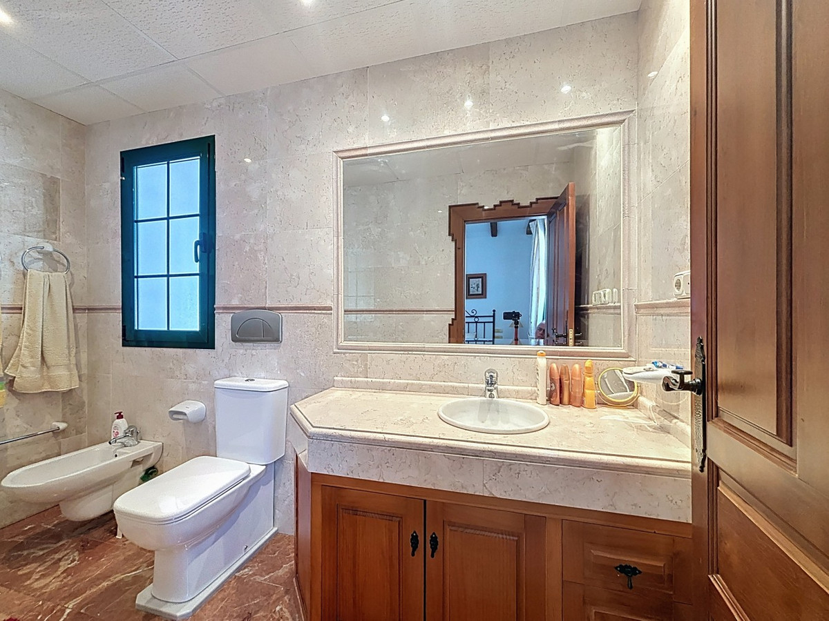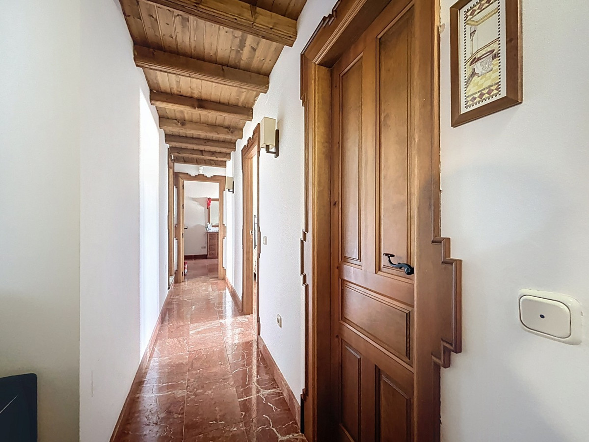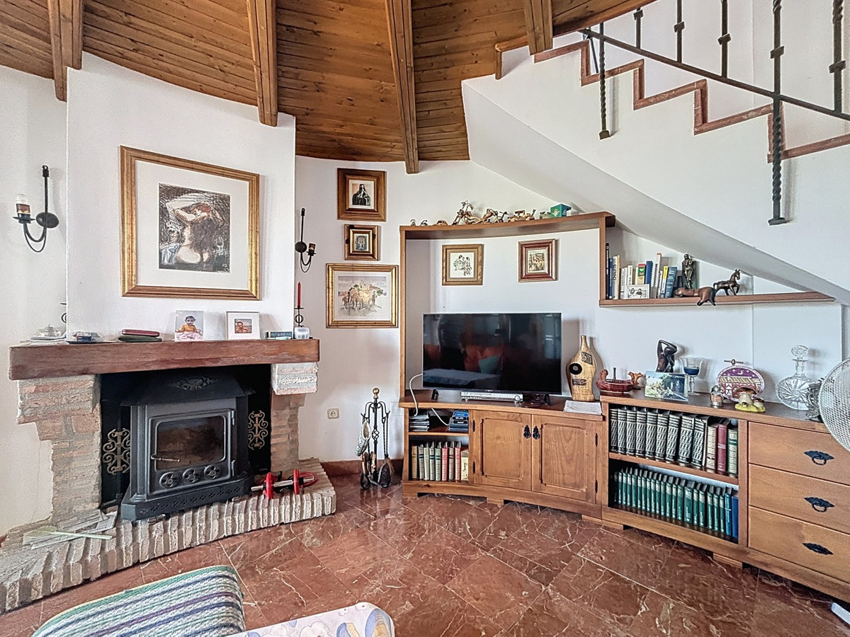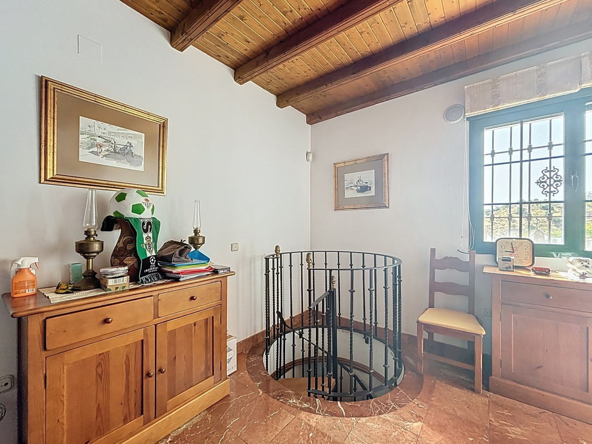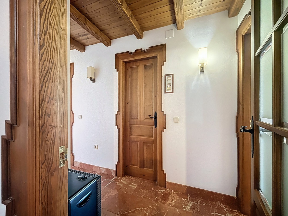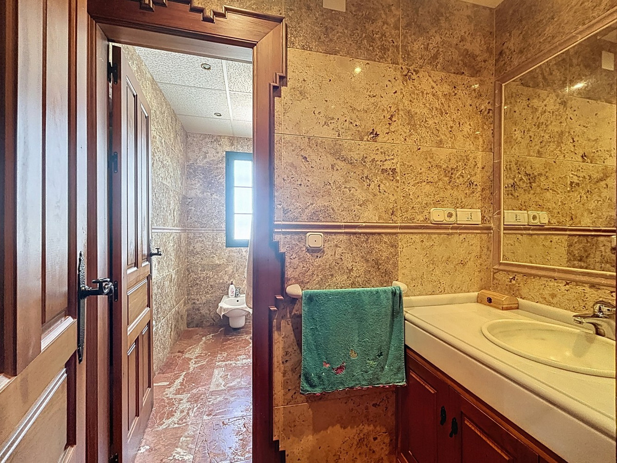 This charming villa in Los Romanes, Málaga, perfectly combines traditional Spanish architecture with modern comfort. The main house features 4 bedrooms, including a spacious master suite, 3 full bathrooms, a guest toilet, a laundry room, and a wine cellar in the basementideal for wine lovers. The living areas are characterized by wooden beam ceilings that add warmth and character. The main living room stands out with its striking sun-patterned wooden ceiling and a large wrought-iron chandelier. A fireplace and comfortable furnishings create a cozy atmosphere. Large windows and French doors flood the space with natural light and offer beautiful views of Lake Viñuela and the surrounding nature. The property also includes a separate guest apartment with 2 bedrooms, a bathroom, and a cozy open-plan living-dining area with a kitchenideal for visitors or additional accommodation. Outside, the villa boasts a large plot with a private pool, an outdoor kitchen with barbecue, a covered terrace, a pavilion, two garages, and two storage rooms with the potential to be converted into another apartment. Additionally, the property has its own well and a water cistern in one of the garages, ensuring a reliable water supply year-round. We are pleased to be able to present this dream property to you soon, either personally or via virtual viewing. Because this world is unique - just like our Axarquía. In Andalusia. On the Costa del Sol. Here, on the sunny side of life...