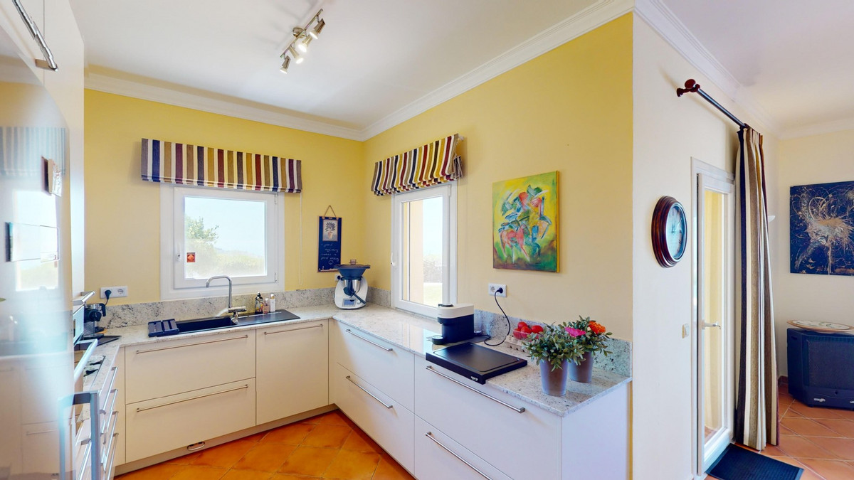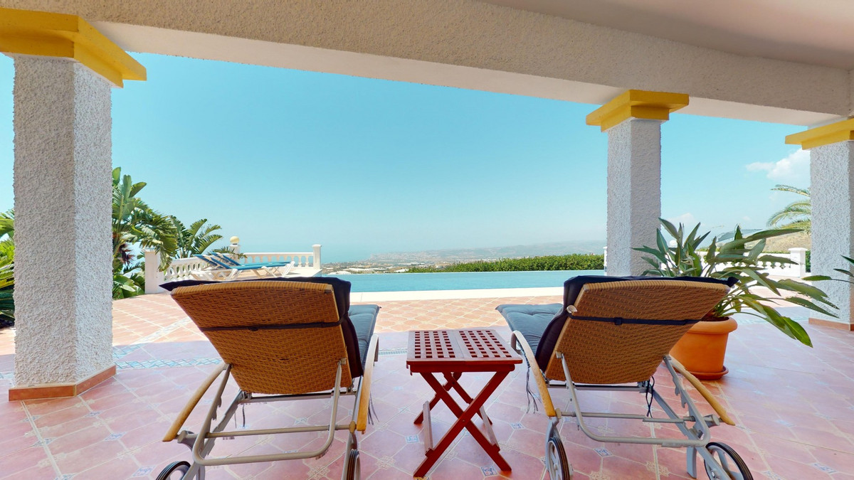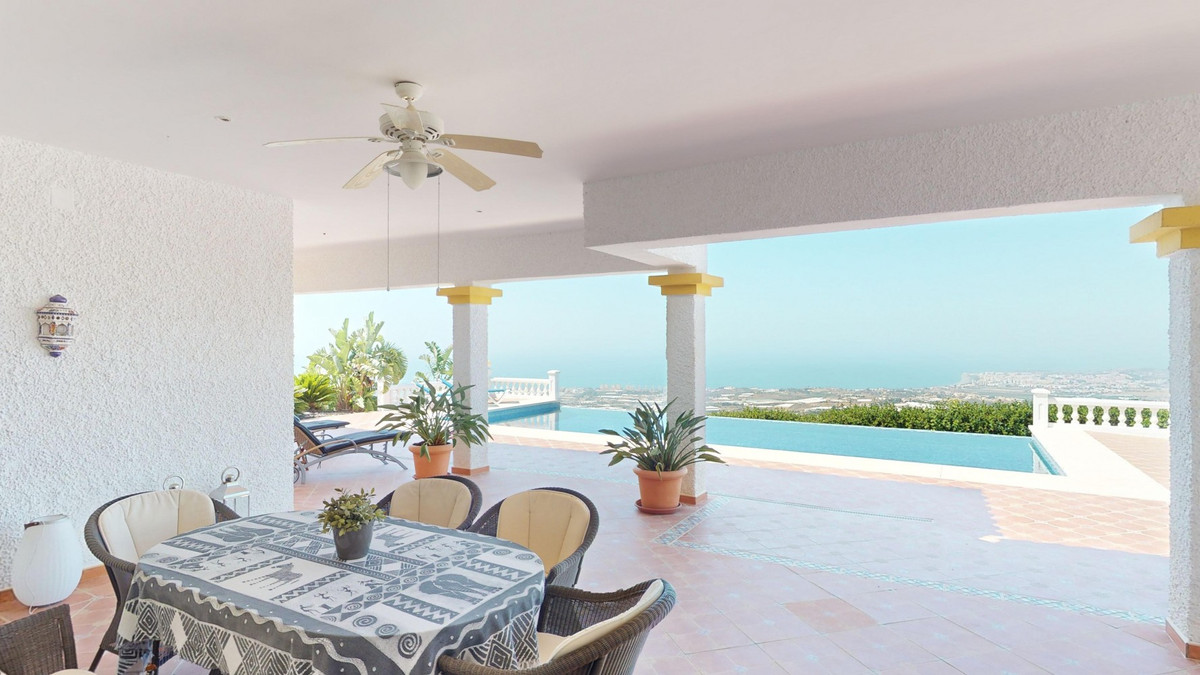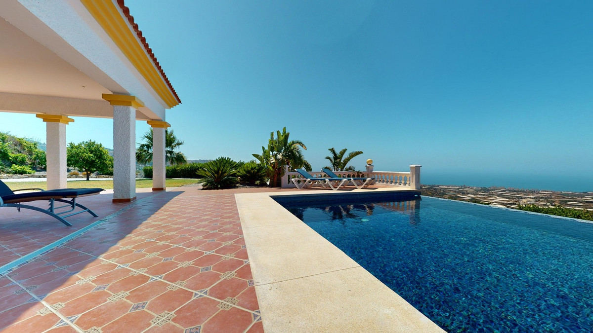 For sale is a breathtaking villa located in the picturesque area of Algarrobo, fulfilling all your desires and expectations for a luxurious home. This fantastic property not only impresses with its unparalleled sea views but also features an infinity pool that seamlessly merges with the horizon, giving you the feeling of blending into the sea. The villa boasts three spacious bedrooms, each stylishly furnished and equipped with its own en-suite bathroom, ensuring the highest level of comfort and privacy. The open-plan living and dining area with a modern, fully equipped kitchen offers ample space for social evenings with family and friends. Large windows let in plenty of natural light and provide stunning views of the sparkling sea. Underfloor heating throughout the house ensures a cozy and comfortable atmosphere year-round. From here, you can access the covered terrace, which offers additional outdoor living space. It is the perfect place to enjoy the breathtaking sunsets and panoramic views of the coastline. The well-maintained garden invites you to relax and offers plenty of space for leisure activities. A separate laundry room with ample storage space adds to the convenience and comfort. Several parking spaces are available for your vehicles, ensuring convenient and secure accommodation. The villa is situated in a quiet and idyllic location, yet it offers excellent access, providing you with quick and easy reach to the amenities of the surrounding area. Here, you will enjoy absolute privacy and relaxation in one of the most beautiful regions of the Costa del Sol. This property stands out for its highest construction quality and exclusive features. It is the perfect choice for those who seek something special and appreciate a luxurious lifestyle in a unique setting. Let yourself be enchanted by this dream villa and experience the best that life has to offer! We are pleased to be able to present this dream property to you soon, either personally or via virtual viewing. Because this world is unique - just like our Axarquía. In Andalusia. On the Costa del Sol. Here, on the sunny side of life...