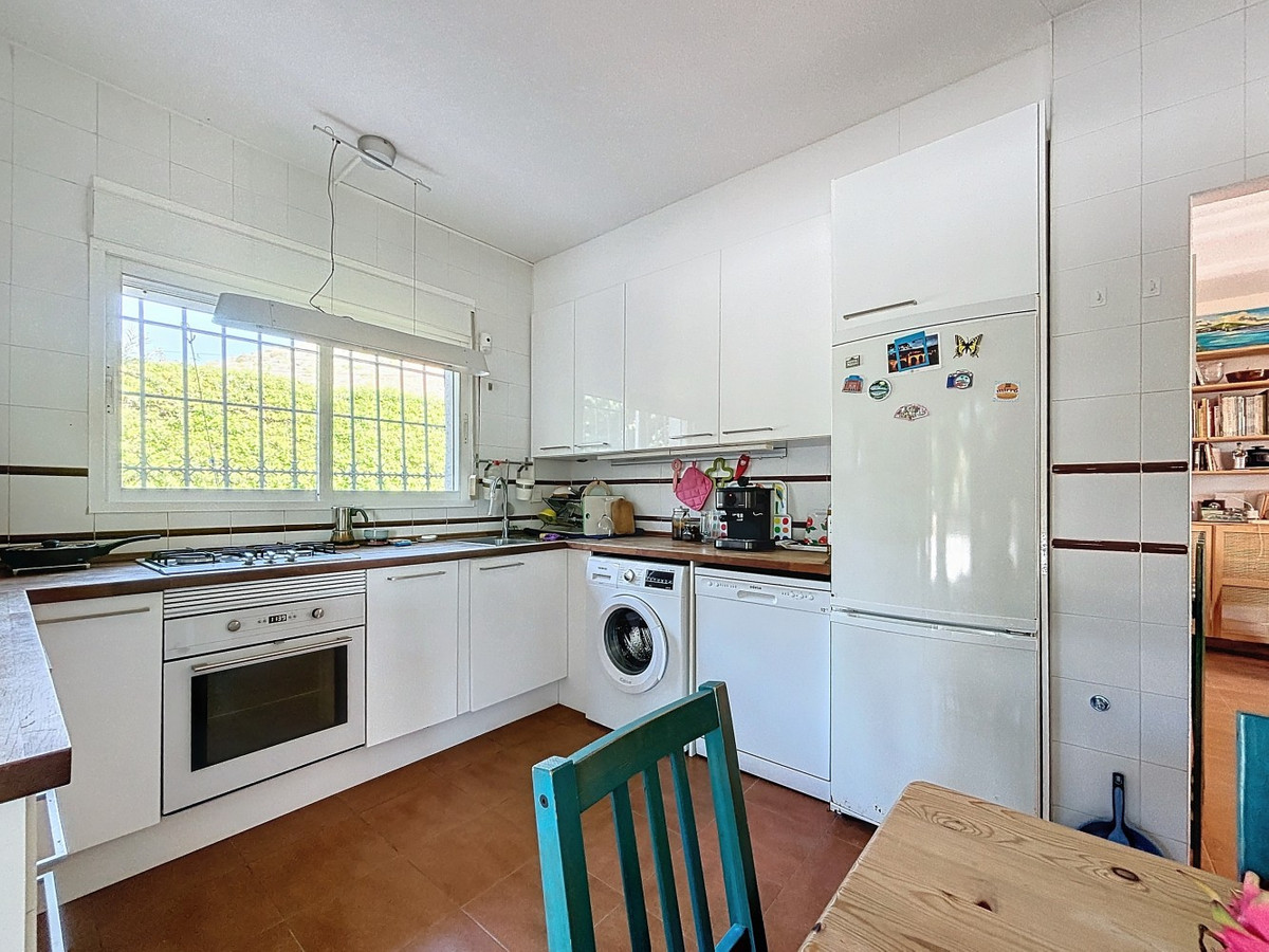 This exclusive villa in Almayate offers a rare opportunity to live directly by the sea. With a living area of 129 m2 on a generous 682 m2 plot, it combines modern comfort with a unique location. Its perfect south-facing orientation ensures sun-filled rooms and a pleasant climate all year round. The property boasts direct access to the beach, where you can enjoy stunning views of the Mediterranean and the tranquility of the coastal surroundings. The villa features energy-efficient solar panels, reducing both environmental impact and energy costs. Inside, there are three spacious bedrooms, two of which include built-in wardrobes for added convenience. A modern bathroom and an additional guest toilet offer functionality and comfort. The fully equipped kitchen is perfect for those who enjoy cooking in a contemporary space, while the large living and dining area with a fireplace creates a warm and inviting ambiance, ideal for relaxing evenings. Outside, the beautifully maintained garden provides privacy and serenity, while the barbecue area is perfect for hosting gatherings with family and friends. Additional storage is available in a separate utility room, and the electric gate gives access to ample parking for multiple vehicles. This villa is the ideal retreat for anyone seeking the perfect blend of beachfront living and modern amenities in a peaceful environment. A true gem in a prime first-line beach location, offering the best of coastal living. We are pleased to be able to present this dream property to you soon, either personally or via virtual viewing. Because this world is unique - just like our Axarquía. In Andalusia. On the Costa del Sol. Here, on the sunny side of life...