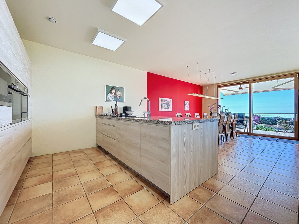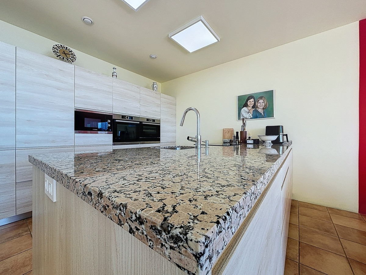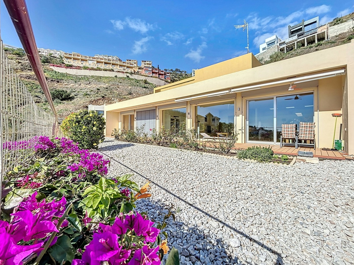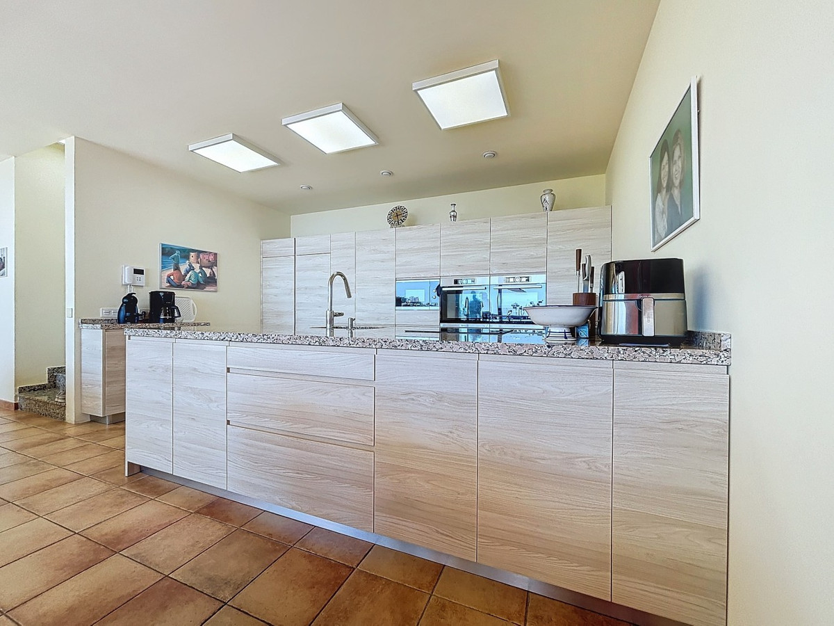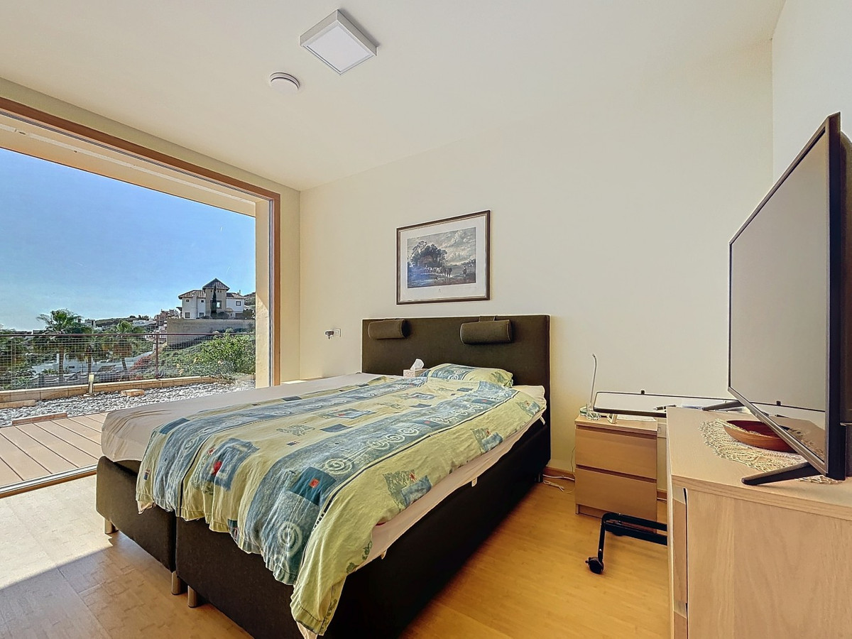 This luxurious Mediterranean villa in Torrox, Málaga, is spread across two floors and offers breathtaking sea views. The property is designed with sustainability in mind and is a true zero-energy home, maintaining a comfortable temperature year-round thanks to its high-quality insulation and comfort ventilation system. Solar panels further enhance its energy efficiency. The main floor features an open-plan living area with a sleek and modern kitchen, equipped with light-colored cabinetry and integrated appliances. The spacious living room is bright and airy, seamlessly blending indoor and outdoor spaces through large glass doors that open onto a sun-drenched terrace. This terrace offers stunning panoramic views of the sea and surrounding landscape and includes a private swimming pool, making it an ideal spot for al fresco dining and relaxation. The villa boasts three well-appointed bedrooms, including a master suite with an en-suite bathroom. The additional two bedrooms share a stylishly designed bathroom with contemporary fixtures, such as walk-in showers and floating vanities. An office space with built-in storage provides a dedicated area for work or study. A standout feature of the home is its accessibility. A lift connects both floors, ensuring comfort and convenience for all residents. The villa also includes ample storage solutions, with built-in wardrobes in the bedrooms and additional organized spaces throughout the house. Outside, the landscaped garden enhances the Mediterranean ambiance, offering a serene retreat. A carport provides secure parking. The property sits on two building plots, offering the possibility to construct additional structures if desired. Designed by the current owner, this villa incorporates unique architectural elements and thoughtful details that set it apart. Combining Mediterranean charm with modern sustainability, this home is a perfect sanctuary in the heart of the Costa del Sol. We are pleased to be able to present this dream property to you soon, either personally or via virtual viewing. Because this world is unique - just like our Axarquía. In Andalusia. On the Costa del Sol. Here, on the sunny side of life...