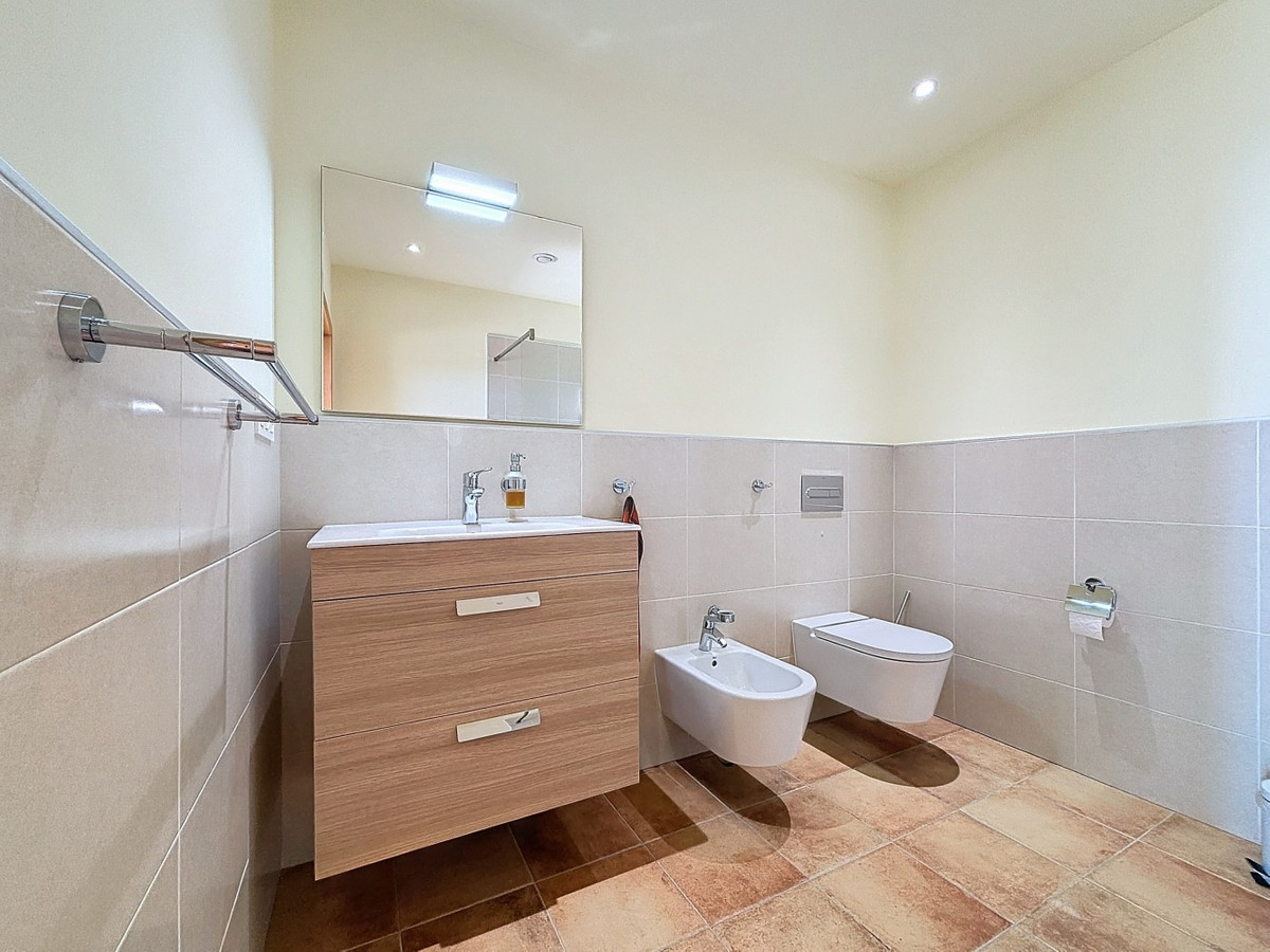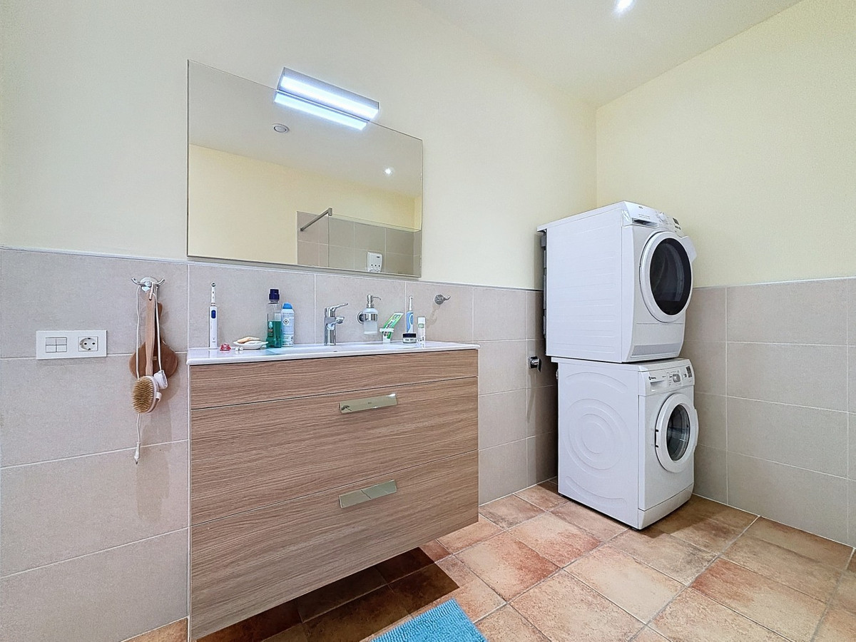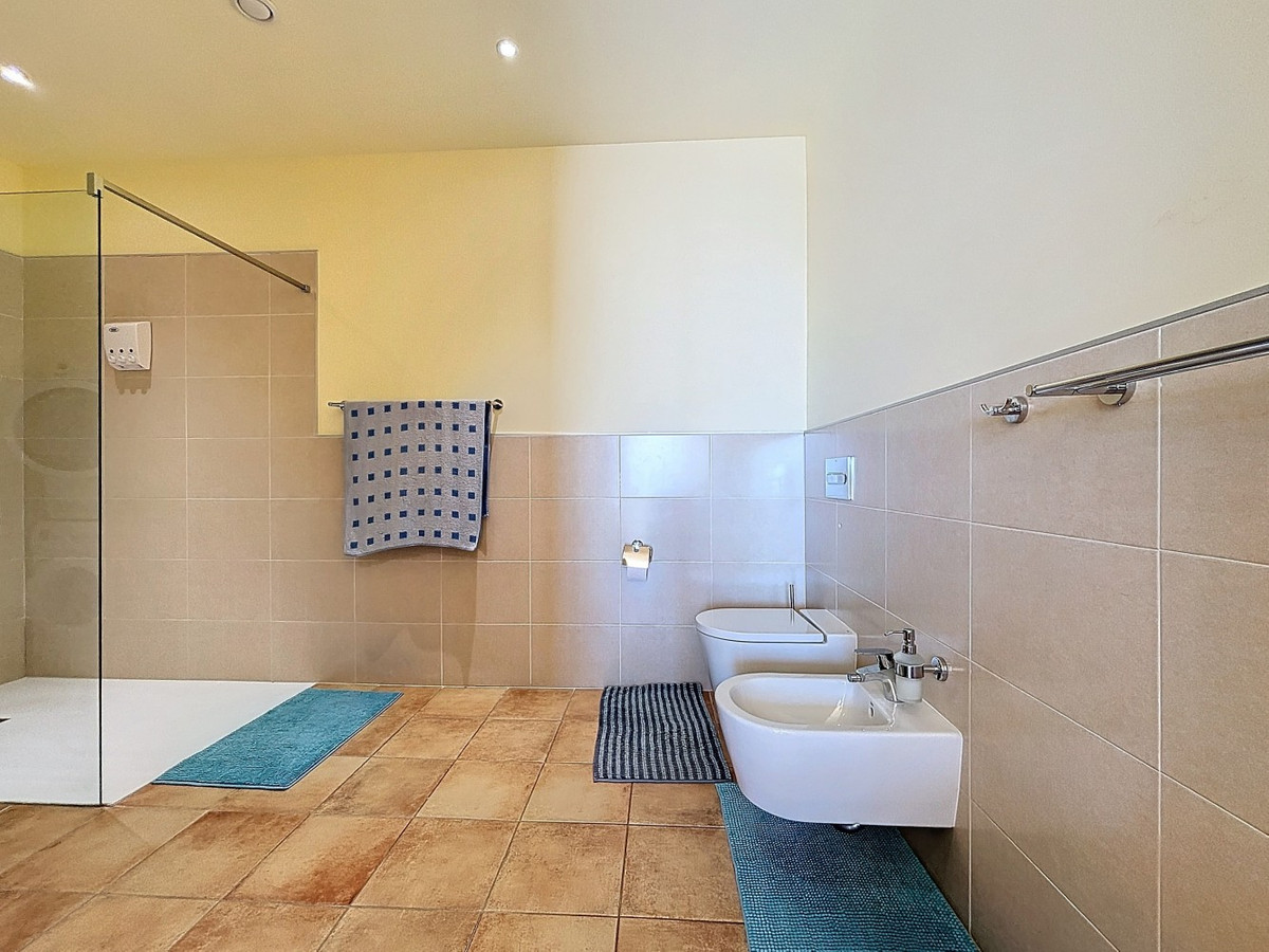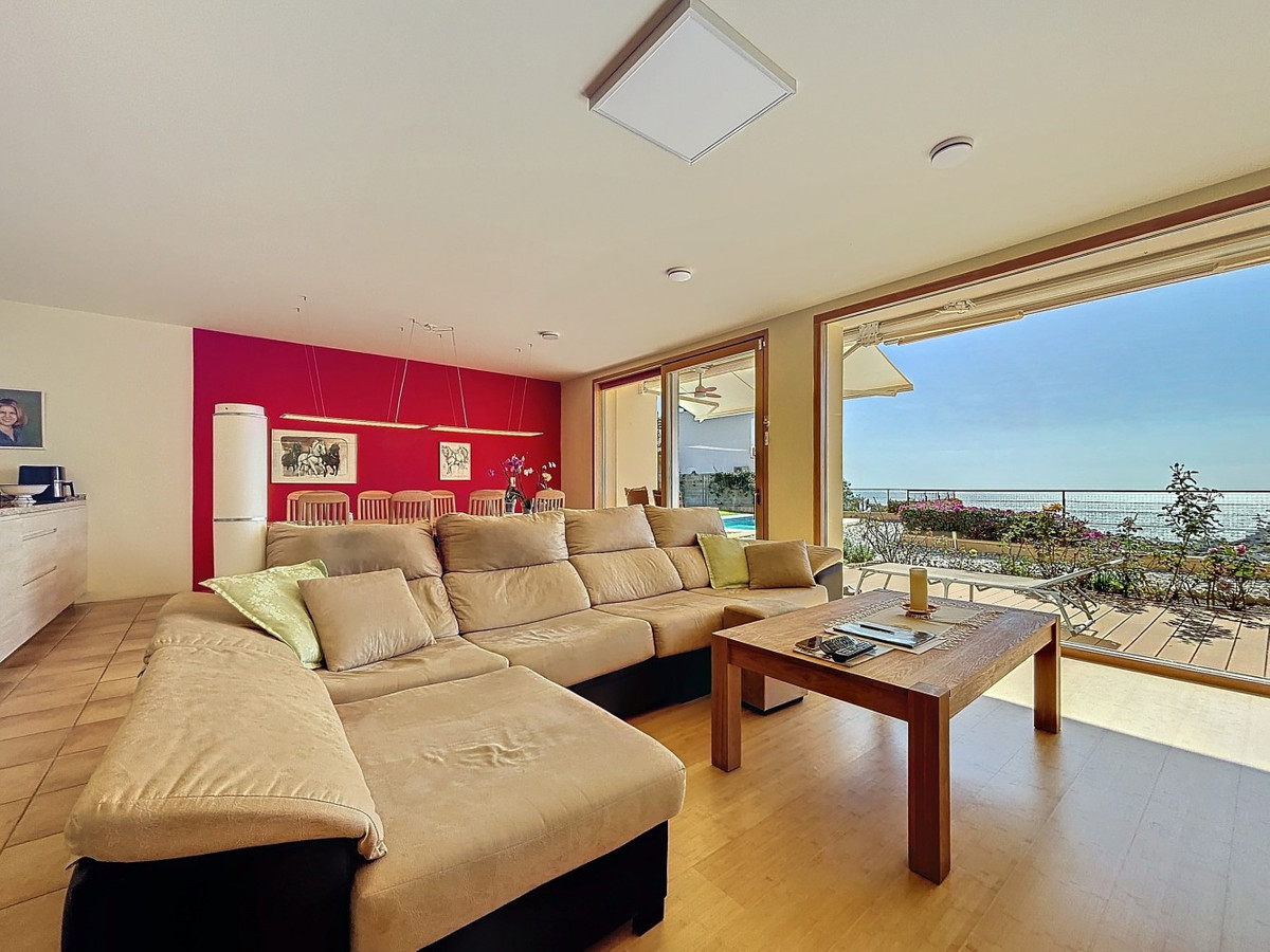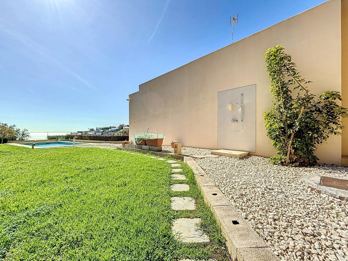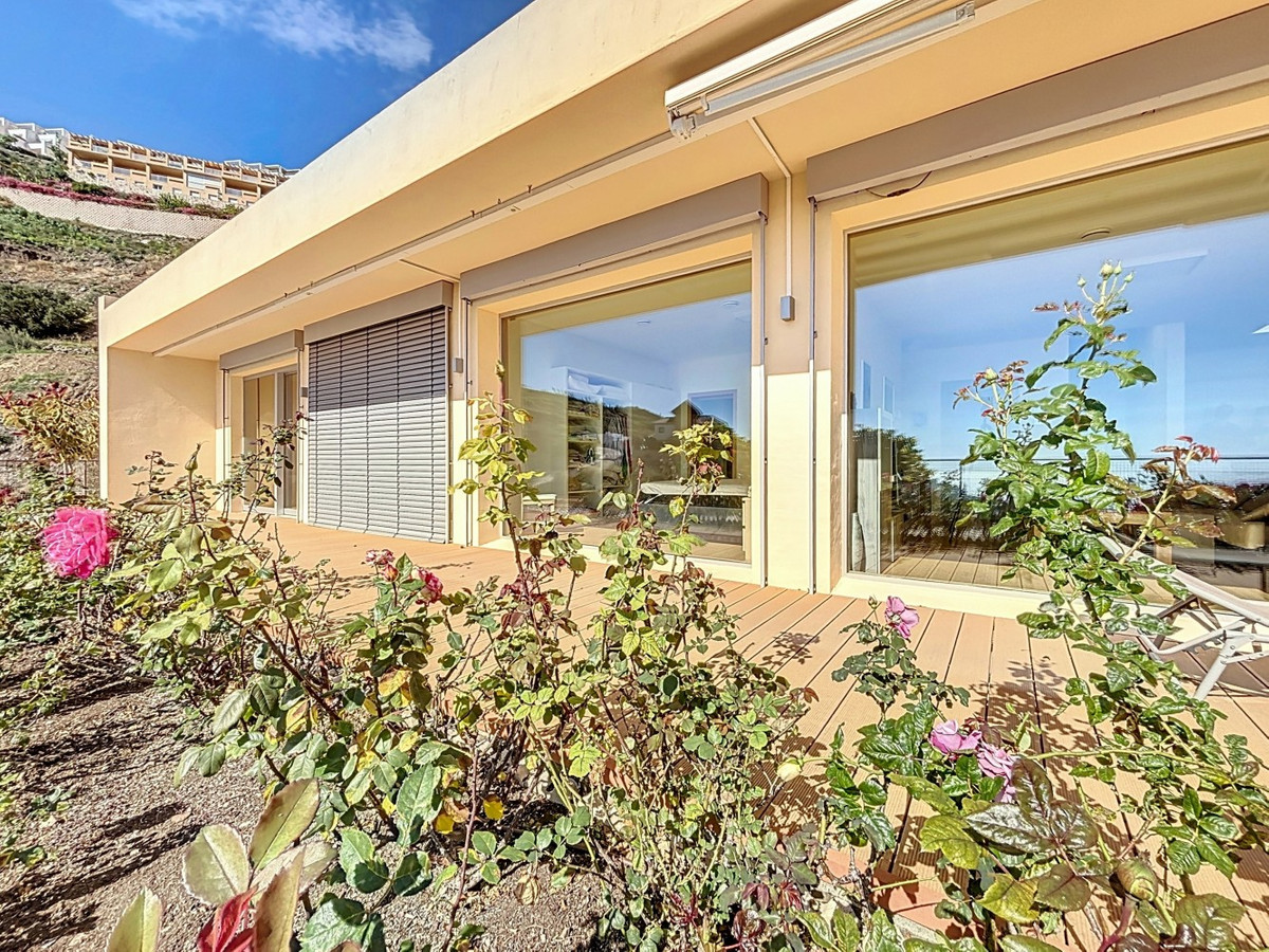 This luxurious Mediterranean villa in Torrox, Málaga, is spread across two floors and offers breathtaking sea views. The property is designed with sustainability in mind and is a true zero-energy home, maintaining a comfortable temperature year-round thanks to its high-quality insulation and comfort ventilation system. Solar panels further enhance its energy efficiency. The main floor features an open-plan living area with a sleek and modern kitchen, equipped with light-colored cabinetry and integrated appliances. The spacious living room is bright and airy, seamlessly blending indoor and outdoor spaces through large glass doors that open onto a sun-drenched terrace. This terrace offers stunning panoramic views of the sea and surrounding landscape and includes a private swimming pool, making it an ideal spot for al fresco dining and relaxation. The villa boasts three well-appointed bedrooms, including a master suite with an en-suite bathroom. The additional two bedrooms share a stylishly designed bathroom with contemporary fixtures, such as walk-in showers and floating vanities. An office space with built-in storage provides a dedicated area for work or study. A standout feature of the home is its accessibility. A lift connects both floors, ensuring comfort and convenience for all residents. The villa also includes ample storage solutions, with built-in wardrobes in the bedrooms and additional organized spaces throughout the house. Outside, the landscaped garden enhances the Mediterranean ambiance, offering a serene retreat. A carport provides secure parking. The property sits on two building plots, offering the possibility to construct additional structures if desired. Designed by the current owner, this villa incorporates unique architectural elements and thoughtful details that set it apart. Combining Mediterranean charm with modern sustainability, this home is a perfect sanctuary in the heart of the Costa del Sol. We are pleased to be able to present this dream property to you soon, either personally or via virtual viewing. Because this world is unique - just like our Axarquía. In Andalusia. On the Costa del Sol. Here, on the sunny side of life...