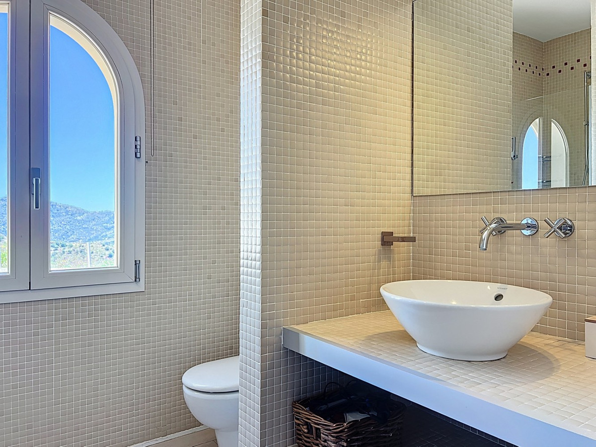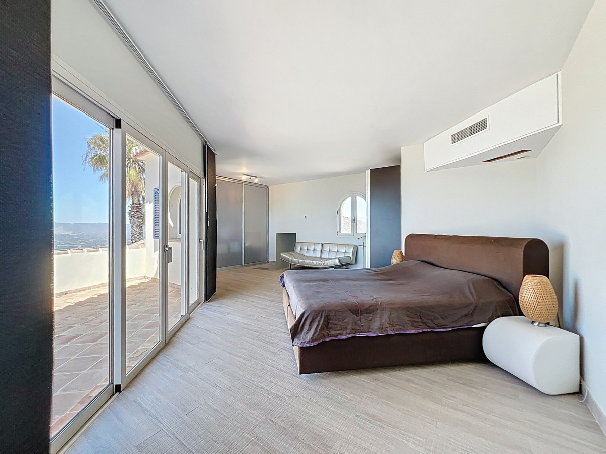 Imagine waking up each day to the soothing embrace of the Mediterranean in this exquisite villa. A true architectural masterpiece, this home offers an unparalleled lifestyle, seamlessly combining spacious interiors with awe-inspiring vistas that stretch all the way to the horizon. The living area welcomes you with an abundance of natural light, thanks to floor-to-ceiling sliding glass doors that perfectly frame the mesmerizing views of the azure sea. The open-plan design creates an ideal flow for both intimate gatherings and grand entertaining, blurring the lines between indoor luxury and outdoor paradise. For the culinary enthusiast, the gourmet kitchen is a dream come true, equipped with state-of-the-art appliances and ample space for creating memorable meals. Dine al fresco on the expansive terrace, where the gentle sea breeze enhances every moment. The lavish master suite, spanning 32.5 m2, offers a tranquil retreat with panoramic ocean views. Start your day in the spa-like bathroom, a true testament to luxury and comfort. The private balcony ideal for sipping morning coffee or enjoying an evening cocktail as you watch the sun dip into the sea. At the outside, the terracotta-tiled outdoor terrace is your personal oasis. Bask in the warm Spanish sun, host unforgettable parties, or simply lose yourself in the mesmerizing views of the coastline. Beyond the beauty, this villa offers a rare opportunity for those looking to start a business, like a B&B. With 4 rentable rooms, each with its own bathroom and entrance, the property has already been successfully operated as a B&B, receiving only glowing reviews. In addition to the rental rooms, theres a private bedroom on the first floor with its own bathroom, and another bedroom with a bathroom in the basement. The fully equipped kitchen inside and the wonderful outdoor kitchen provide all the necessary amenities for running a successful business, while the large underground garage offers plenty of space for storage. Located in Algarrobo, Málaga, this property ensures easy access to world-class amenities, pristine beaches, and rich cultural experiences, all while offering the perfect setting to indulge in Mediterranean living. Whether you're looking for a luxury family home, a business opportunity, or simply a slice of paradise, this villa delivers on every front. This is more than just a home; its a lifestyle. Embrace the pinnacle of Mediterranean living in this extraordinary villayour dream of owning a piece of paradise is now within reach. Dont miss the chance to elevate your life to new heights of luxury, beauty, and opportunity. We are pleased to be able to present this dream property to you soon, either personally or via virtual viewing. Because this world, it is unique - just like our Axarquía. In Andalusia. On the Costa del Sol. Here, on the sunny side of life...