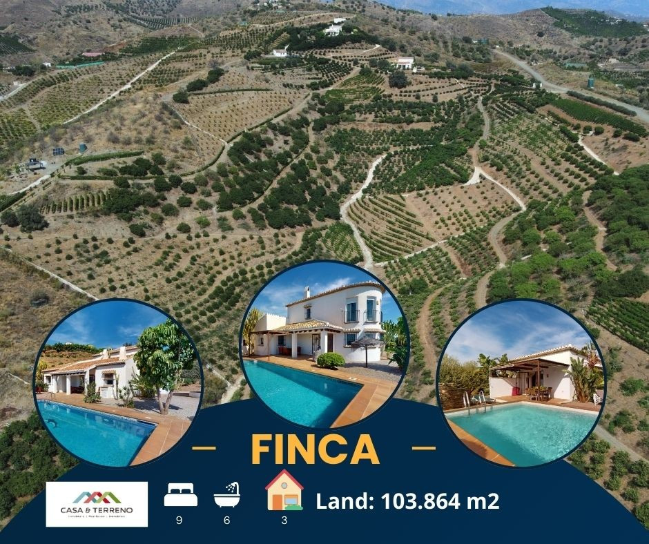 Imagine waking up every morning to the scent of fresh sea air and the gentle rustling of fruit trees. This finca offers you just that a place where you can experience the tranquility of nature while also engaging in meaningful activities. Set on a vast property, there are three charming homes in traditional Andalusian style, each with its own pool and stunning views of the Mediterranean. What makes this finca truly special is the extensive farmland, where 16 different tropical and subtropical crops are cultivated according to Demeter biodynamic standards. From avocados to exotic fruits like passionfruit, finger lime, and Buddhas hand, this certified farm connects you directly with nature and provides a sustainable source of income. The revenue from the farming operation and rental of the three houses ranges between €400,000 and €500,000 annually, offering you a peaceful life with financial security. The main house, "Casa Avocado," spans two floors with three bedrooms, two bathrooms, an open kitchen, and a living and dining area. On the terrace and by the pool, you can savor the sunsets over the sea a daily highlight. Below it lies "Casa Mango," also with three bedrooms, two bathrooms, a spacious living area, and kitchen. Here too, a terrace and private pool invite relaxation, with breathtaking sea views to help you leave everyday worries behind. The third house, "Casa Lichi," is a single-story retreat with three bedrooms, two bathrooms, and an open living and dining area with a kitchen. Its the perfect place to welcome guests or find your own personal sanctuary. It also offers a pool. This finca offers you the opportunity to slow down, reconnect with nature, and immerse yourself in a fulfilling project. The Demeter-certified farming can continue with ease, and rental licenses for all three houses are already in place, allowing you to start right away. A life full of possibilities, without the pressures of the daily grind thats what awaits you here. We are pleased to be able to present this dream property to you soon, either personally or via virtual viewing. Because this world is unique - just like our Axarquía. In Andalusia. On the Costa del Sol. Here, on the sunny side of life...