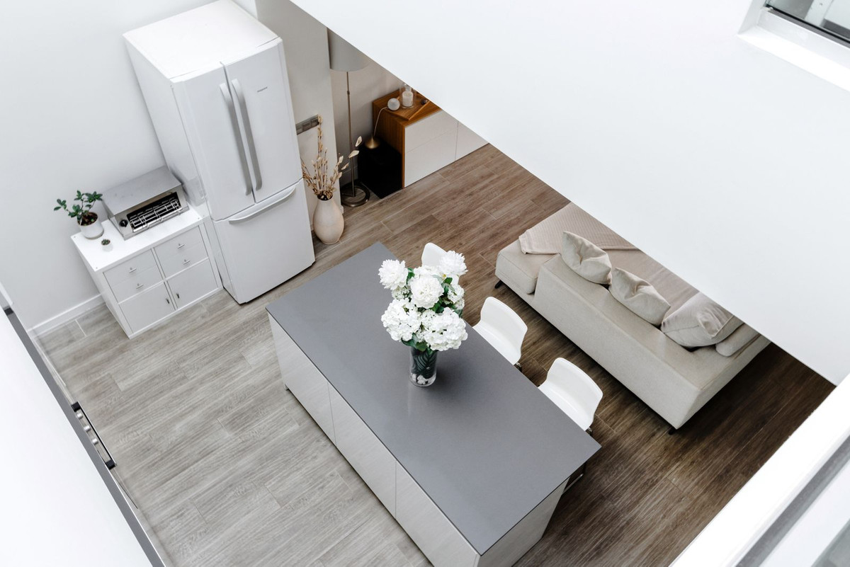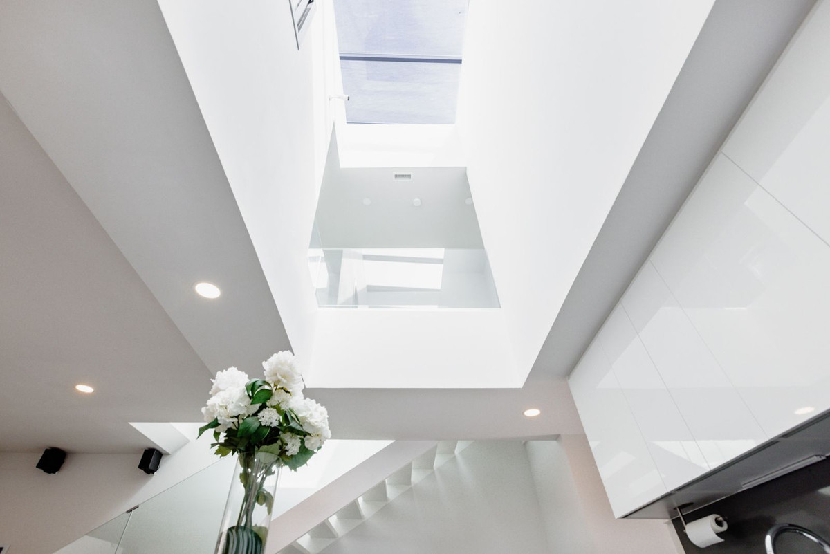 The property is distributed across three levels, with bright, open living spaces that make the most of natural light. The main floor features a contemporary kitchen enhanced by a skylight, opening onto a spacious living and dining area with direct access to private terraces. With four bedrooms and three bathrooms, all with natural light, the home is ideal for families, guests, or those seeking additional workspace. A generous multi-purpose basement connects directly to the underground parking, adding versatility and convenience.
