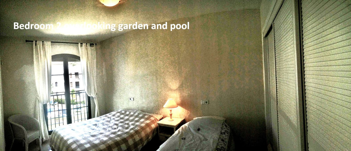 Main bedroom opens out onto the lower terrace looking over the golf course while the other 2 rooms open with balconies. open to the phase 2 swimming pool.