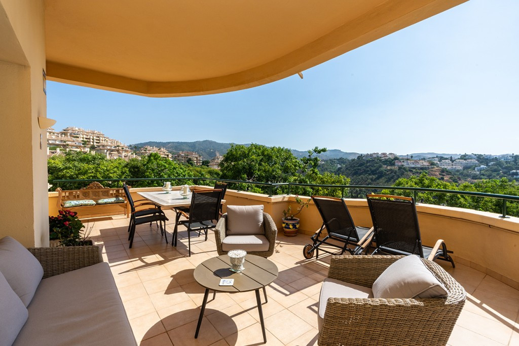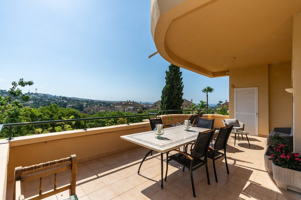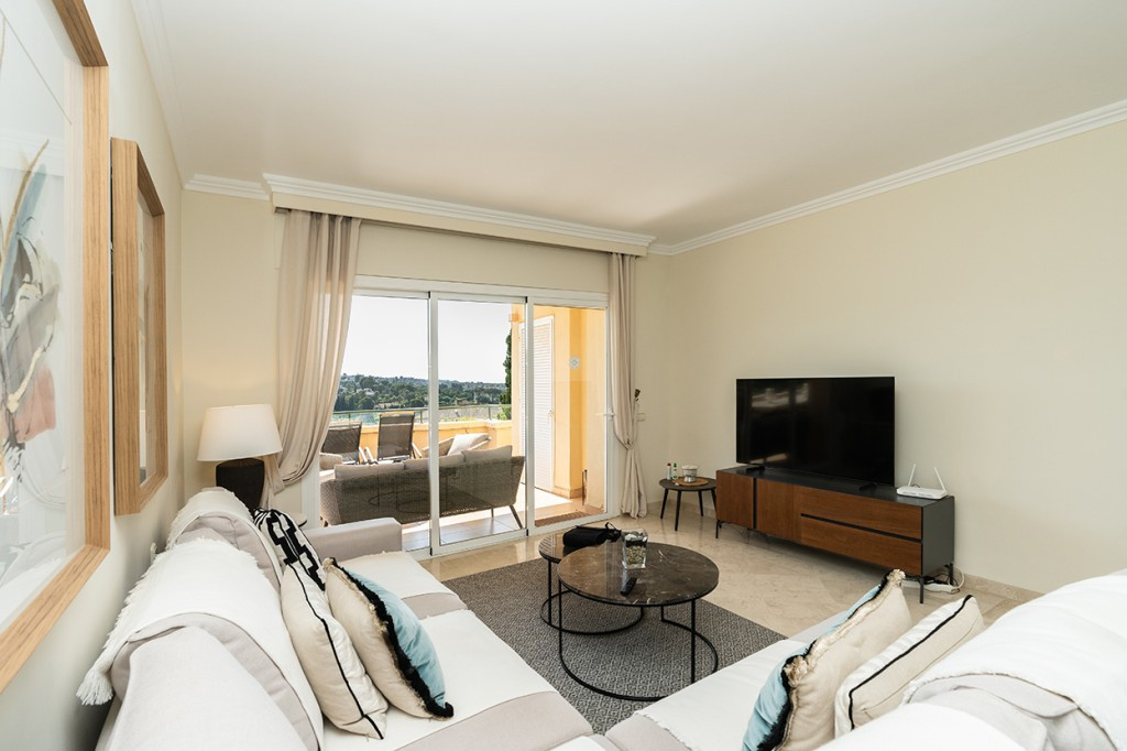 Beautiful 3-bedroom apartment in a prestigious Elviria complex, ideally located next to Greenlife Golf and close to all amenities and the beach. Enjoy lovely sea, coastal, and panoramic green views from this east and west-facing home. Features include a fully equipped kitchen, private and community parking, a stunning communal pool, and lush gardens. A perfect blend of comfort and location.