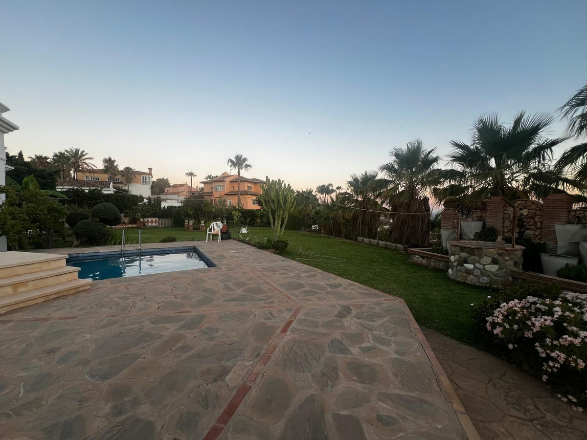On the main floor there is a large covered porch with columns and balustrades, perfect as a chill-out area or summer dining space. On the upper floor, a spacious wrap-around terrace with pergolas offers various corners to relax and enjoy the Costa del Sol climate.