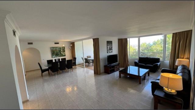 Entrance hall with guest cloakroom leading to an enormous lounge with dining area leading onto the terrace, very spacious, fully fitted luxury kitchen, main bedroom suite with access to the terrace, fitted dressing area leading to a sumptuous bathroom with all round shower jets, jacuzzi bath, and a purpose built sauna, two further double bedrooms both with en-suite bathrooms and guest toilet. A communal swimming pool for the use of this apartment and only four others.