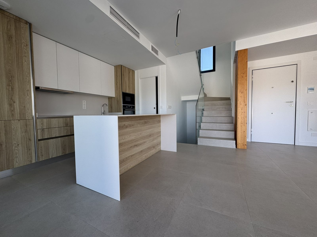 Brand-new contemporary 4-bedroom semi-detached townhouse located in the exclusive Atalaya Golf area, perfectly positioned between Marbella and Estepona. This never-before-lived-in home features a private driveway with parking, a stunning open-plan living space with a fully equipped modern kitchen, three bedrooms and two bathrooms on the main levels, plus an additional en-suite bedroom in the basement. The bright and spacious living room opens onto a west-facing terrace and private garden, ideal for enjoying the afternoon sun. A spectacular rooftop solarium offers breathtaking mountain views, creating the perfect setting for entertaining or relaxing. Within walking distance to local amenities, this property represents a unique opportunity to own a stylish modern home in one of the Costa del Sol’s most sought-after locations.