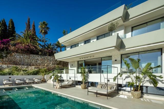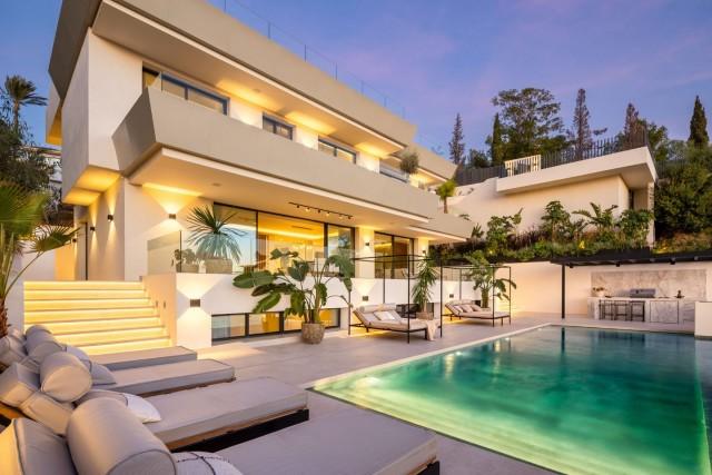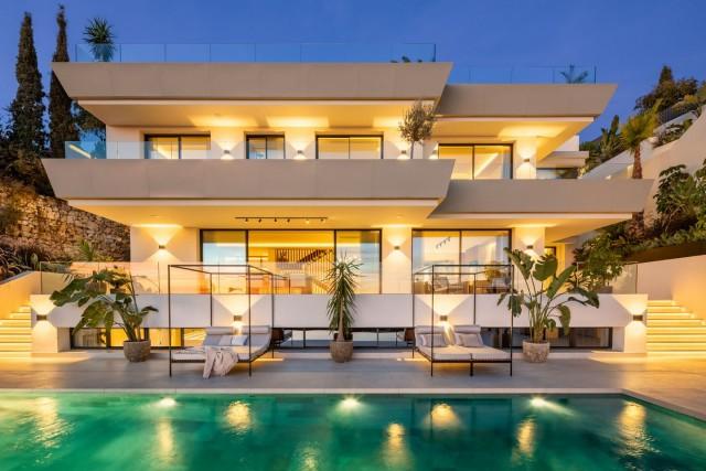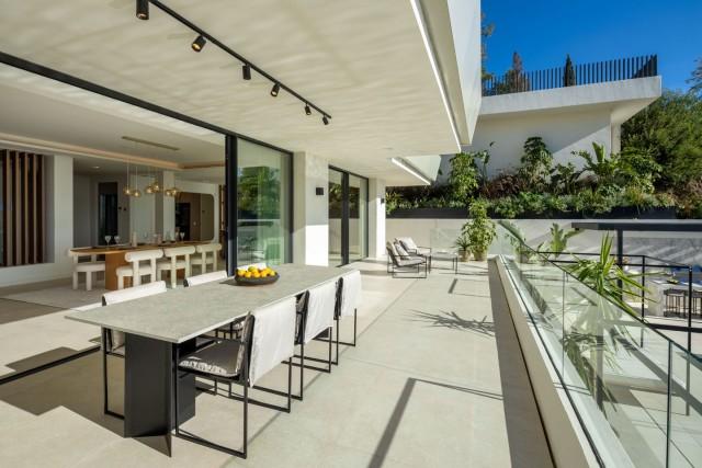 This spectacular newly built villa, located in the prestigious Elviria area of ​​Marbella East, stands out for its contemporary architecture, designed by Francisco Martínez Galván and developed by Homerun Developments. With 454 m² of interior space and 621 m² of terraces, the property offers a modern living concept that integrates luxury, spaciousness, and functionality. Distributed over three floors, it features five en-suite bedrooms, four additional bathrooms, and two guest toilets, all finished with high-quality materials and premium equipment from brands such as Gaggenau and Siemens.