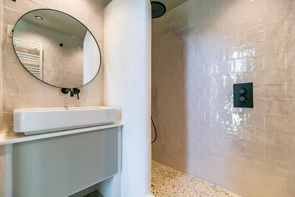 Outside, the villa provides a series of inviting relaxation areas, including a private swimming pool, sunbathing terraces, tropical palms and secluded lounge corners. Whether you're hosting dinner under the stars, relaxing with a book or spending time with loved ones, the outdoor environment is designed to be enjoyed year-round.