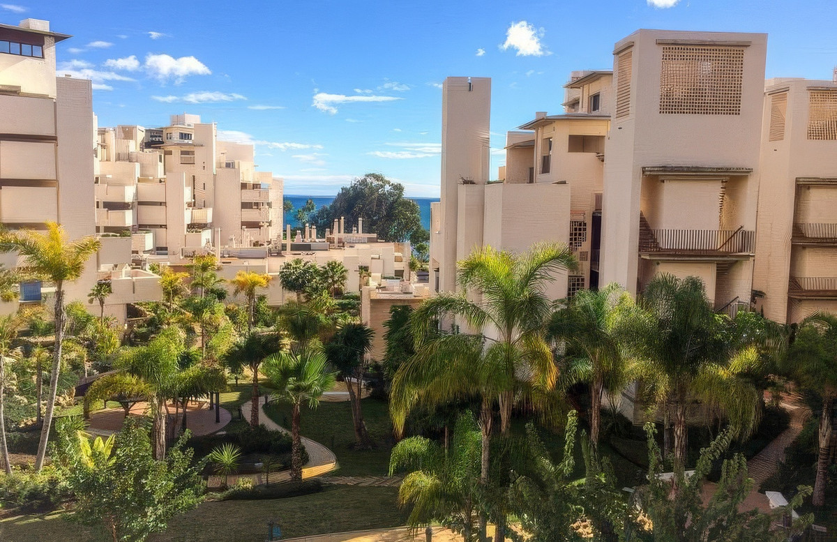 The property offers 140 m² built, distributed into 2 spacious bedrooms and 2 bathrooms, along with a bright living-dining room with direct access to a private terrace enjoying pleasant views over the gardens, pool, and partial sea views. The kitchen is fully fitted and the apartment is sold furnished, ready to move in.
