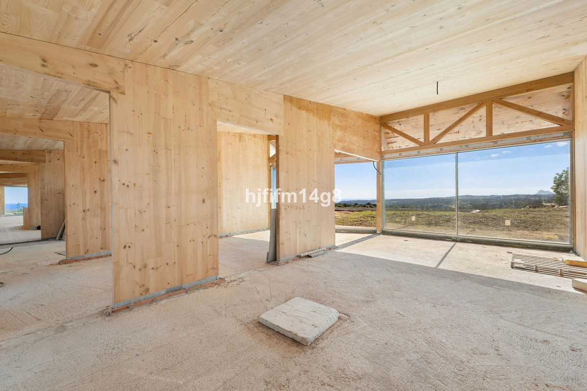 The project includes generous outdoor areas that embrace the natural surroundings, with multiple terraces and an infinity-style pool that provide sweeping views over the sea, countryside, golf course and mountains. Large openings and thoughtfully planned outdoor living spaces make the most of the villa’s elevated position and peaceful environment.