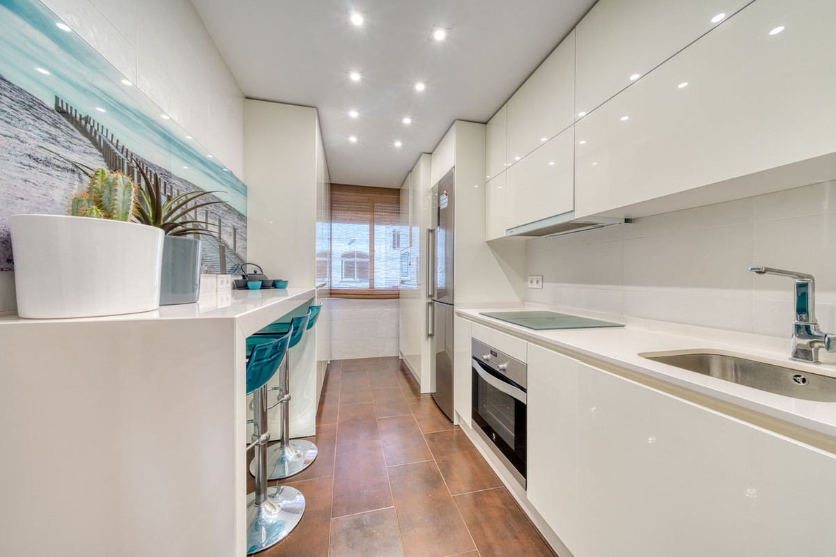 The interior is bright and elegant with a brand new contemporary kitchen featuring sleek cabinetry, quality appliances, and clean lines that complement the relaxed Mediterranean atmosphere of the home. The original terrace has been fully enclosed to create an additional light filled living area that can be enjoyed throughout the year. This versatile space is ideal as a sunroom, reading lounge, dining extension, or peaceful home office with gentle natural light from morning to evening.