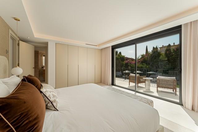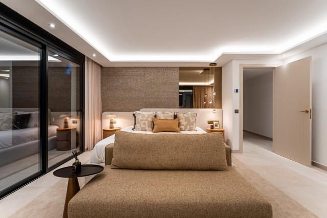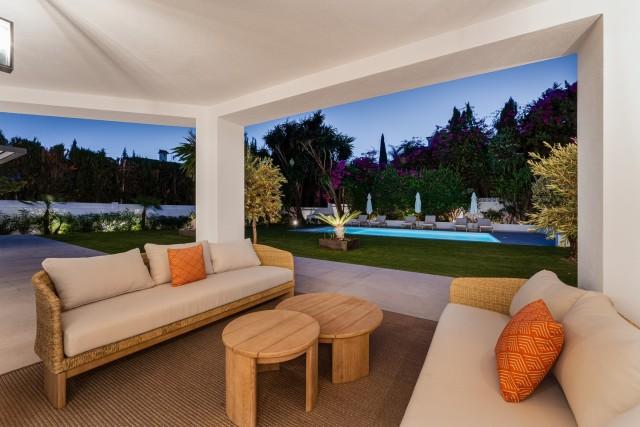 This exclusive contemporary residence, located in Rocío de Nagüeles next to Marbella's Golden Mile, combines modern elegance, privacy, and a design focused on comfort. Spread over two floors, it offers four spacious en-suite bedrooms and a guest toilet, making it an ideal choice as both a family home and a luxury second residence. Its southwest orientation guarantees panoramic views of the Mediterranean Sea, while the expansive terraces, landscaped gardens, and private heated pool allow you to enjoy the outdoor lifestyle year-round.