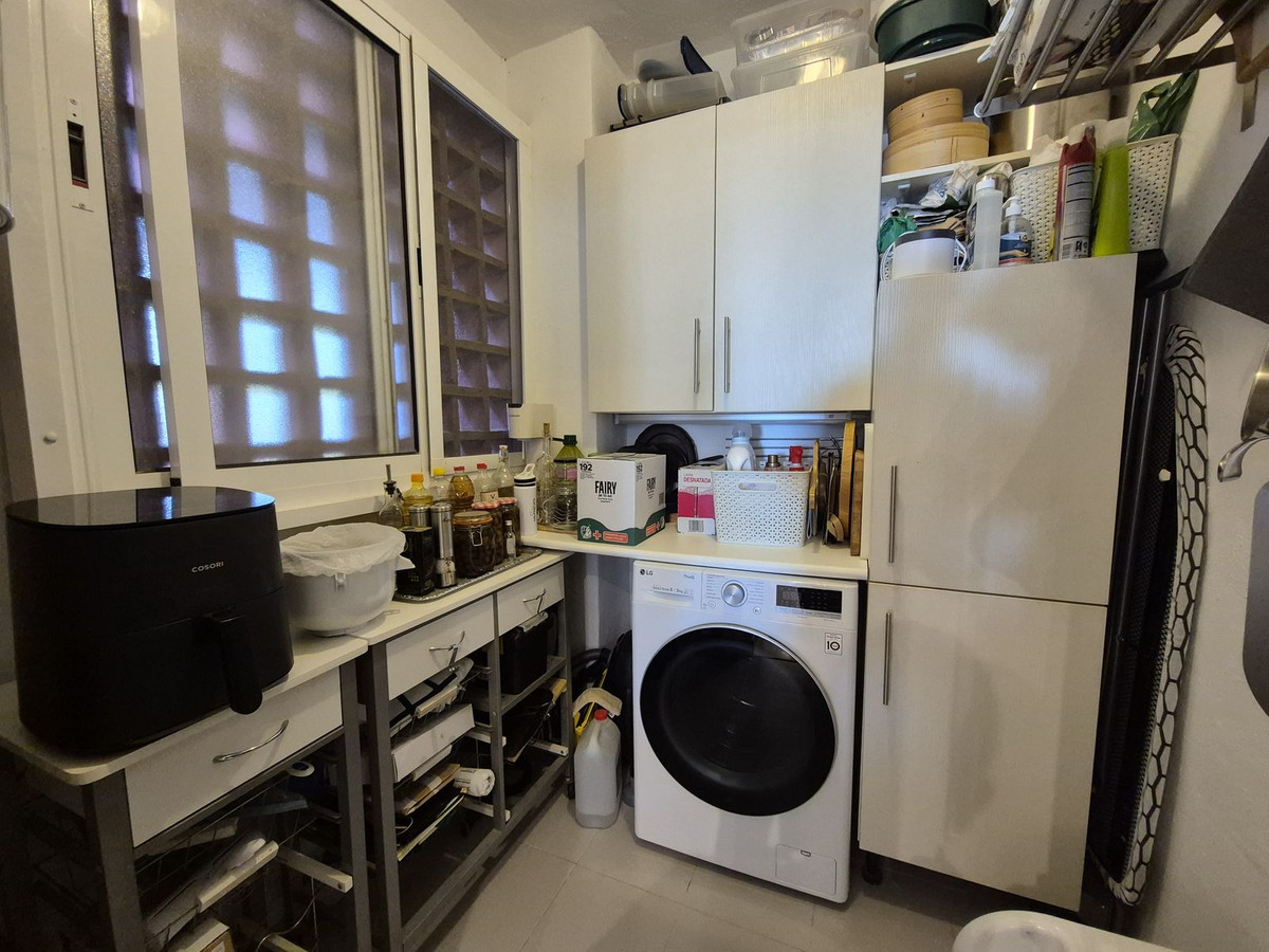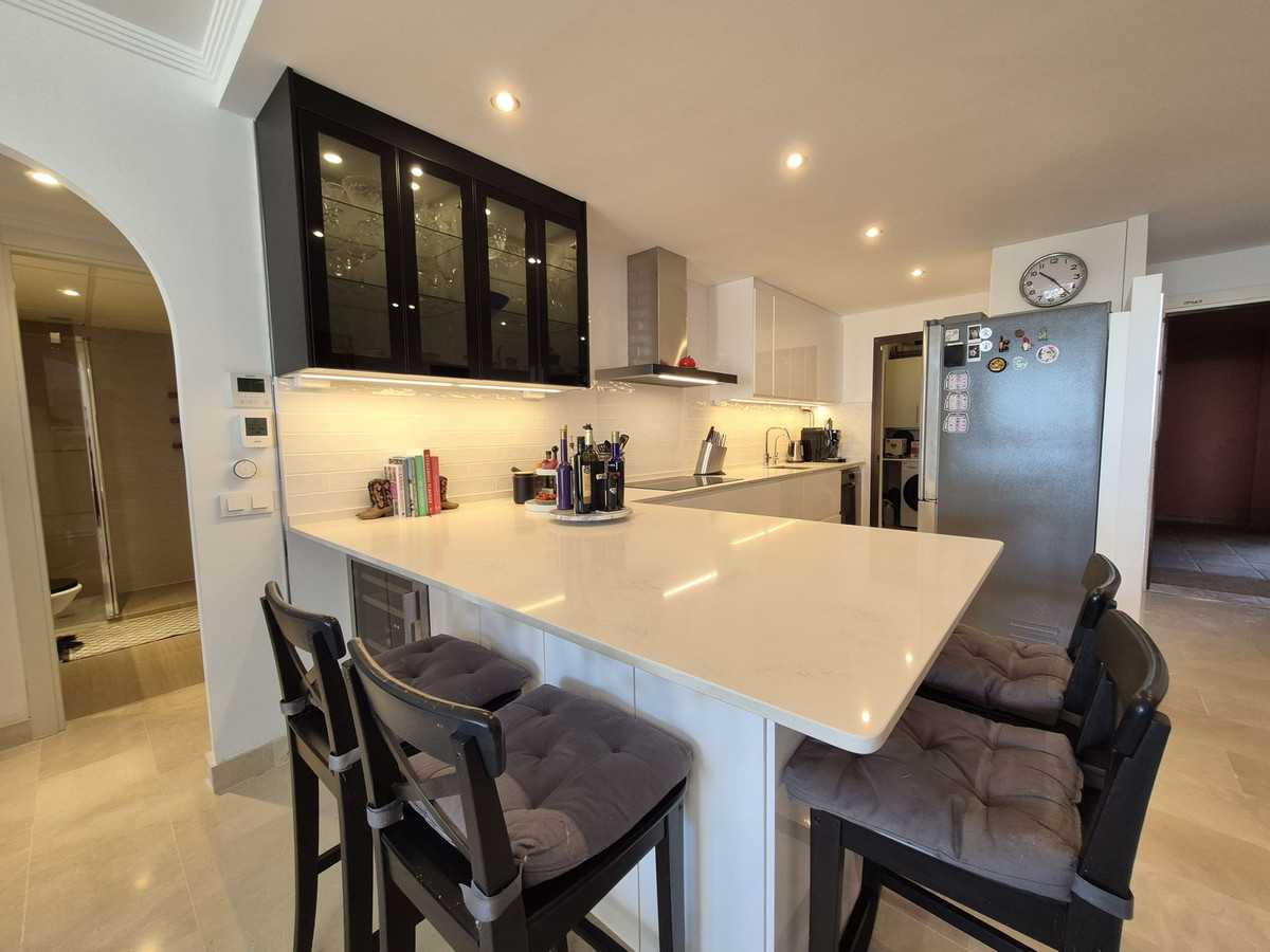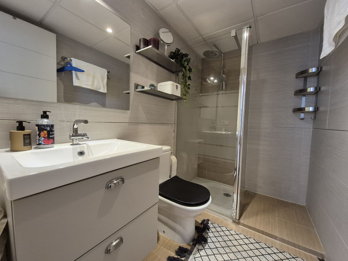 The kitchen is a good size and has been nicely renewed. The property also comes with a new AC unit, a new shower in the guest bathroom, and ceiling fans in the living room, main bedroom, and on the terrace.