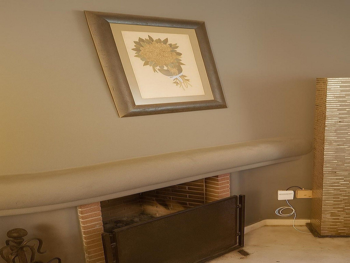 The property features a fully fitted kitchen, an open fireplace in the living area, and a large private terrace complete with a built-in BBQ, perfect for outdoor dining and entertaining.