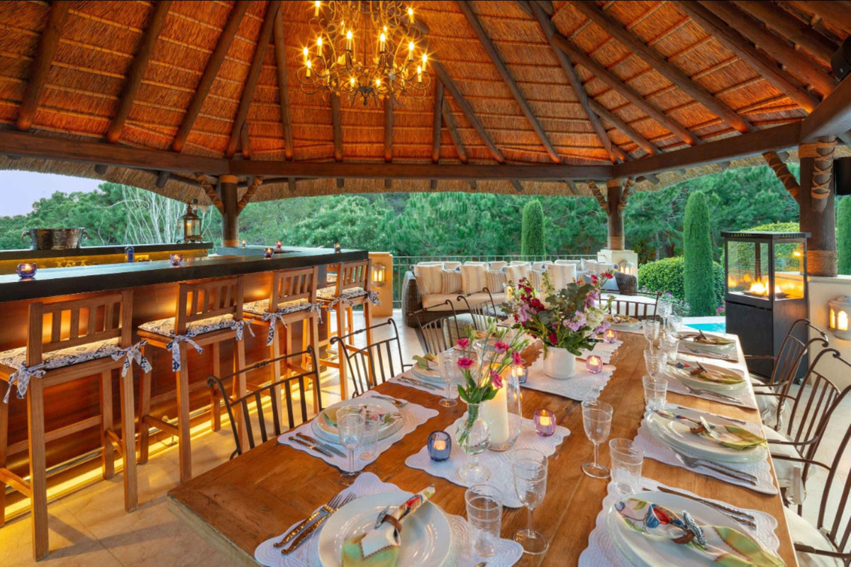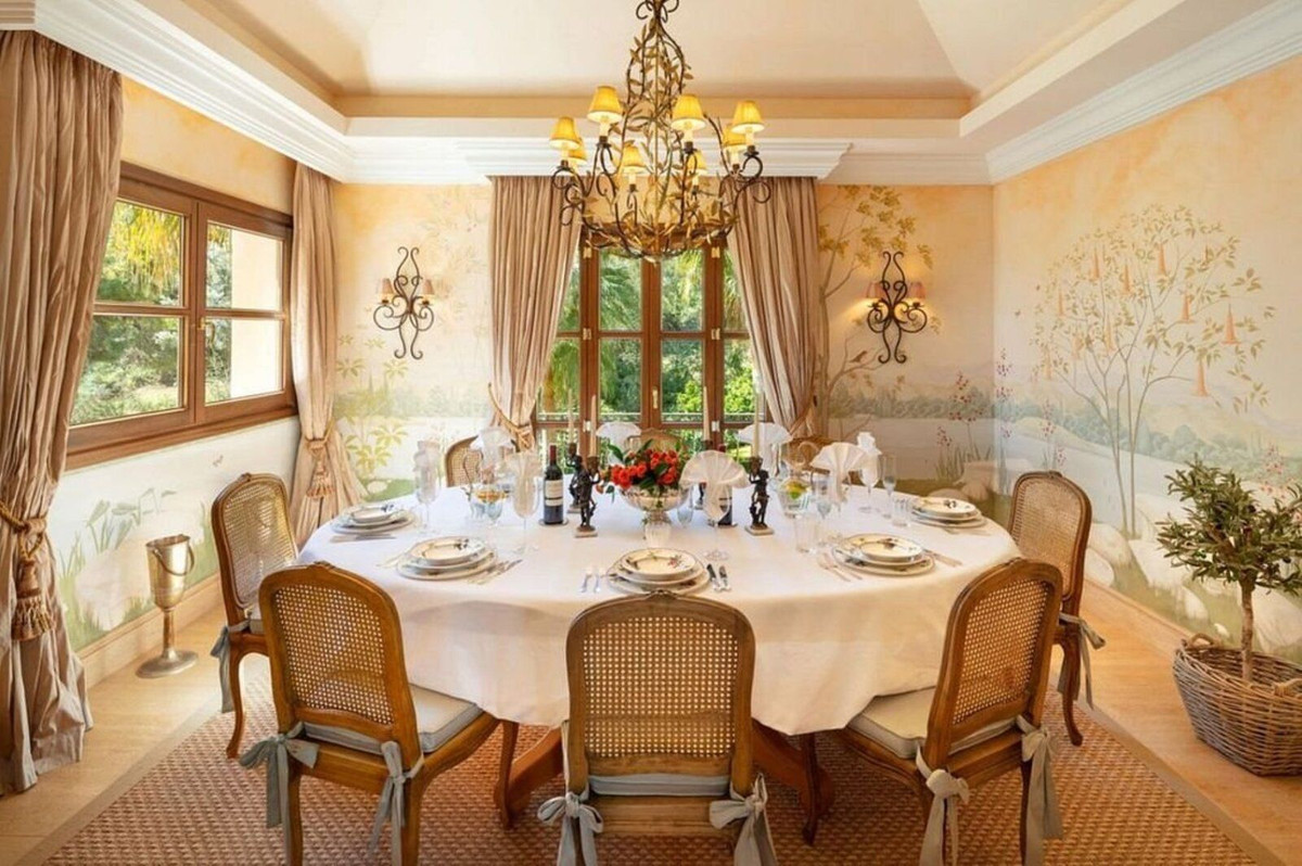 Outside, meticulously manicured gardens surround a large private swimming pool, ideal for enjoying the Costa del Sol climate. The property also includes a garage, storage room and all the amenities necessary for high-end living.